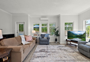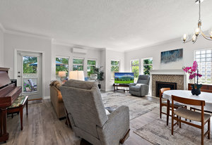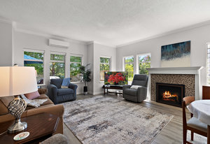 Offered for the first time since new, this bright and inviting 2-bedroom, 2-bathroom, 1-level, corner townhome is arguably the best unit in sought-after Lakehill Estates. Meticulously maintained and thoughtfully updated, it features overheight ceilings, a luxurious new kitchen with premium appliances, and a spacious living room anchored by a high-efficiency gas fireplace. A wall of south-facing windows floods the home with natural light and opens to a private backyard with patio and garden, backing onto a serene greenbelt—an ideal space for both relaxation and entertaining. Year-round comfort is ensured with a modern heat pump. An attached garage and ample storage add to the convenience, in ...