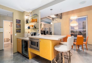 A rarely available Walker penthouse, the premier historic building in downtown Long Beach. The Walker building boasts a rich history, built in 1925 as the home of Walkers Department store, converted in 2002 into a mixed-use marvel. An architecturally significant property offering luxury living amidst restaurants and nightlife and a short walk to the water. The open, modern space approaching 2000 sq. ft. of living space, 20 ft. ceilings, polished concrete floors and views of the city and port. A sampling of upgrades include: DCS and KitchenAide stainless appliances, custom lighting, custom travertine tile in the kitchen and bathrooms, a two-zone home theater and motorized shades. The property also boasts a 300+ sq. ft. private terrace with an outdoor fireplace. Steps to the downtown Long Beach entertainment corridor, Queen Mary, Convention Center, Metro Blue line and everything this thriving urban area is famous for.