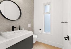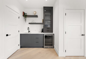 The lower level presents a versatile space, ideal for a recreation room, office, workout area, or media room. Complete with a wet bar and bar fridge, it's perfect for entertaining. This floor also hosts a full four-piece bathroom with heated floors, creating the ideal guest suite.