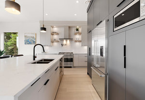 For the culinary enthusiast, the kitchen boasts high-end stainless steel appliances, an abundance of counter space, and a convenient butler's kitchen with a wet bar and fridge/freezer—perfect for preparation and additional storage. Additional features include a gas oven and stovetop, a cozy gas fireplace, and heated floors in the primary bedroom's ensuite, the main bathroom, and the office/rec room bathroom.