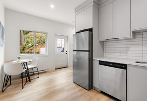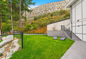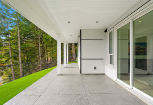 Outside, revel in the two separate backyards, each with its own unique charm. One backs onto a private forested oasis, offering a serene escape into nature. The other boasts low maintenance synthetic grass, providing a pristine and inviting space for outdoor activities and gatherings.