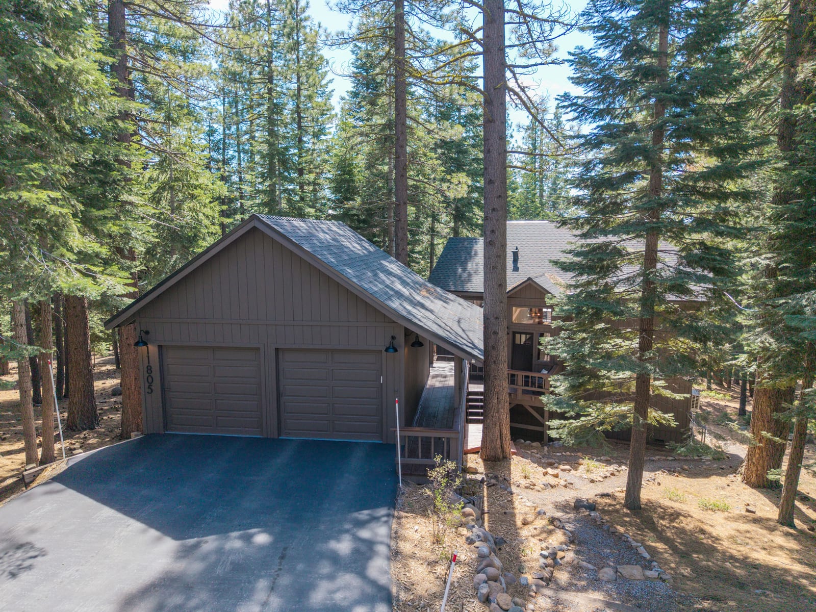 Beautiful, extensively remodeled Tahoe Donner cabin nestled in a peaceful forest setting. This inviting home features a well-designed open-concept floor plan with a spacious kitchen, dining, and living area filled with abundant natural light. Ideally located on a quiet, lower-elevation street, the property offers a newly improved level driveway and sits on over one-third acre, backing to a peaceful wooded and private yard.