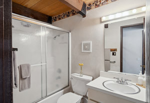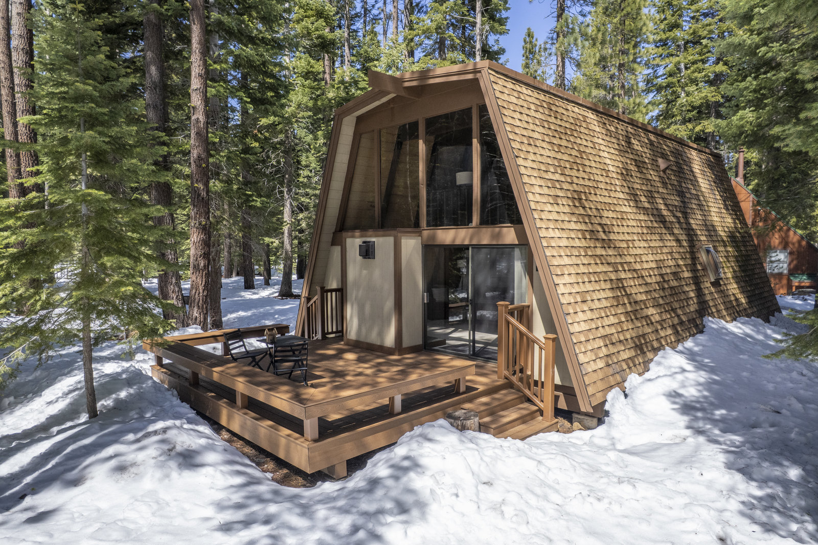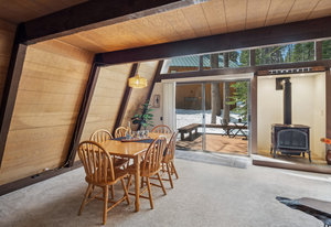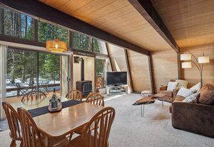 Charming Gambrel-style cabin nestled in Truckee’s desirable Tahoe Donner neighborhood. This mountain retreat strikes the perfect balance of rustic charm, comfort, and convenience. Set on a level 0.34-acre parcel at lower elevation and backing to greenbelt, the property offers a peaceful setting and easy year-round access. Inside, you’ll find 2 bedrooms, 2 bathrooms, and a cozy loft—all centered around an open living area with soaring ceilings and a gas burning stove that invites you to relax and unwind. The warm wood interior and exposed beam ceilings create a welcoming, alpine-inspired atmosphere. An airlock entry adds a practical touch for snowy days, and the utility room with washer and dryer hookups provides extra convenience for mountain living. Step outside to a spacious deck with built-in bench seating—perfect for soaking in the peaceful, forested surroundings. Homeowners here enjoy an incredible lineup of amenities—Trout Creek fitness center and pools, tennis and pickleball courts, a championship golf course, downhill and cross-country ski areas, The Lodge Restaurant, Pizza on the Hill, plus exclusive access to a private beach and boat launch at Donner Lake. Just minutes from world-class ski resorts, this cabin is your gateway to the ultimate year-round mountain lifestyle.