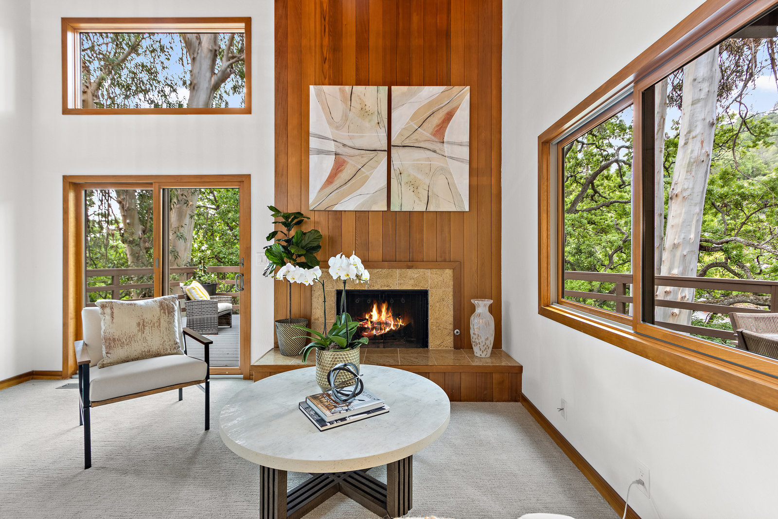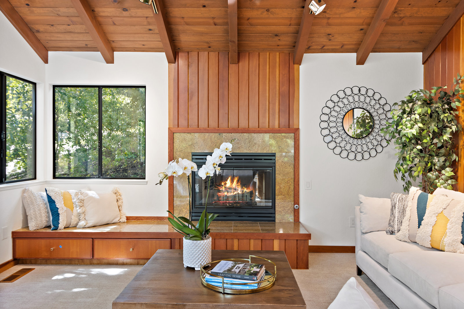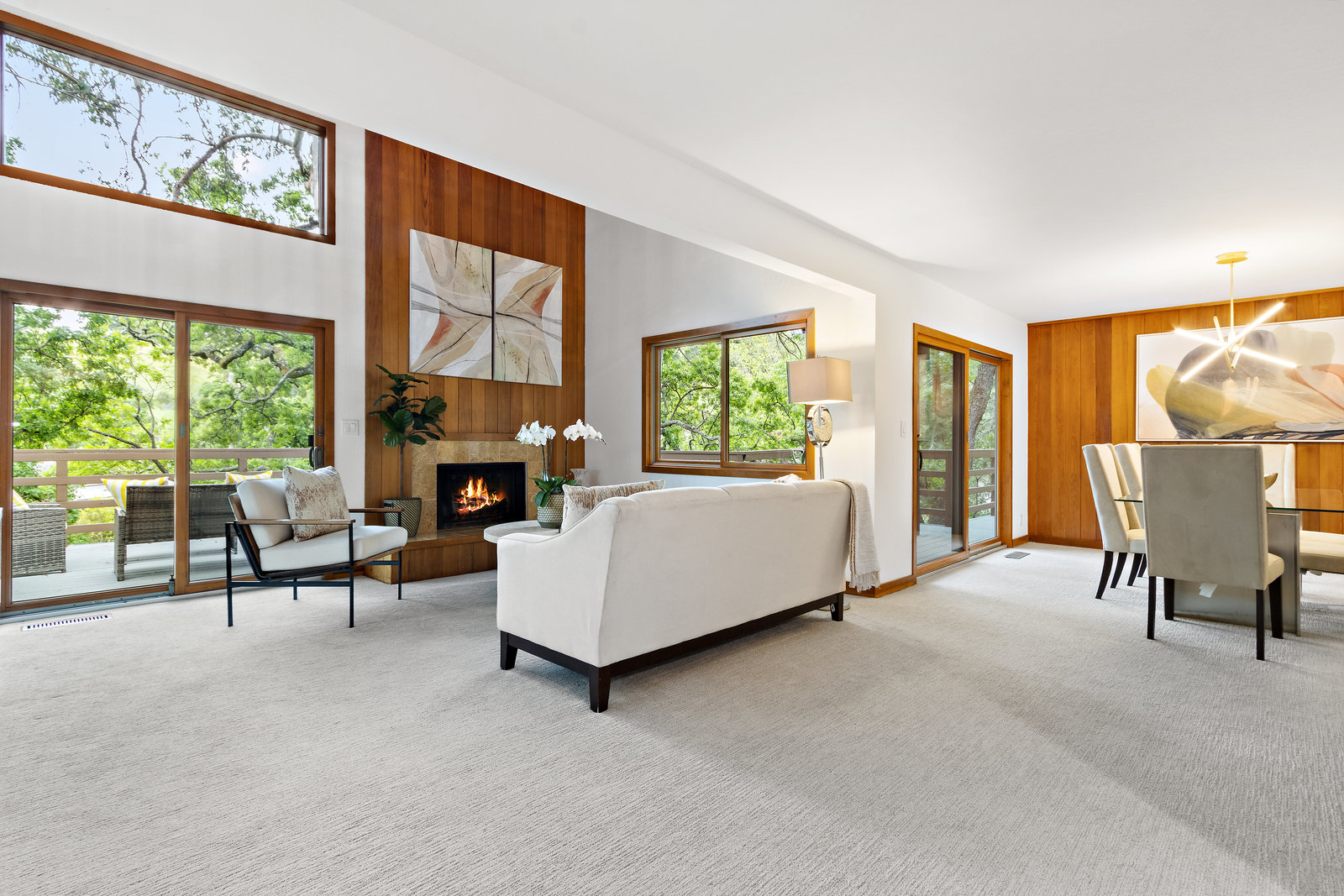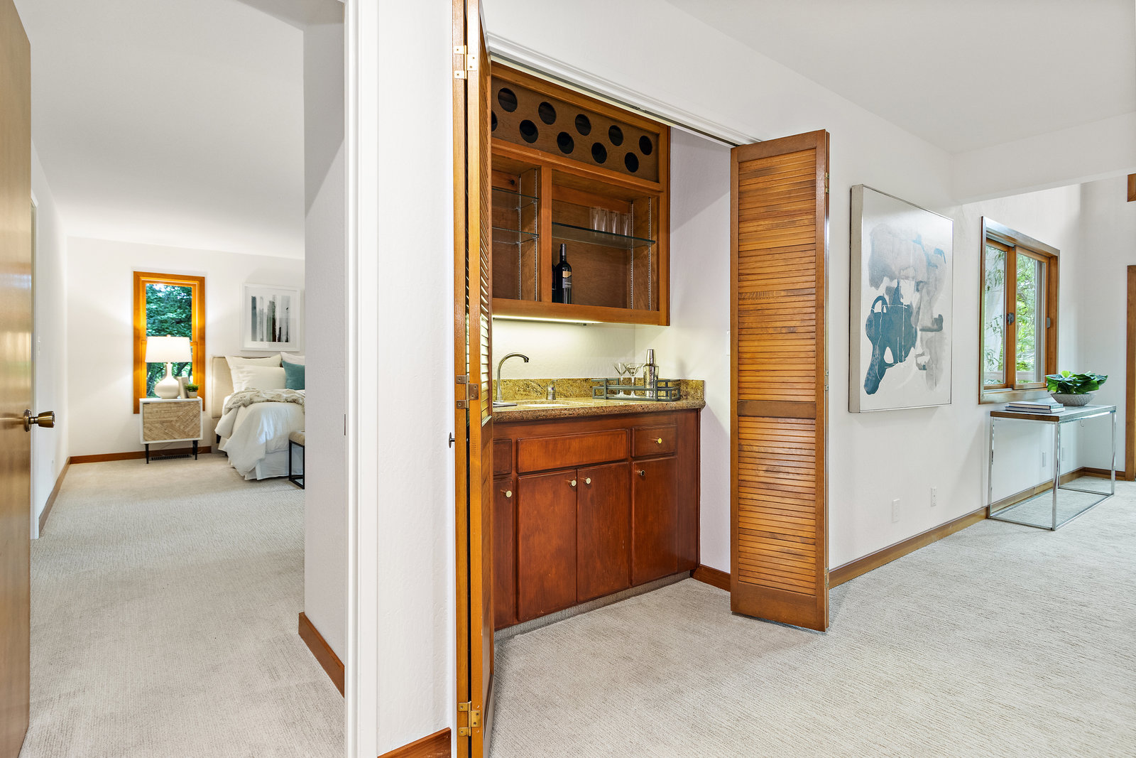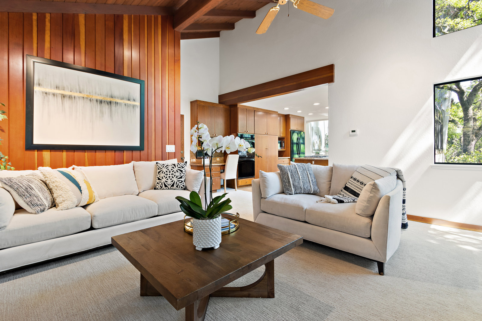 Striking wood accents throughout