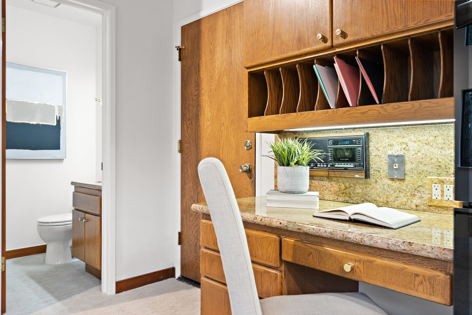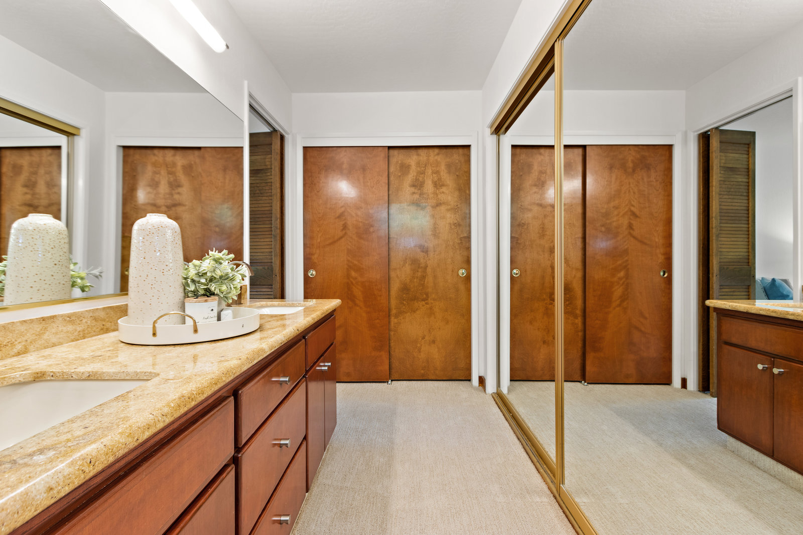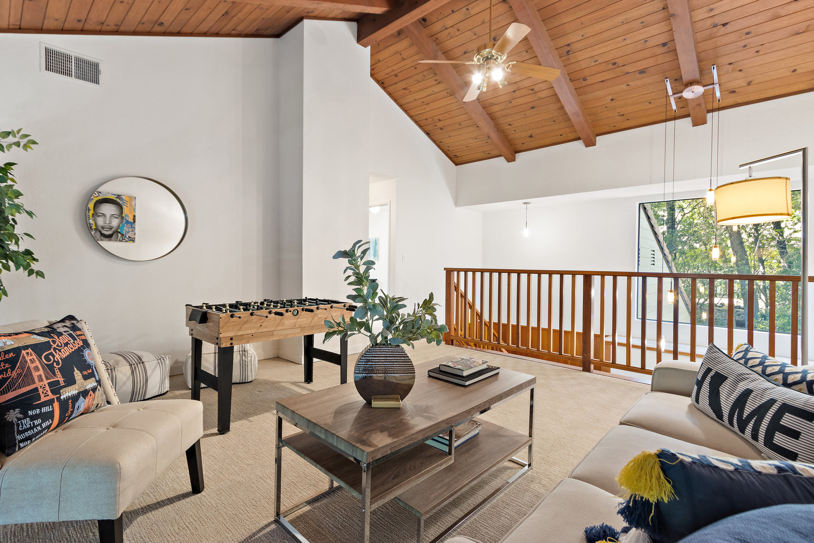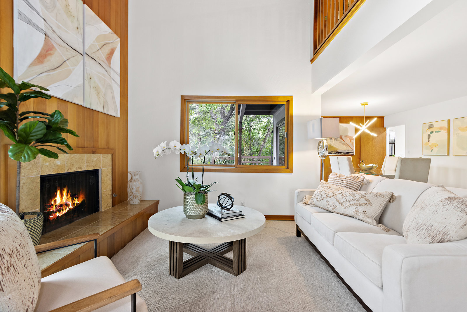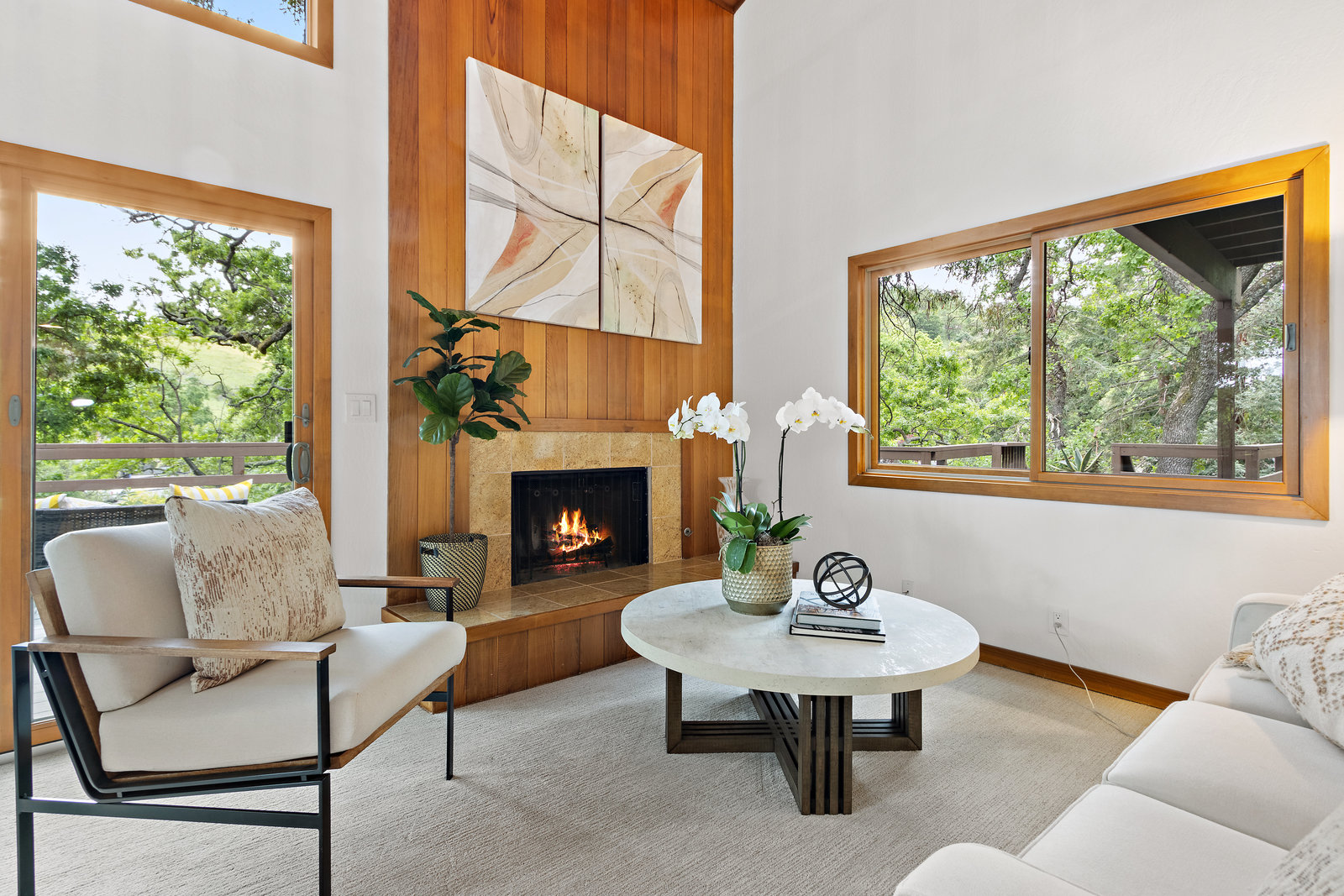 Striking wood accents throughout