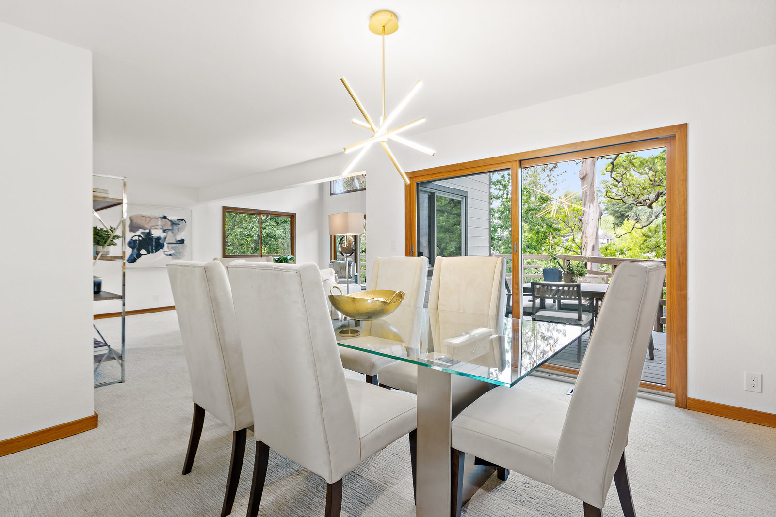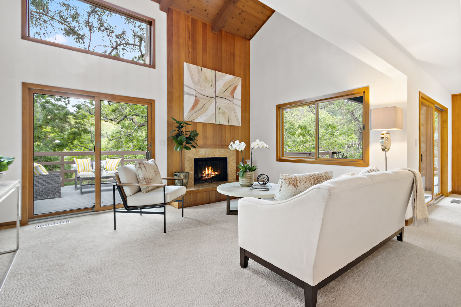 Spacious contemporary home located on a sunny lot with a breathtaking canopy of trees in the heart of sought after Reliez Valley. This well designed home, with fabulous floor plan, dramatic vaulted ceilings, walls of glass, warm wood accents and stunning architectural details throughout. Offering impressive spaces for entertaining with formal living with wet bar and dining room opening to the decks for alfresco dining and relaxation. Casual gatherings and daily living can be enjoyed in the large eat-in kitchen, with striking atrium windows extending the entire kitchen to bring the outdoors in, modern cabinetry and granite counters. The large family room delights with soaring ceilings, fireplace with raised hearth, plus adjacent half bath. The primary retreat on the main level features a large bedroom and luxurious updated bath. Upstairs is the loft area/ bonus space, plus two additional bedrooms opening to private decks, a hall bath, and fourth bedroom that is ensuite with double sinks, skylight and abundant storage. Beautiful wooded views create a sense of privacy and tranquility from the numerous decks and additional outdoor spaces for play. This home is ideally located in beautiful Lafayette with its award winning schools, vibrant downtown, great BART and commute access.
