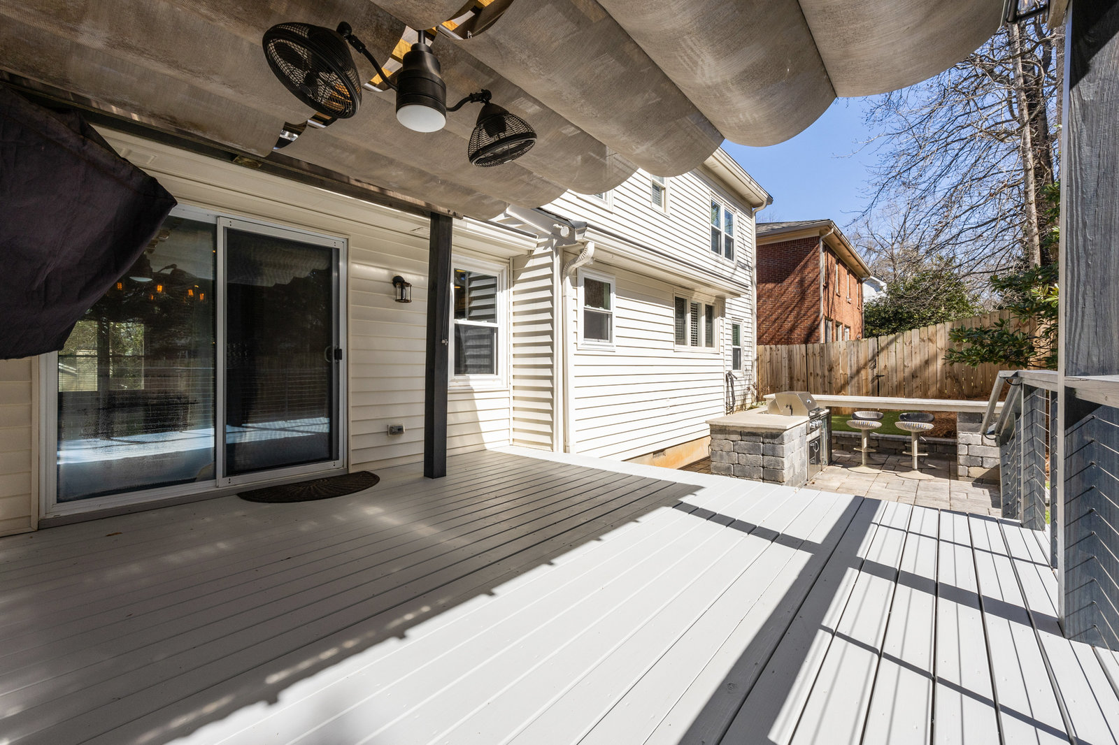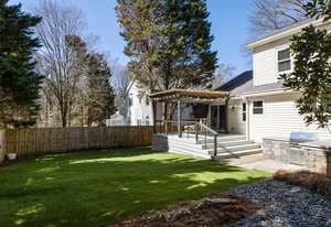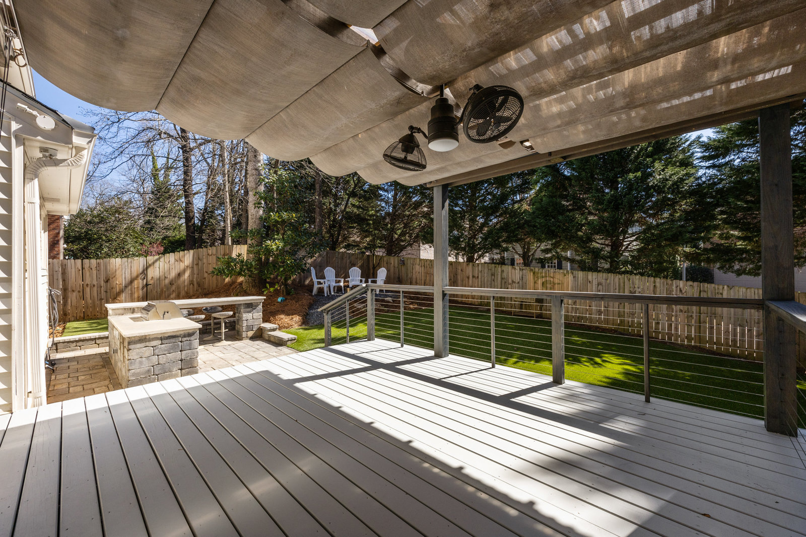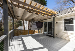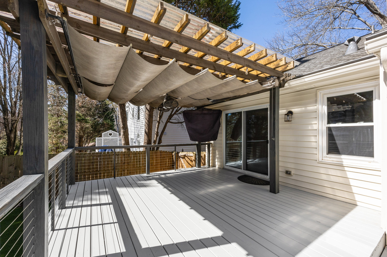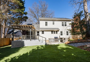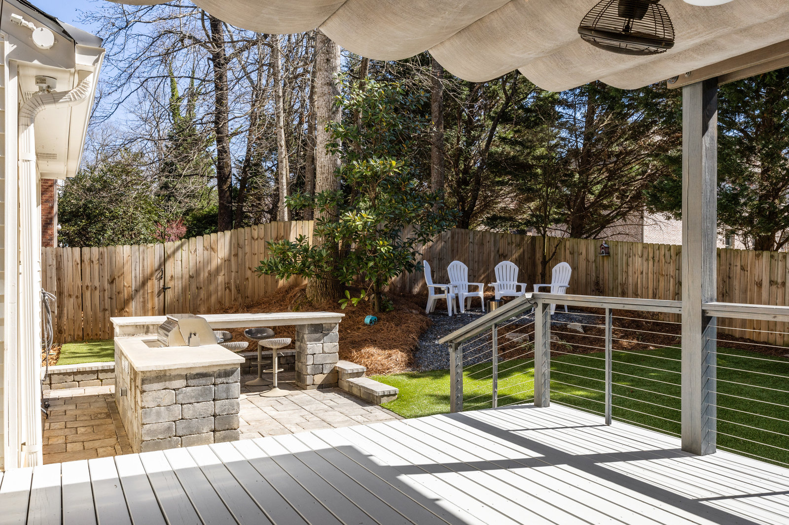 Step outside to your own private oasis! The large ground-level deck with a covered pergola creates a perfect space for relaxation and entertaining. Enjoy the built-in outdoor bar with a grill and low-maintenance turf grounds, offering year-round enjoyment.
