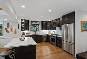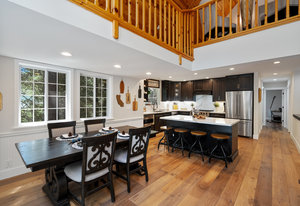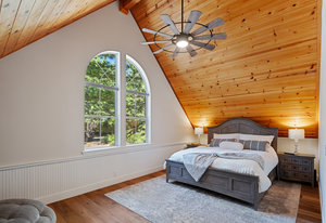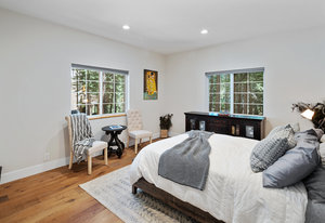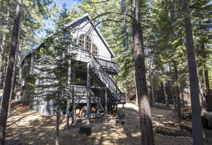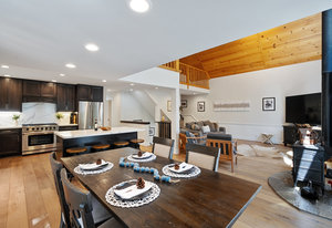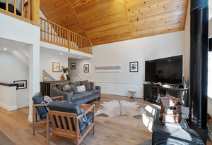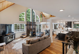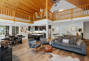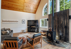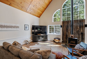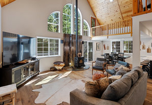 Nestled in a picturesque forested setting, this stunning mountain modern home exemplifies both elegance and comfort. Meticulously updated and maintained by its owners, the residence boasts remarkable design elements throughout. Upon entering, you are greeted by a sun-drenched great room featuring beautiful hardwood flooring, soaring vaulted ceilings, and an array of custom touches that enhance the overall aesthetic. The modern kitchen is a culinary delight, equipped to satisfy the needs of any chef. With five spacious bedrooms, including two ensuite options, and four full baths, there is ample room for family and guests...