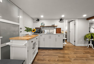 The main level also hosts a generous Primary, a 2nd bedroom, a 4-pc bathroom and a bonus family room with walkout to the south facing deck.
