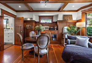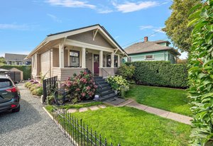 Step into timeless elegance with this Circa 1913 character bungalow in a highly sought-after location. A charming front veranda welcomes you inside where you'll find original stained glass, fir floors, wood paneling with plate rails & coffered ceilings that celebrate the history.
