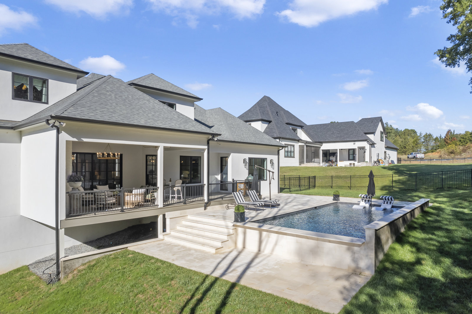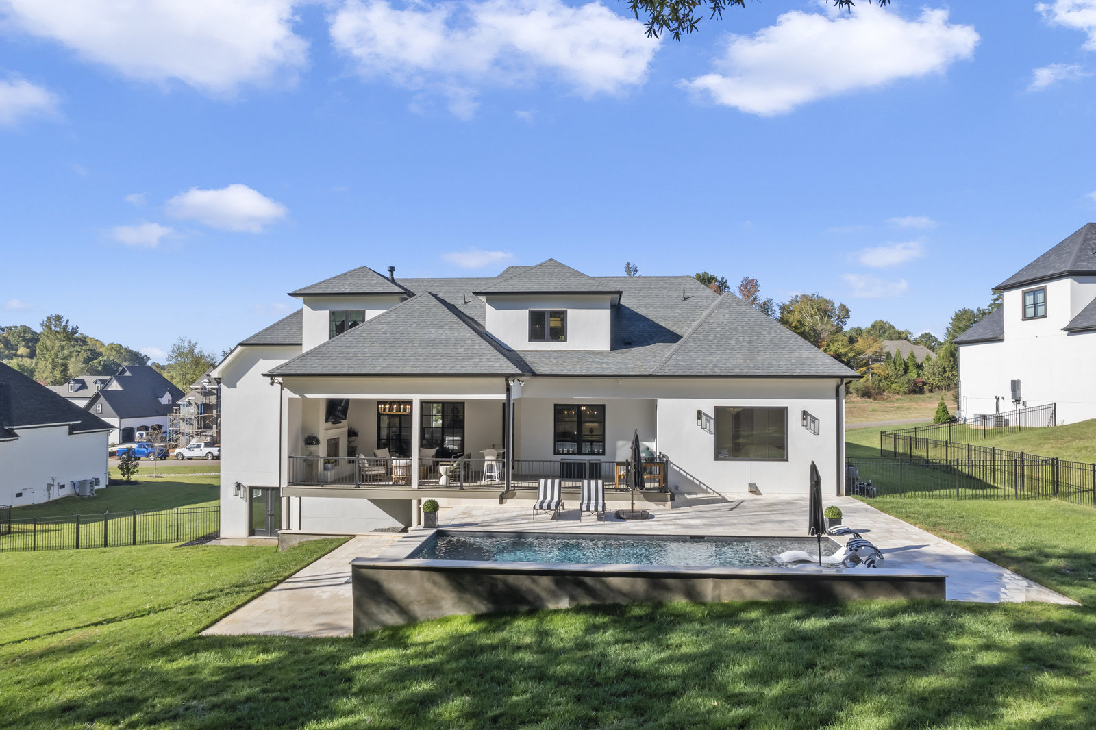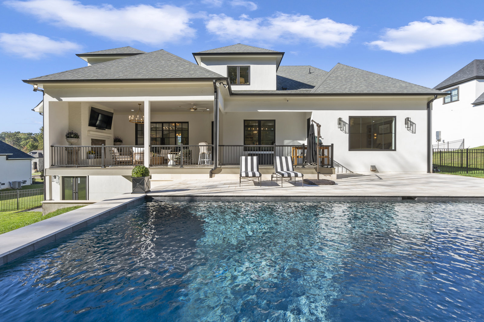 Gorgeous European Inspired Hard Stucco & Hand-crafted Cast Stone Executive Custom Home nestled in enclave of 12 custom homes. This like-new, luxurious, upgraded Leeds Manor estate boasts grand Chef’s Kitchen w/large quartz island, custom cabinets, JennAir appliances, Vinotemp dual wine fridge, pantry & breakfast room. Main level features gorgeous Great Room w/coffered ceilings, fireplace & custom iron doors, Formal Dining, Office, Theater Room & Guest Suite. Primary Suite on main w/spa-like bath w/extra-large shower & free-standing tub. Upper level has huge bonus room, 1/2 bath & 2 ensuite bedrooms + unfinished space. Basement has gym, full bath & is plumbed for a guest suite if desired + additional finished & unfinished space. The home has 2697SF of unfinished space to create more customized living areas or storage if that’s what you need - the possibilities are endless! Large covered deck w/outdoor fireplace overlooks expansive pool. Designed for entertaining and everyday living!