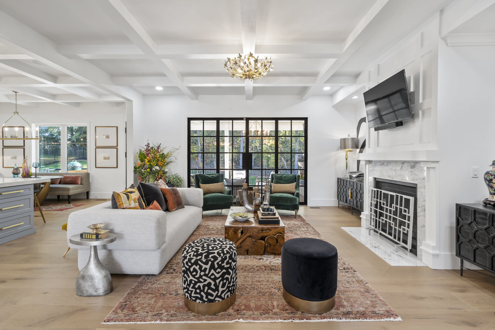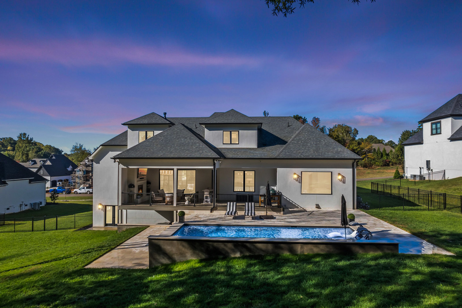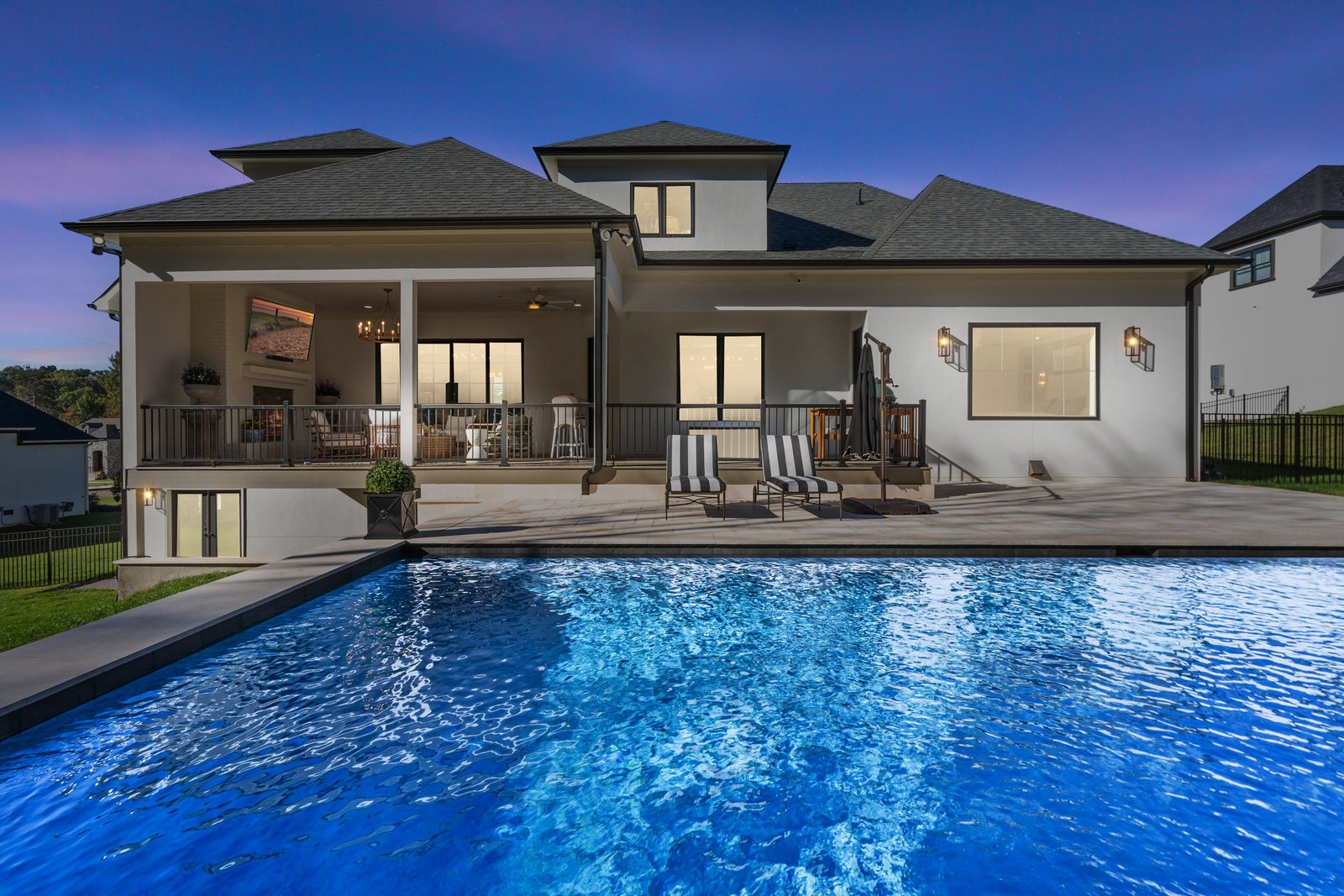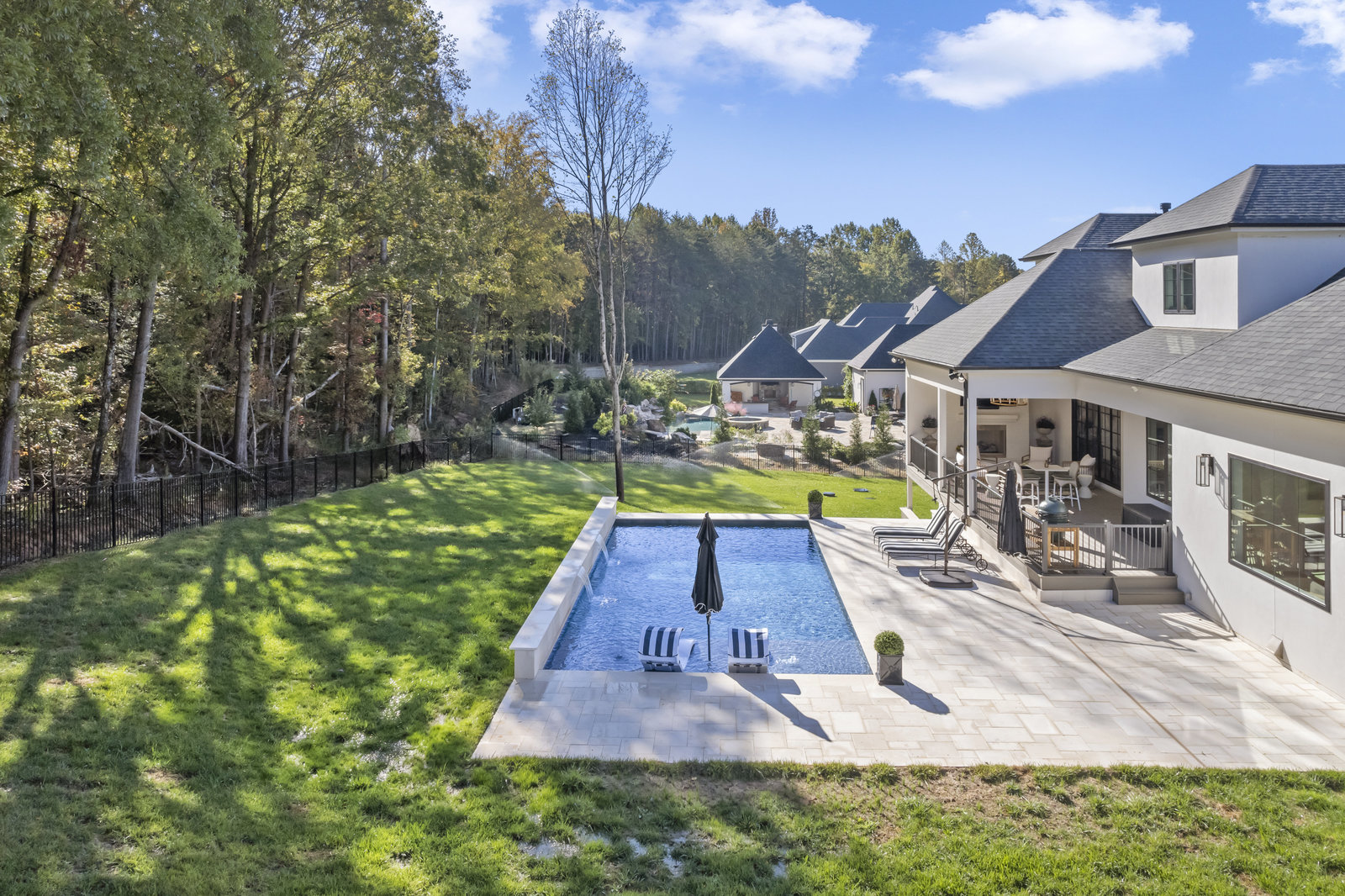 Gorgeous European Inspired Hard Stucco & Hand-crafted Cast Stone Executive Custom Home nestled in enclave of 12 custom homes. This like-new, luxurious, upgraded Leeds Manor estate boasts grand Chef’s Kitchen w/large quartz island, custom cabinets, JennAir appliances, Vinotemp dual wine fridge, pantry & breakfast room. Main level features gorgeous Great Room w/coffered ceilings, fireplace & custom iron doors, Formal Dining, Office, Theater Room & Guest Suite. Primary Suite on main w/spa-like bath w/extra-large shower & free-standing tub. Upper level has huge bonus room, 1/2 bath & 2 ensuite bedrooms + unfinished space. Basement has gym, full bath & is plumbed for a guest suite if desired + additional finished & unfinished space. The home has 2697SF of unfinished space to create more customized living areas or storage if that’s what you need - the possibilities are endless! Large covered deck w/outdoor fireplace overlooks expansive pool. Designed for entertaining and everyday living!