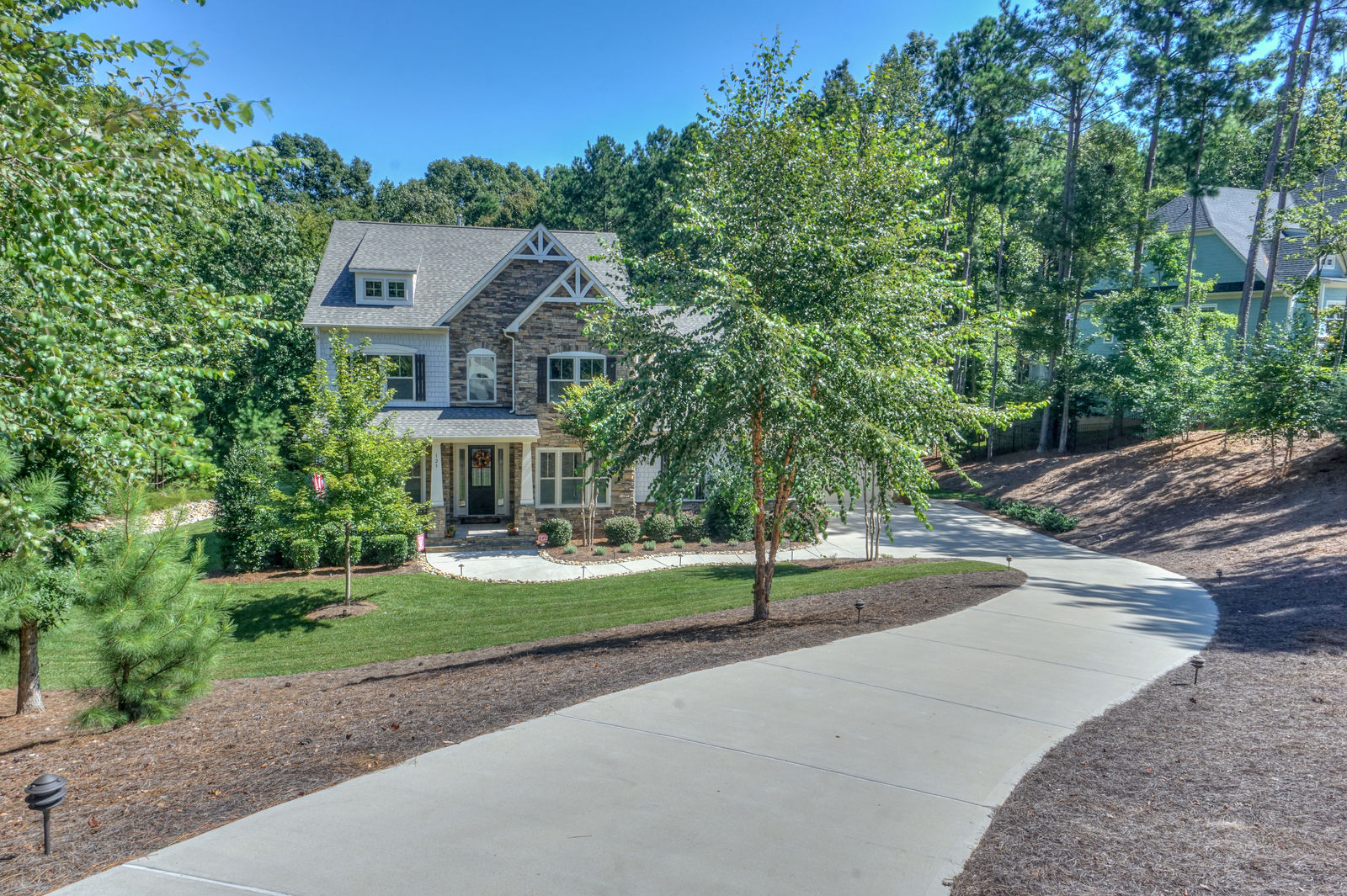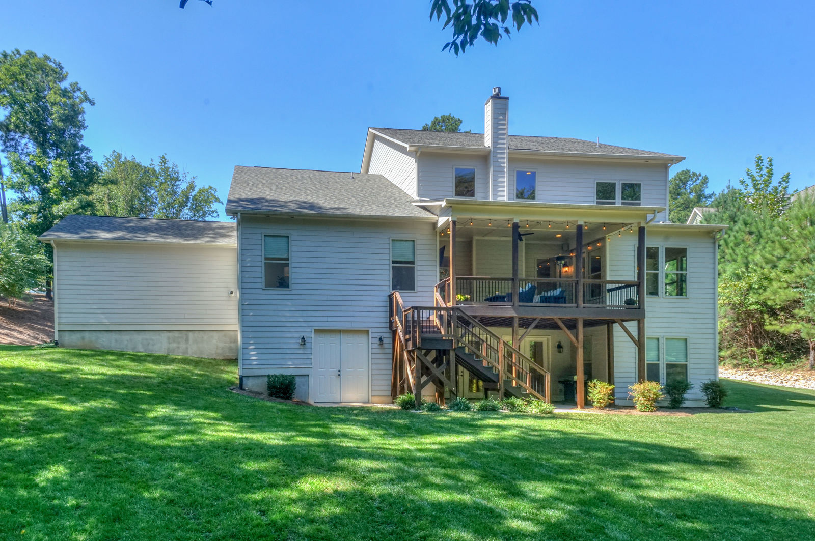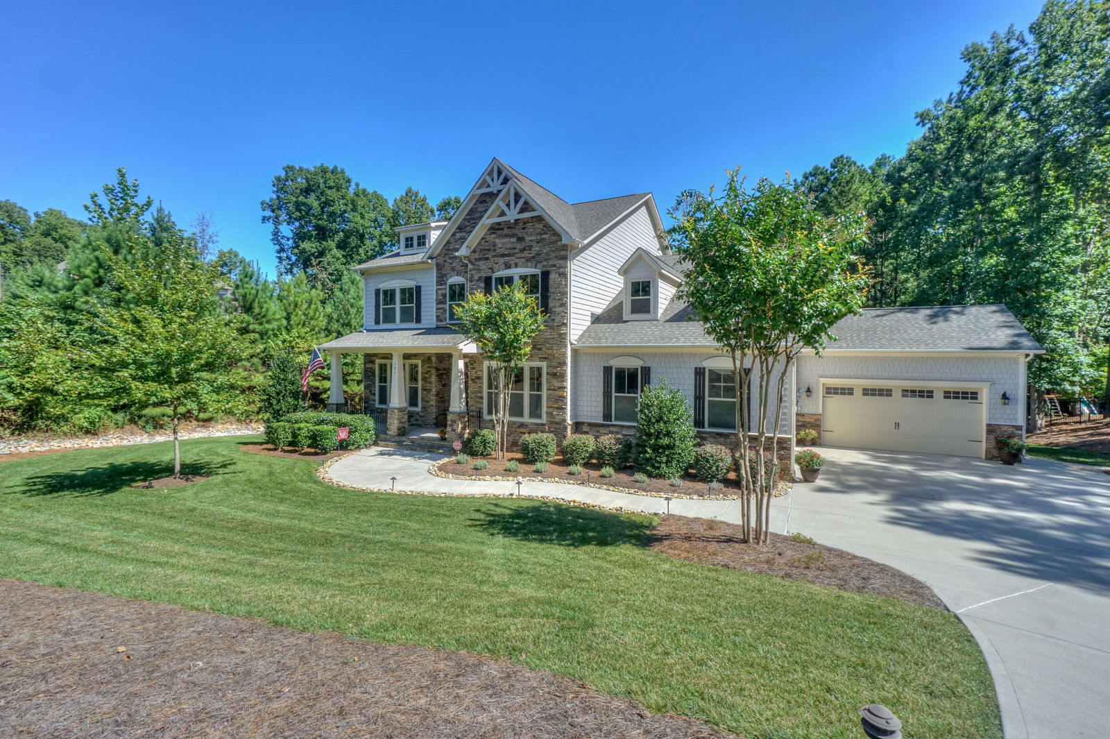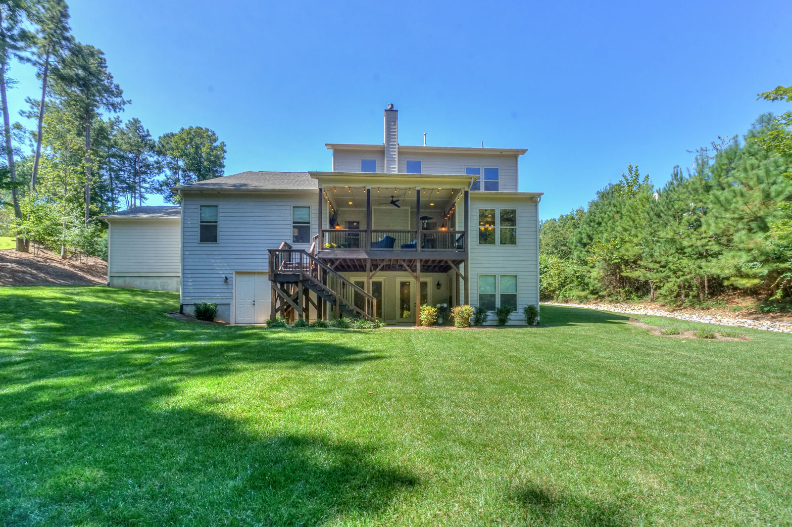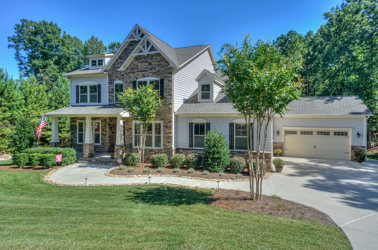 Stunning custom home in the desirable Farms community! 2 story with walk-out basement home offers an abundance of storage. Quiet location on a cul-de-sac street and a pristine lawn greet you home. Rare-find 4 car garage (two double bays) has room for cars, boats & toys! Relaxing front porch overlooks beautifully landscaped front yard. Inside, gorgeous finishes & attention to detail are found throughout. The main level with hardwood floors includes stunning open floorplan kitchen featuring granite tops, a gas cooktop & sparkling stainless steel appliances. A center island where the crowd always gathers is perfect for entertaining or casual meals, with ceiling speakers for background music. A walk-in pantry with solid shelving, soft close drawers & butler pantry nearby make the beautiful space all the more functional. Spacious breakfast area with backyard views has access to covered Trex deck, for morning coffee. 2-story great room has gas fireplace set into a floor to ceiling stone surround. If you're working from home, or e-learning, an office has privacy French doors & views across front porch & lawn. A Formal dining room is dressed in beautiful moldings. Large laundry room has cabinets for concealed storage, plus landing space to corral items needed as you enter/leave the garage. An oversized Master suite has 2 walk-in closets and double vanities, plus a walk-in shower and separate soaking tub. Enjoy private access from the Master to the covered deck as well. Added convenience of a guest bedroom & full bath are also on main. The home's upper level has more wood flooring in large loft area leading to 3 bedrooms (2 with walk-in closets), plus 2 full baths. The bonus room with surround sound easily doubles as a media space, or could serve as playroom or rec/billiards room. Lower level walkout basement has another great room, full bath & flex room if prefer to use for extra sleeping quarters or Hobby/Workout space, you decide. Enjoy the fresh air from the large covered Trex deck off main, featuring cooling fan overhead, or on the covered patio area off the basement great room. Large firepit area beyond is nestled in wooded setting overlooking the lake. Low-voltage landscape lighting (app-controlled) surrounds the home for after dusk. Full yard irrigation is also app controlled. Backyard has room for a pool! Water access for launching kayaks is the icing on the cake to this awesome home. Hager Creek public boat launch area is located just 5 minutes (under 2 miles) away. The Farms unbeatable amenities add a Community pool & clubhouse, lighted sports courts (tennis & basketball), soccer field, volleyball, walking trails & more!