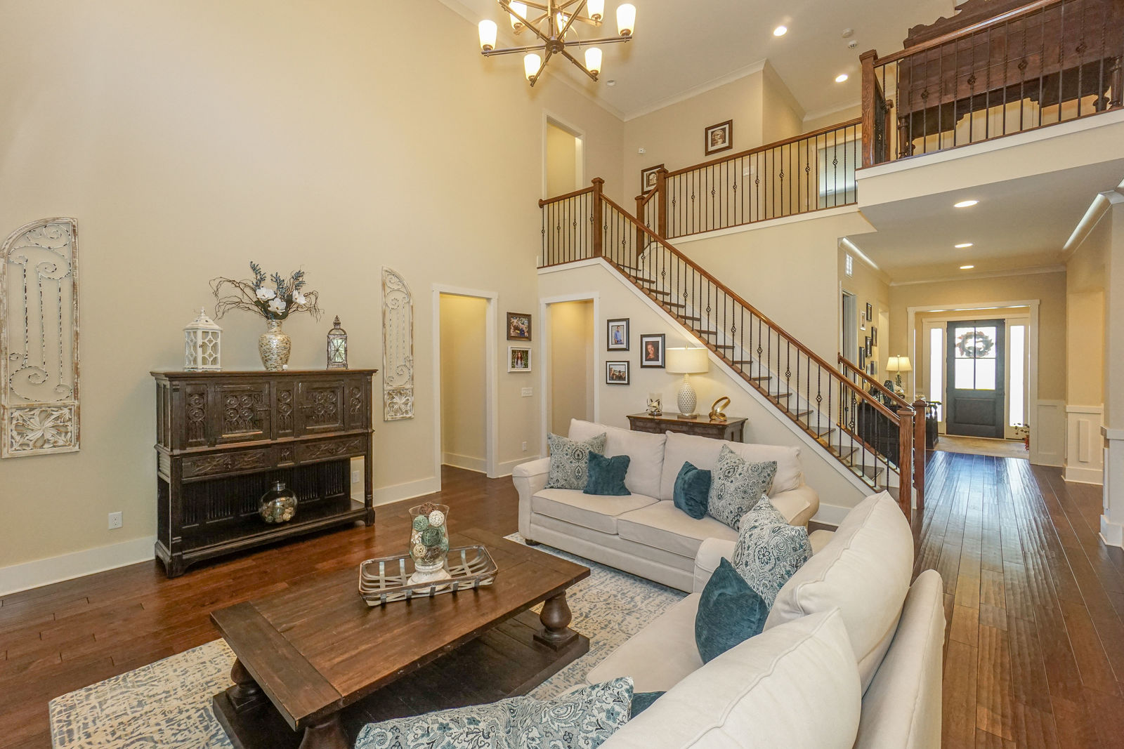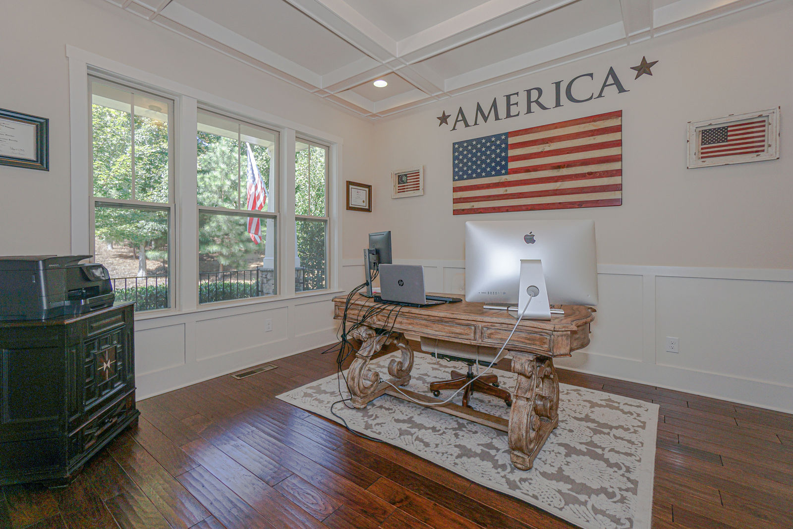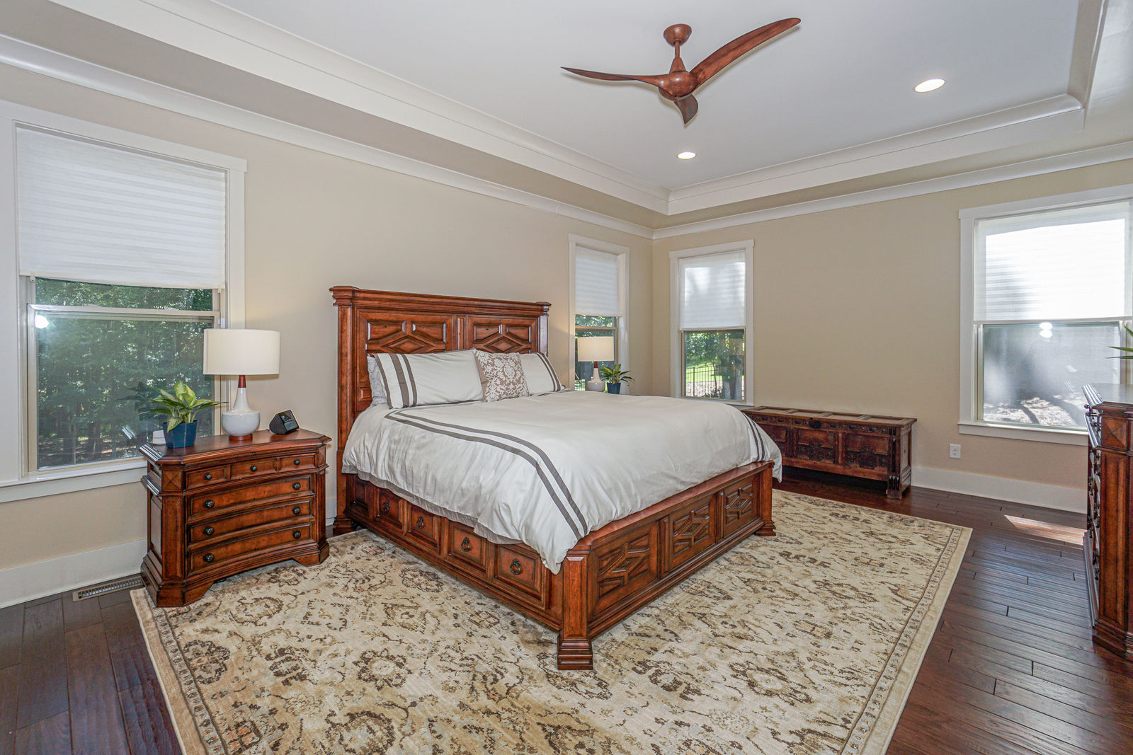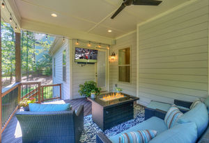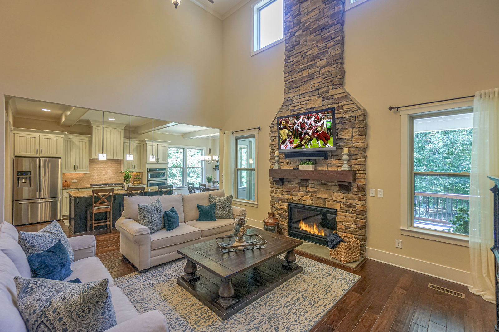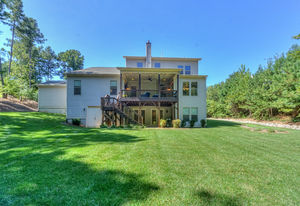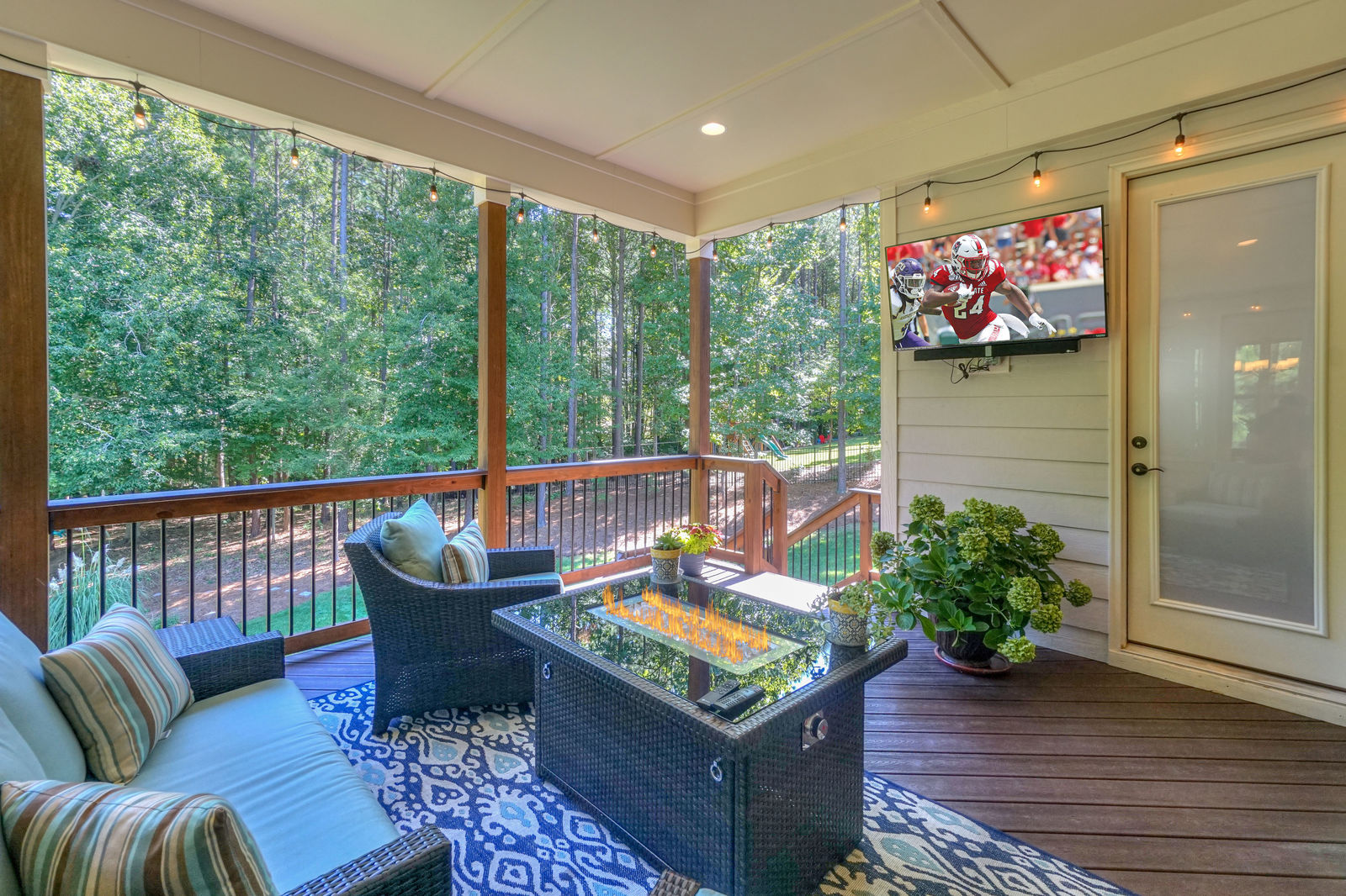 Stunning custom home in the desirable Farms community! 2 story with walk-out basement home offers an abundance of storage. Quiet location on a cul-de-sac street and a pristine lawn greet you home. Rare-find 4 car garage (two double bays) has room for cars, boats & toys! Relaxing front porch overlooks beautifully landscaped front yard. Inside, gorgeous finishes & attention to detail are found throughout. The main level with hardwood floors includes stunning open floorplan kitchen featuring granite tops, a gas cooktop & sparkling stainless steel appliances. A center island where the crowd always gathers is perfect for entertaining or casual meals, with ceiling speakers for background music. A walk-in pantry with solid shelving, soft close drawers & butler pantry nearby make the beautiful space all the more functional. Spacious breakfast area with backyard views has access to covered Trex deck, for morning coffee. 2-story great room has gas fireplace set into a floor to ceiling stone surround. If you're working from home, or e-learning, an office has privacy French doors & views across front porch & lawn. A Formal dining room is dressed in beautiful moldings. Large laundry room has cabinets for concealed storage, plus landing space to corral items needed as you enter/leave the garage. An oversized Master suite has 2 walk-in closets and double vanities, plus a walk-in shower and separate soaking tub. Enjoy private access from the Master to the covered deck as well. Added convenience of a guest bedroom & full bath are also on main. The home's upper level has more wood flooring in large loft area leading to 3 bedrooms (2 with walk-in closets), plus 2 full baths. The bonus room with surround sound easily doubles as a media space, or could serve as playroom or rec/billiards room. Lower level walkout basement has another great room, full bath & flex room if prefer to use for extra sleeping quarters or Hobby/Workout space, you decide. Enjoy the fresh air from the large covered Trex deck off main, featuring cooling fan overhead, or on the covered patio area off the basement great room. Large firepit area beyond is nestled in wooded setting overlooking the lake. Low-voltage landscape lighting (app-controlled) surrounds the home for after dusk. Full yard irrigation is also app controlled. Backyard has room for a pool! Water access for launching kayaks is the icing on the cake to this awesome home. Hager Creek public boat launch area is located just 5 minutes (under 2 miles) away. The Farms unbeatable amenities add a Community pool & clubhouse, lighted sports courts (tennis & basketball), soccer field, volleyball, walking trails & more!