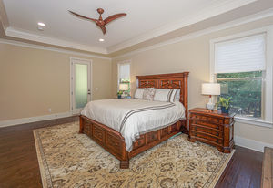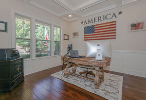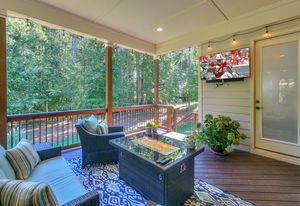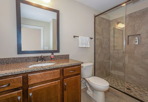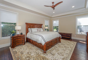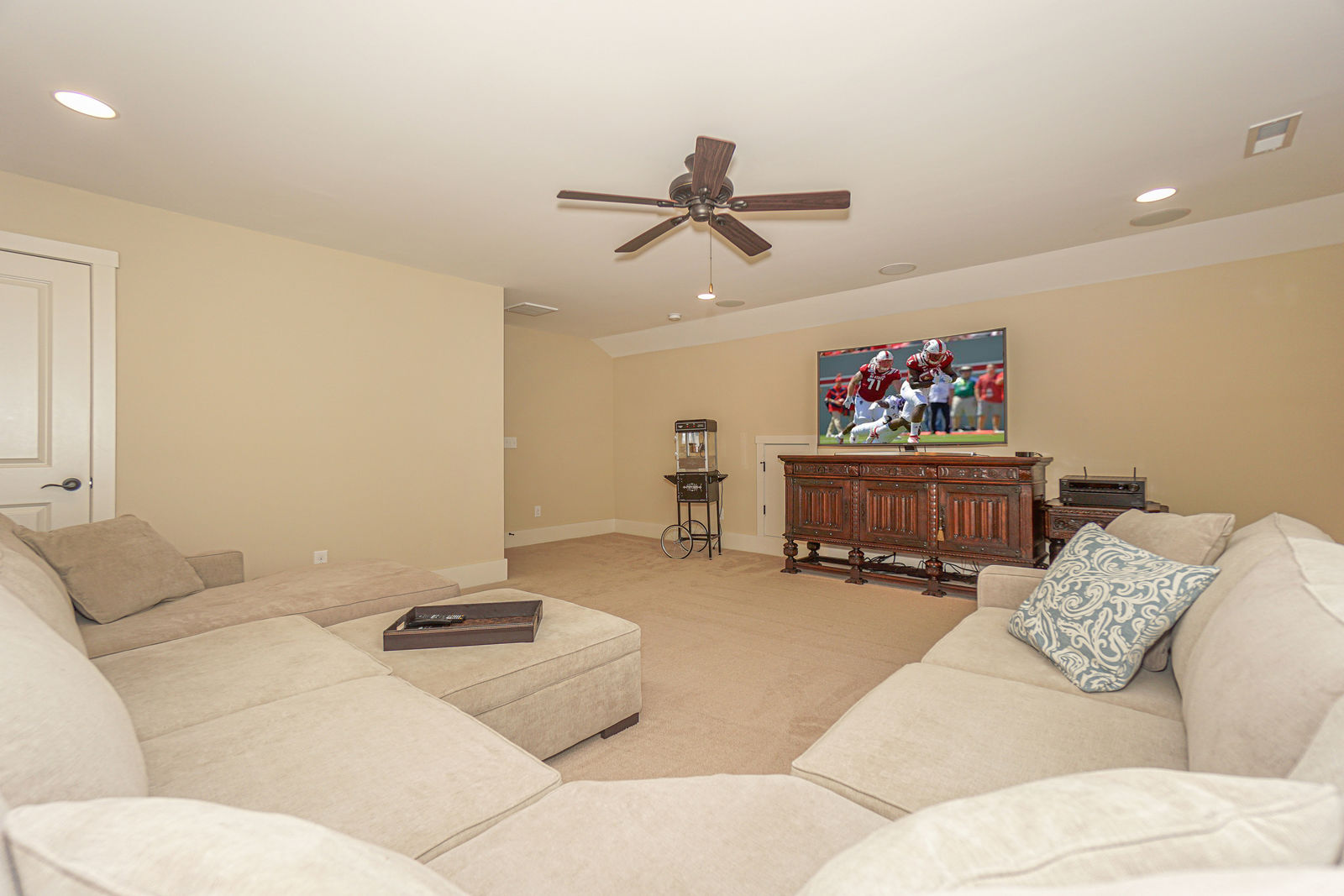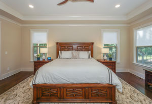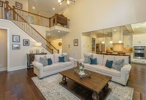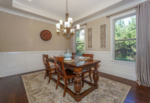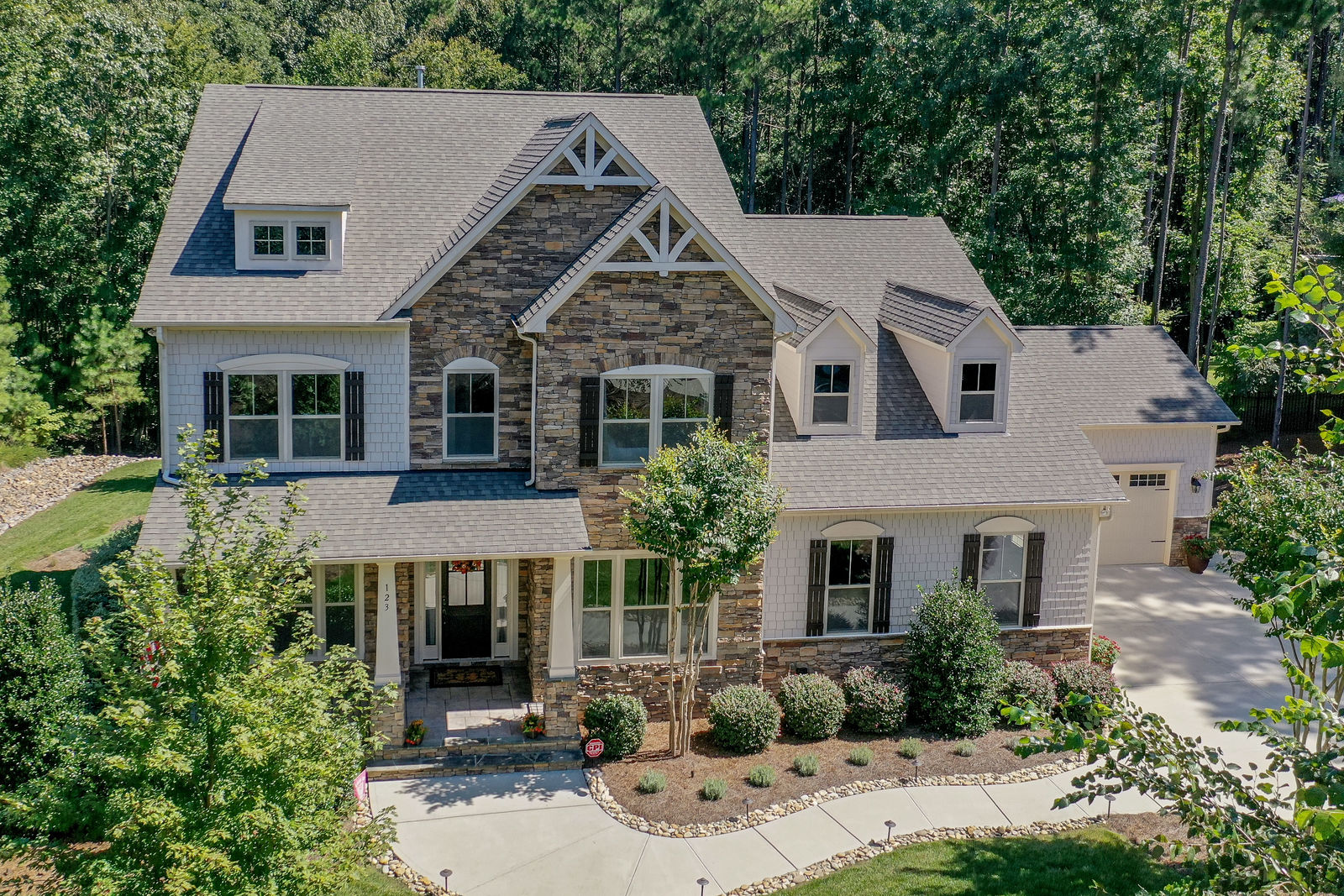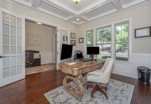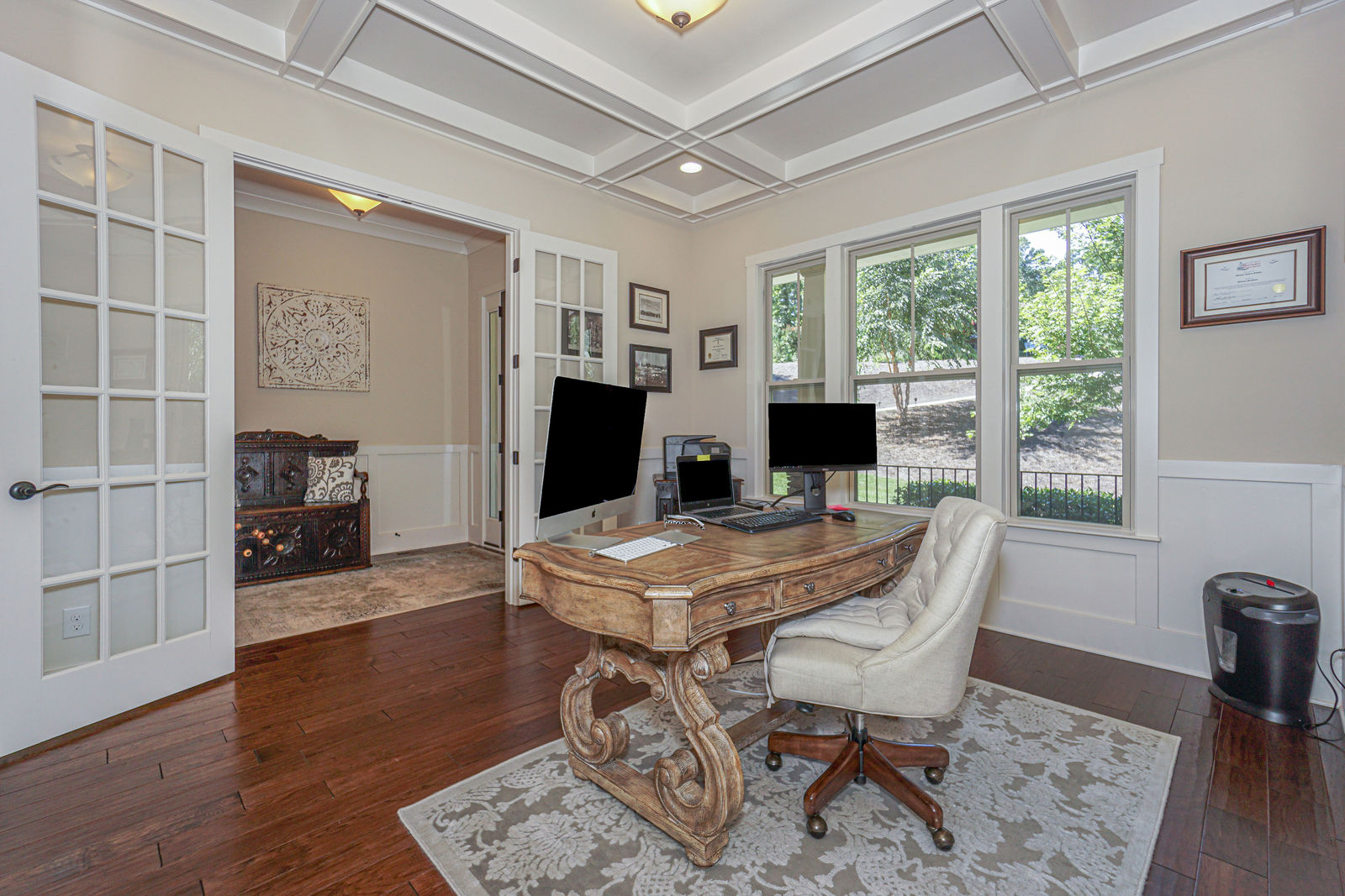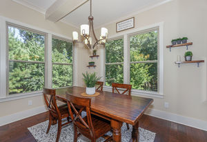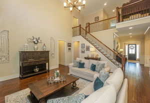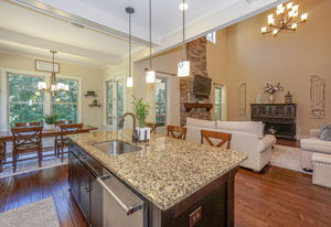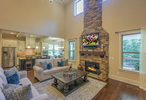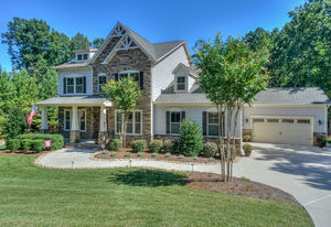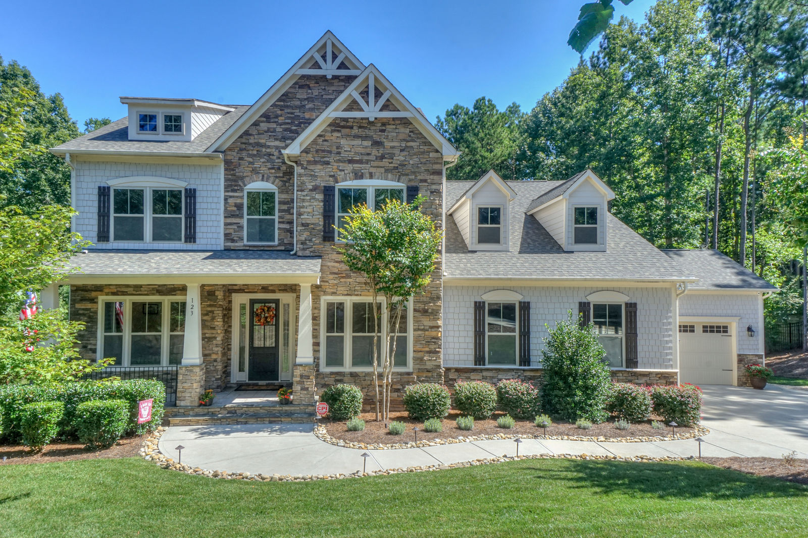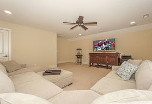Stunning custom home in the desirable Farms community! 2 story with walk-out basement home offers an abundance of storage. Quiet location on a cul-de-sac street and a pristine lawn greet you home. Rare-find 4 car garage (two double bays) has room for cars, boats & toys! Relaxing front porch overlooks beautifully landscaped front yard. Inside, gorgeous finishes & attention to detail are found throughout. The main level with hardwood floors includes stunning open floorplan kitchen featuring granite tops, a gas cooktop & sparkling stainless steel appliances. A center island where the crowd always gathers is perfect for entertaining or casual meals, with ceiling speakers for background music. A walk-in pantry with solid shelving, soft close drawers & butler pantry nearby make the beautiful space all the more functional. Spacious breakfast area with backyard views has access to covered Trex deck, for morning coffee. 2-story great room has gas fireplace set into a floor to ceiling stone surround. If you're working from home, or e-learning, an office has privacy French doors & views across front porch & lawn. A Formal dining room is dressed in beautiful moldings. Large laundry room has cabinets for concealed storage, plus landing space to corral items needed as you enter/leave the garage. An oversized Master suite has 2 walk-in closets and double vanities, plus a walk-in shower and separate soaking tub. Enjoy private access from the Master to the covered deck as well. Added convenience of a guest bedroom & full bath are also on main. The home's upper level has more wood flooring in large loft area leading to 3 bedrooms (2 with walk-in closets), plus 2 full baths. The bonus room with surround sound easily doubles as a media space, or could serve as playroom or rec/billiards room. Lower level walkout basement has another great room, full bath & flex room if prefer to use for extra sleeping quarters or Hobby/Workout space, you decide. Enjoy the fresh air from the large covered Trex deck off main, featuring cooling fan overhead, or on the covered patio area off the basement great room. Large firepit area beyond is nestled in wooded setting overlooking the lake. Low-voltage landscape lighting (app-controlled) surrounds the home for after dusk. Full yard irrigation is also app controlled. Backyard has room for a pool! Water access for launching kayaks is the icing on the cake to this awesome home. Hager Creek public boat launch area is located just 5 minutes (under 2 miles) away. The Farms unbeatable amenities add a Community pool & clubhouse, lighted sports courts (tennis & basketball), soccer field, volleyball, walking trails & more!