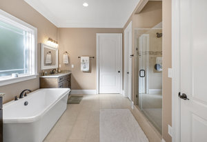 The master suite is a true retreat, featuring a luxurious master bath with an oversized soaking tub, creating a spa-like experience within your own home. With 12-foot interior doors and a stunning front double glass entrance, this home offers a grand and welcoming ambiance that is sure to impress your guests.