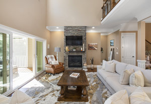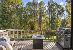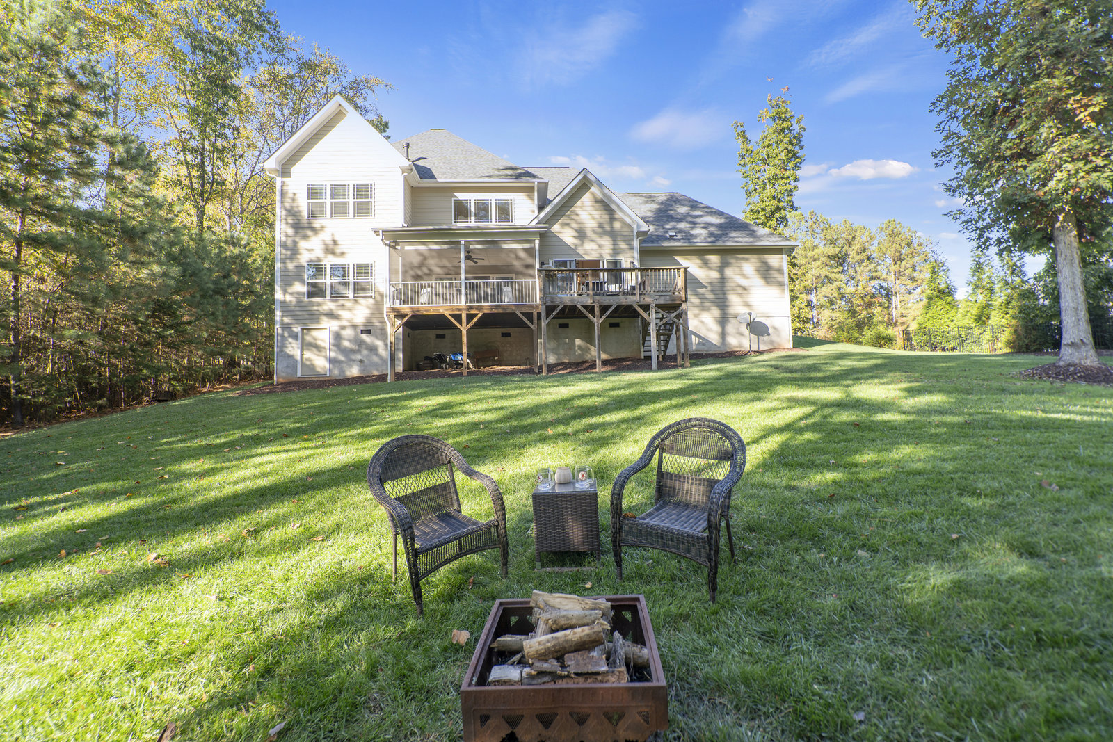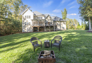 The private backyard includes a fireplace, creating a cozy and inviting atmosphere for gatherings or simply enjoying the tranquility of your surroundings.