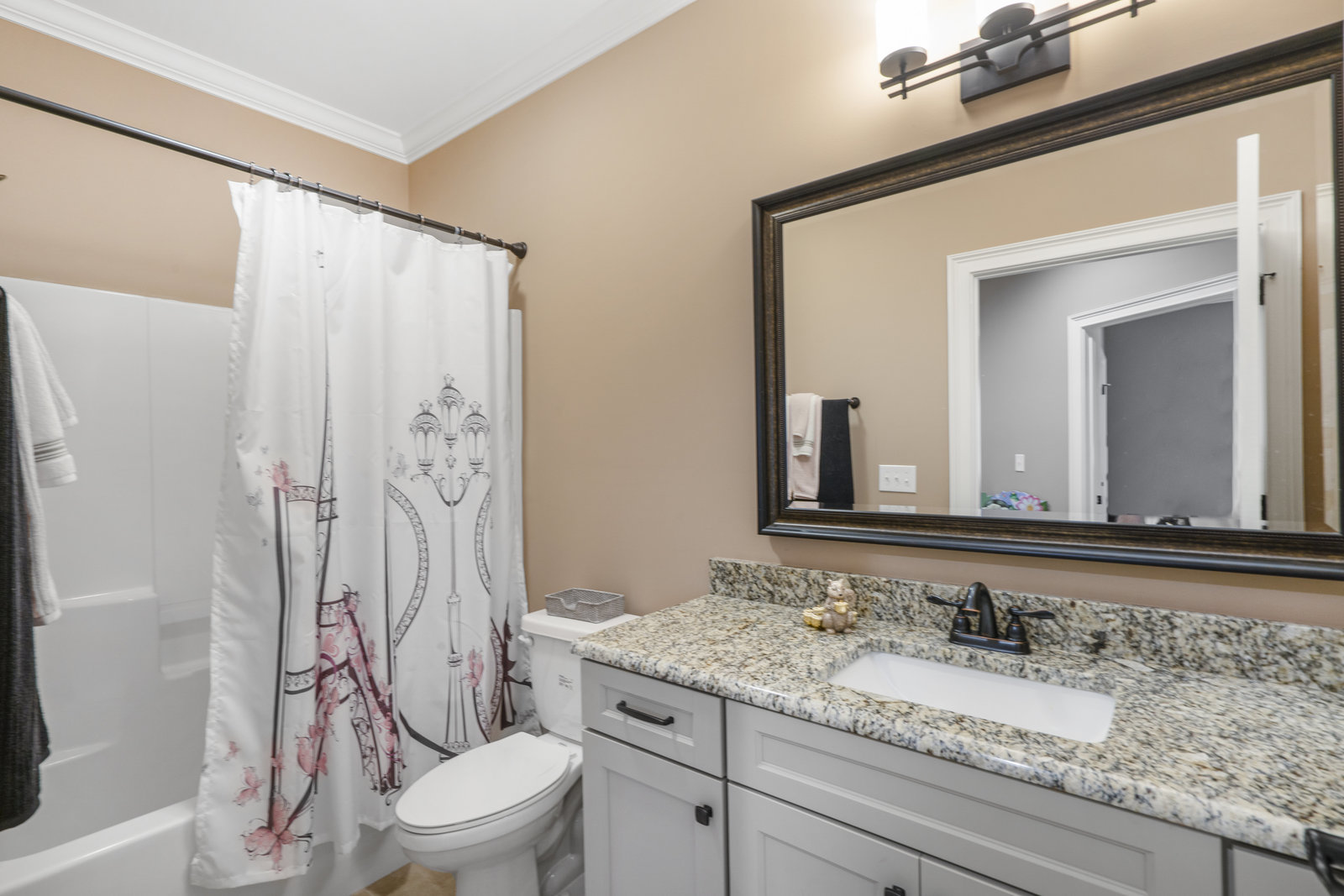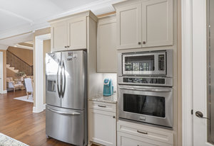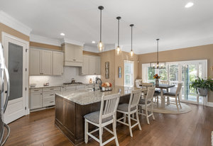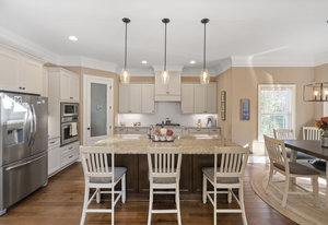 As you enter the home, you'll be greeted by a strong and impressive grand staircase adorned with wrought-iron spindles, setting the tone for the elegance that awaits you. The spacious and functional chef's kitchen boasts a massive granite island with storage on both sides, making it an ideal spot for both culinary creations and casual family gatherings. The unique feature of a sink embedded in the island, facing the family room, ensures that you're always part of the action.