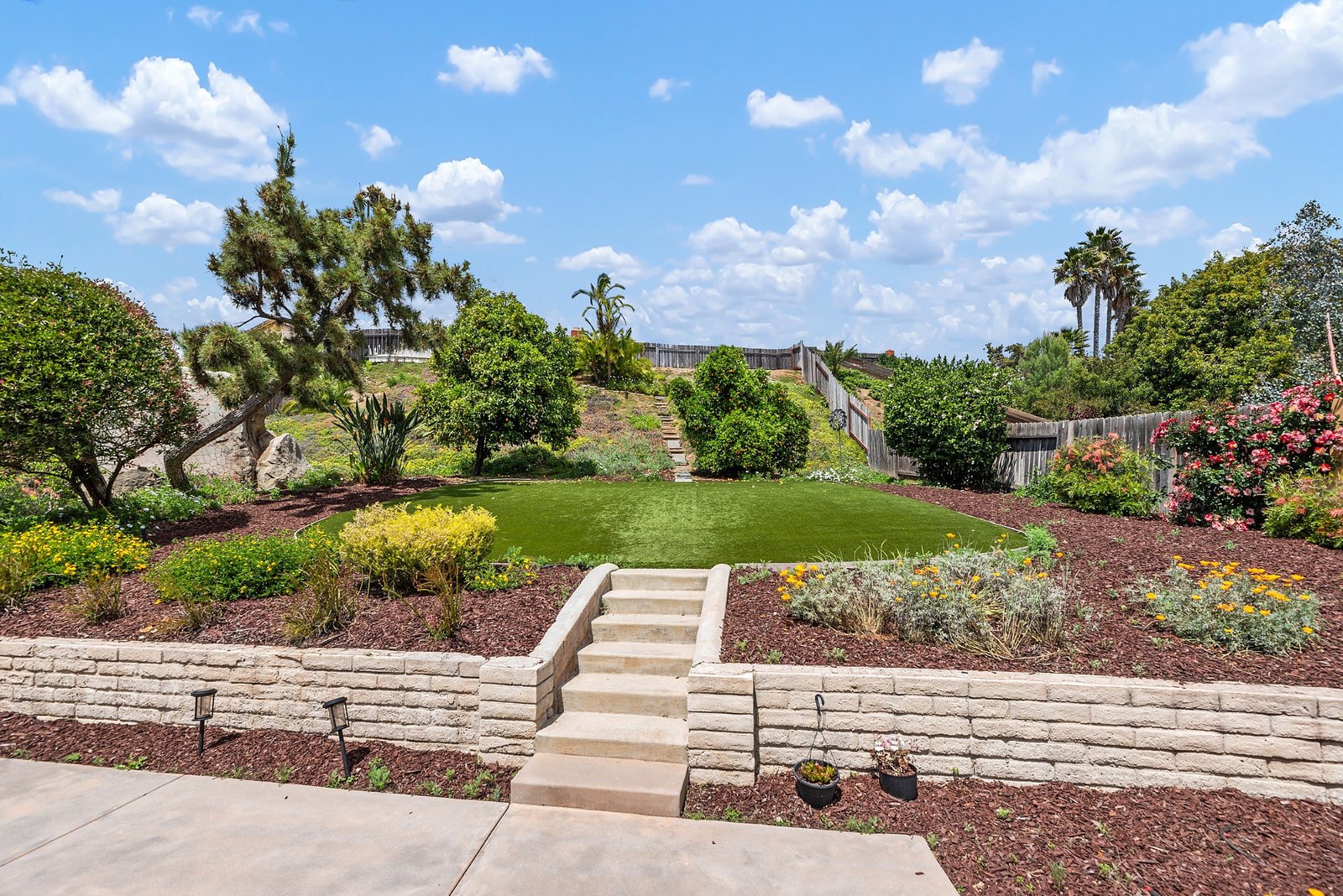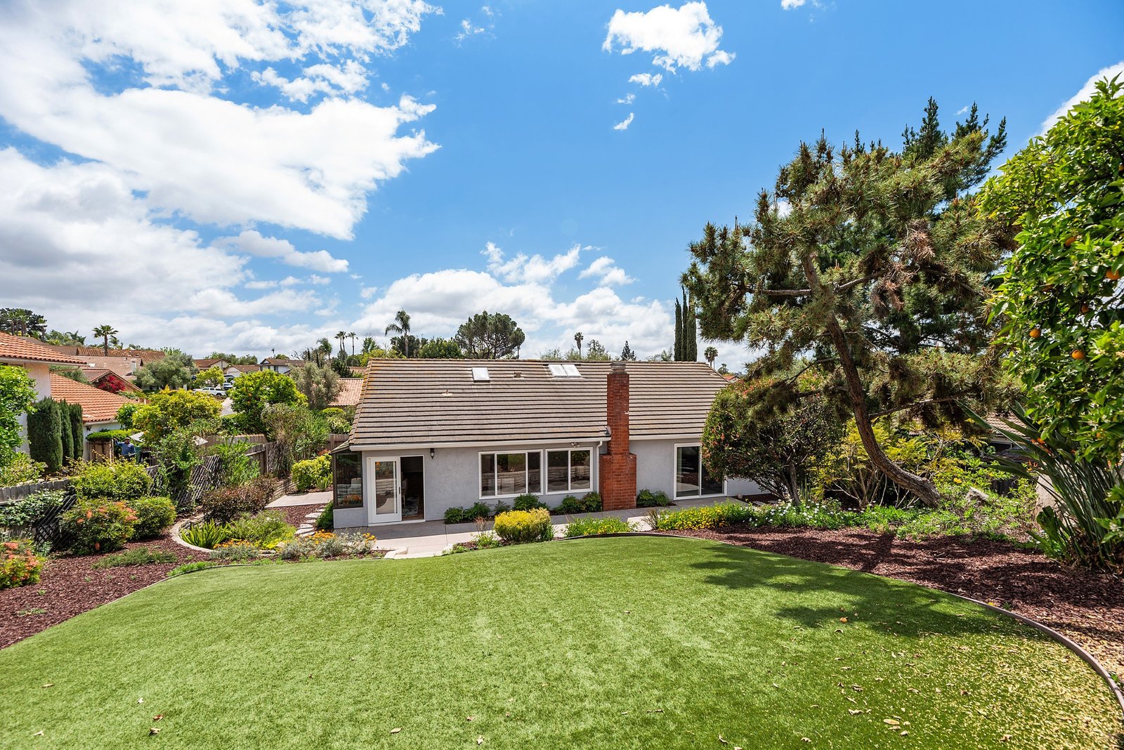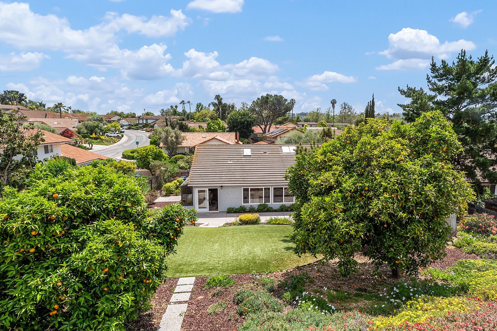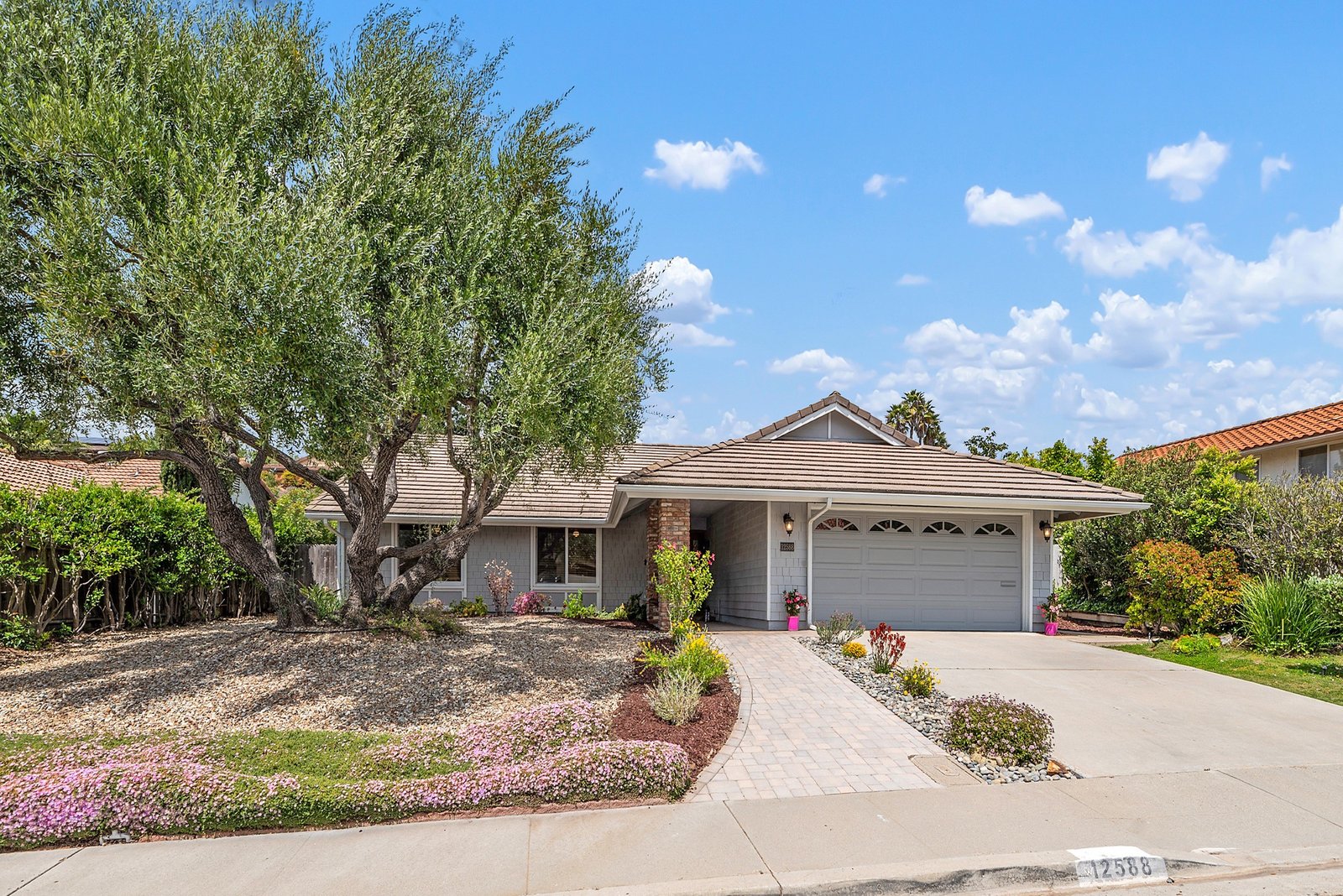 The instant you arrive, this welcoming home captures your heart with its vibrant landscaping, colorful blooms, and cozy bench swing. Located in a quiet cul-de-sac on an expansive .33-acre lot, this beautifully maintained, single level residence offers an open floor plan that blends comfort with functionality. Large windows bathe the interior in natural light, enhancing the home’s airy and inviting ambiance. Step into an interior featuring freshly painted walls, updated bathrooms, new outlets, and an open-concept kitchen that seamlessly connects to the living and dining areas—perfect for daily living and entertaining. The flexible layout is ideal for a variety of lifestyles, offering space to relax, work, or host. The tranquil backyard retreat is designed for year-round enjoyment, with low-maintenance synthetic turf, stylish pavers, fruit trees, and mature landscaping. The yard is fully fenced, providing privacy and safety, while a potential view deck could unlock sweeping vistas from the upper portion of the property. Located in the sought-after Rancho Bernardo master-planned community, this home is within the award-winning Poway Unified School District and offers convenient access to shopping, golf courses, freeways, and scenic hiking trails. There are no Mello-Roos fees and a low annual membership to the nearby RB Swim & Tennis Club grants access to tennis and pickleball courts, a fitness center, pools, spa, and a variety of activities. Come experience the charm, space, and lifestyle that make this Gatewood Hills gem the perfect place to call home.