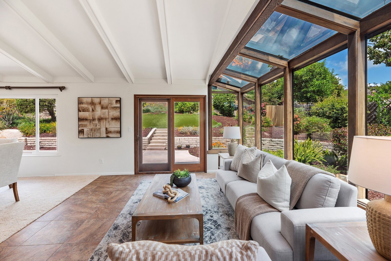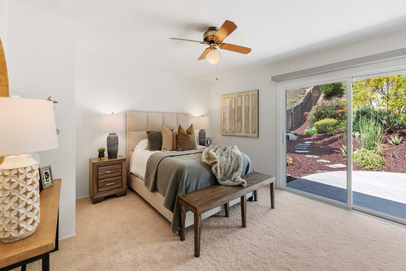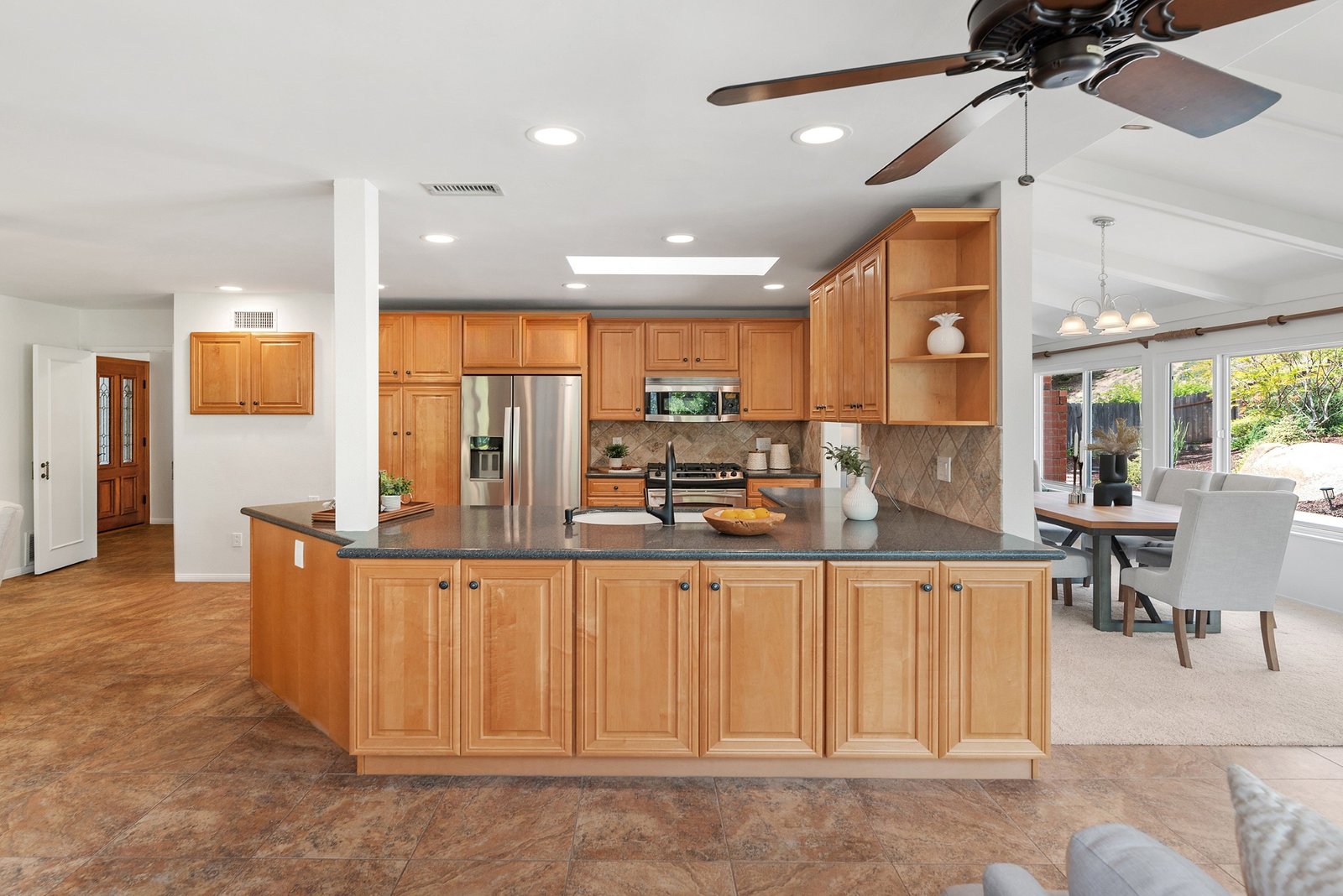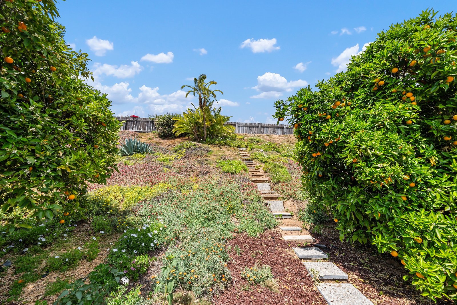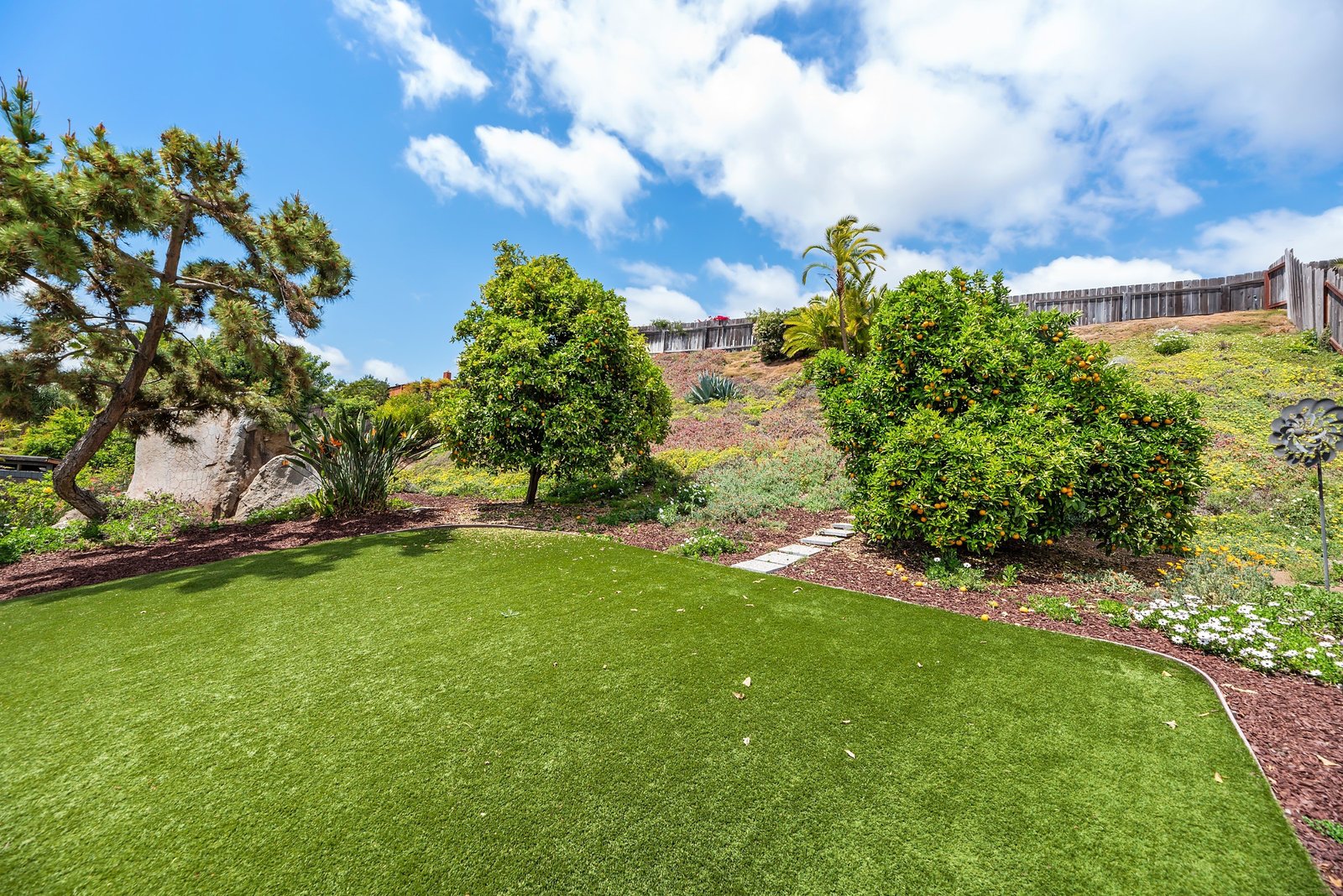 The instant you arrive, this welcoming home captures your heart with its vibrant landscaping, colorful blooms, and cozy bench swing. Located in a quiet cul-de-sac on an expansive .33-acre lot, this beautifully maintained, single level residence offers an open floor plan that blends comfort with functionality. Large windows bathe the interior in natural light, enhancing the home’s airy and inviting ambiance. Step into an interior featuring freshly painted walls, updated bathrooms, new outlets, and an open-concept kitchen that seamlessly connects to the living and dining areas—perfect for daily living and entertaining. The flexible layout is ideal for a variety of lifestyles, offering space to relax, work, or host. The tranquil backyard retreat is designed for year-round enjoyment, with low-maintenance synthetic turf, stylish pavers, fruit trees, and mature landscaping. The yard is fully fenced, providing privacy and safety, while a potential view deck could unlock sweeping vistas from the upper portion of the property. Located in the sought-after Rancho Bernardo master-planned community, this home is within the award-winning Poway Unified School District and offers convenient access to shopping, golf courses, freeways, and scenic hiking trails. There are no Mello-Roos fees and a low annual membership to the nearby RB Swim & Tennis Club grants access to tennis and pickleball courts, a fitness center, pools, spa, and a variety of activities. Come experience the charm, space, and lifestyle that make this Gatewood Hills gem the perfect place to call home.