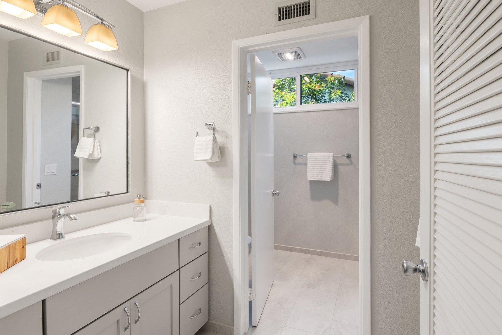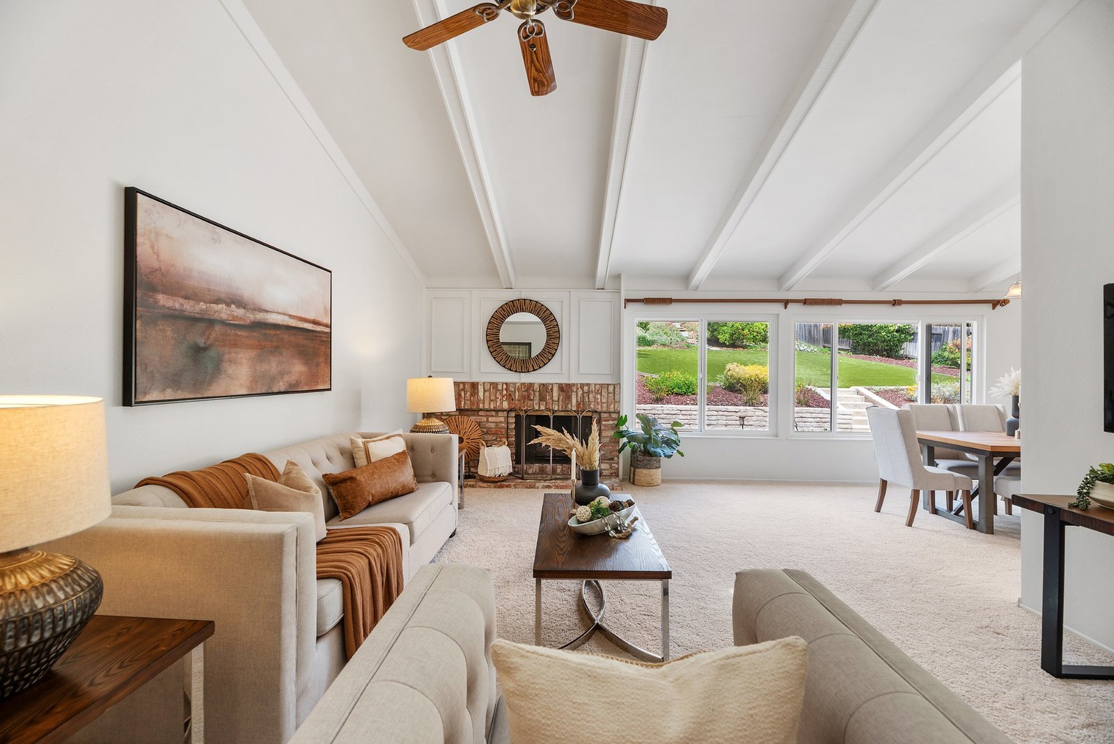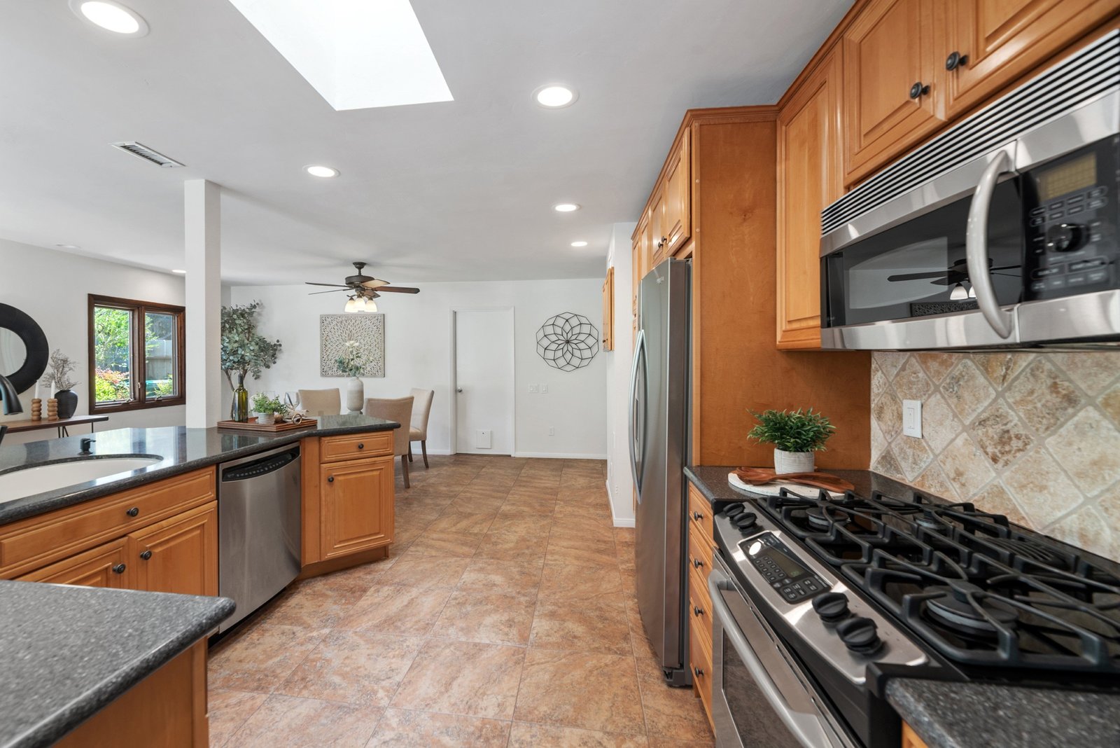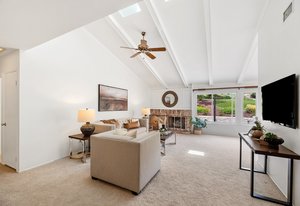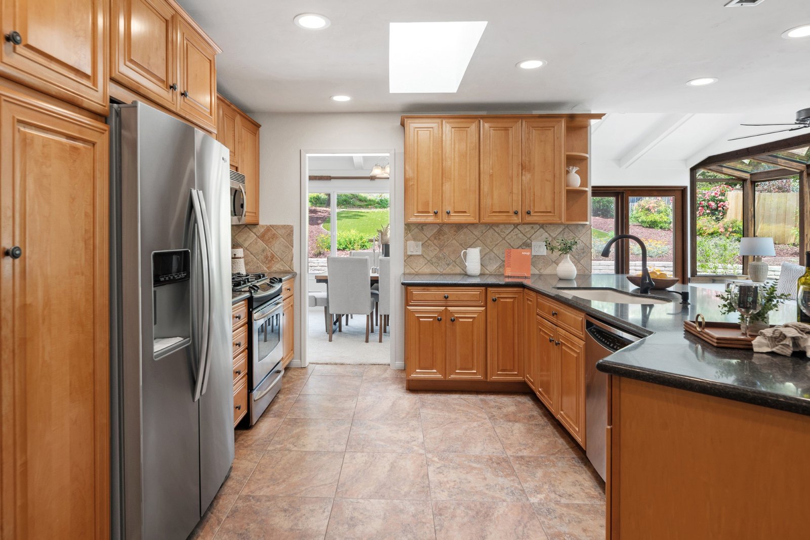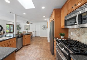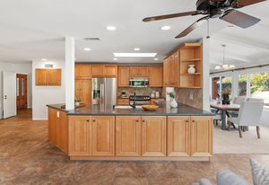 The instant you arrive, this welcoming home captures your heart with its vibrant landscaping, colorful blooms, and cozy bench swing. Located in a quiet cul-de-sac on an expansive .33-acre lot, this beautifully maintained, single level residence offers an open floor plan that blends comfort with functionality. Large windows bathe the interior in natural light, enhancing the home’s airy and inviting ambiance. Step into an interior featuring freshly painted walls, updated bathrooms, new outlets, and an open-concept kitchen that seamlessly connects to the living and dining areas—perfect for daily living and entertaining. The flexible layout is ideal for a variety of lifestyles, offering space to relax, work, or host. The tranquil backyard retreat is designed for year-round enjoyment, with low-maintenance synthetic turf, stylish pavers, fruit trees, and mature landscaping. The yard is fully fenced, providing privacy and safety, while a potential view deck could unlock sweeping vistas from the upper portion of the property. Located in the sought-after Rancho Bernardo master-planned community, this home is within the award-winning Poway Unified School District and offers convenient access to shopping, golf courses, freeways, and scenic hiking trails. There are no Mello-Roos fees and a low annual membership to the nearby RB Swim & Tennis Club grants access to tennis and pickleball courts, a fitness center, pools, spa, and a variety of activities. Come experience the charm, space, and lifestyle that make this Gatewood Hills gem the perfect place to call home.