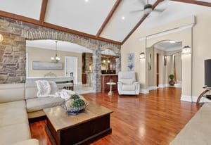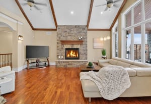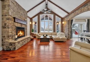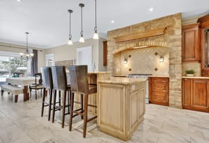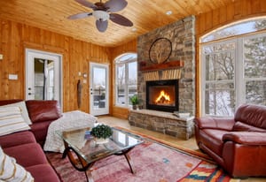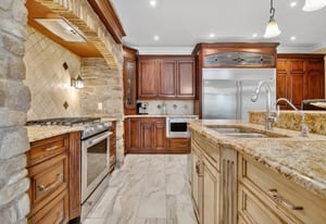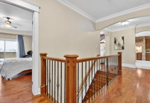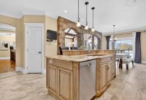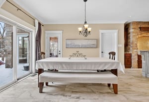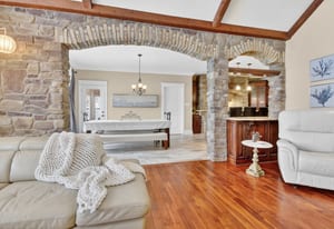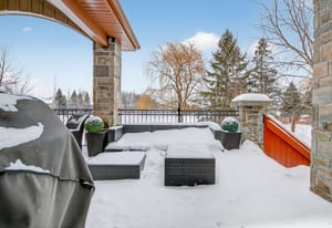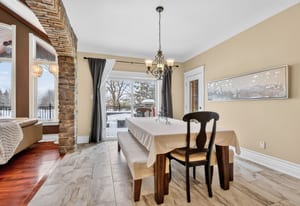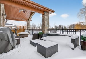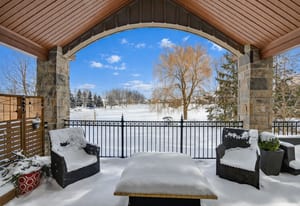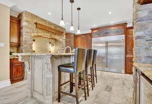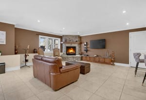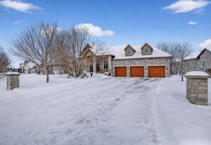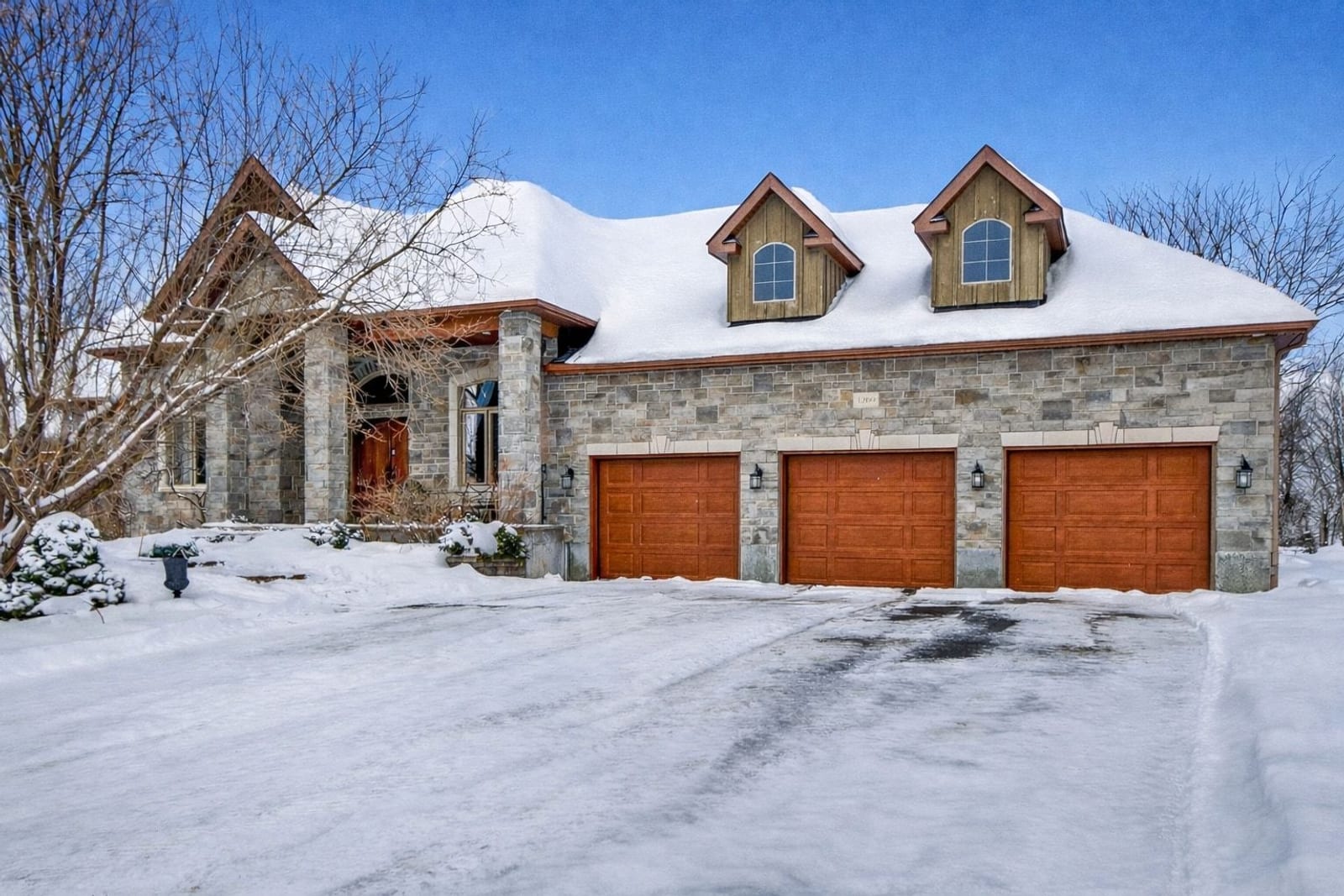 Welcome to a truly exceptional waterfront bungalow with walkout lower level in Greely, where timeless craftsmanship, thoughtful design & breathtaking natural surroundings come together to create a home that is both luxurious & welcoming. The home impresses immediately with dramatic architectural elements, including soaring 12-foot vaulted ceilings with exposed wood beams, a striking floor-to-ceiling stone fireplace & an elegant stone archway leading into the eat-in kitchen. Large windows flood the main living area with natural light & frame picturesque waterfront views, creating a warm and inviting atmosphere ideal for both everyday living & entertaining. The kitchen is thoughtfully designed with generous workspace and storage, seamlessly connected to the living & dining areas. One of the home's standout features is the expansive balcony overlooking the water, accessible from both the kitchen & primary bedroom-perfect for morning coffee or evening relaxation. The primary suite is a private retreat featuring a spa-inspired 6-piece ensuite & an exceptionally deep 14-foot walk-in closet. Two additional main-floor bedrooms offer flexibility for family, guests, or home office use, while main floor laundry adds everyday convenience. The walkout lower level dramatically expands the living space, offering direct access to the yard & waterfront. This level features radiant heat flooring for added comfort in the winter months and inside entry from garage, two generously sized bedrooms, each with its own large walk-in closet, expansive open living areas & an additional kitchen, making it ideal for an in-law suite or extended family living. Outside, the beautiful waterfront setting & large yard provide endless opportunities for outdoor entertaining, recreation & relaxation. Hydro approx. $330/mo, Gas approx. $110-170/mo