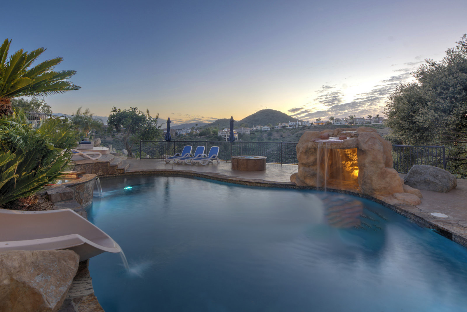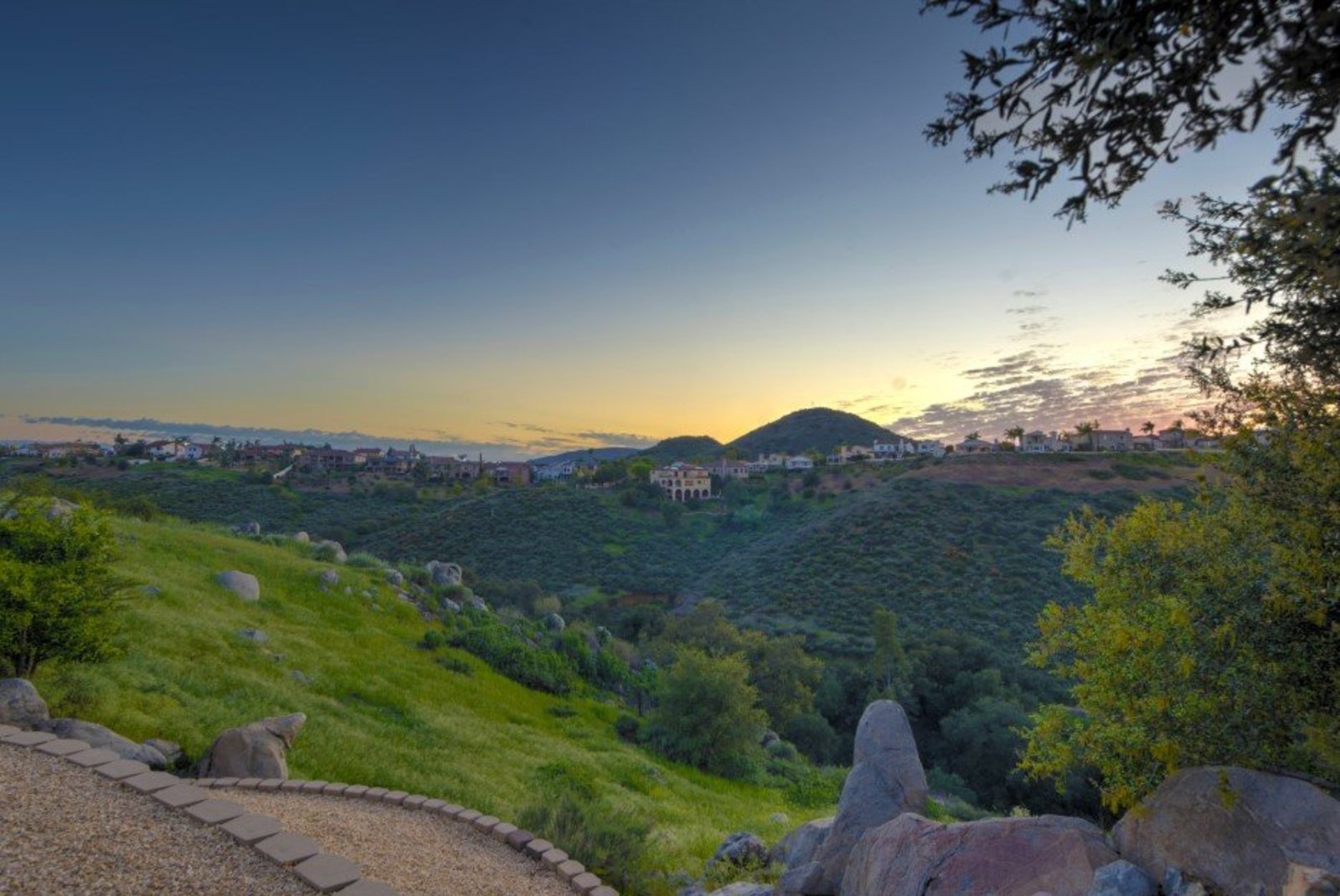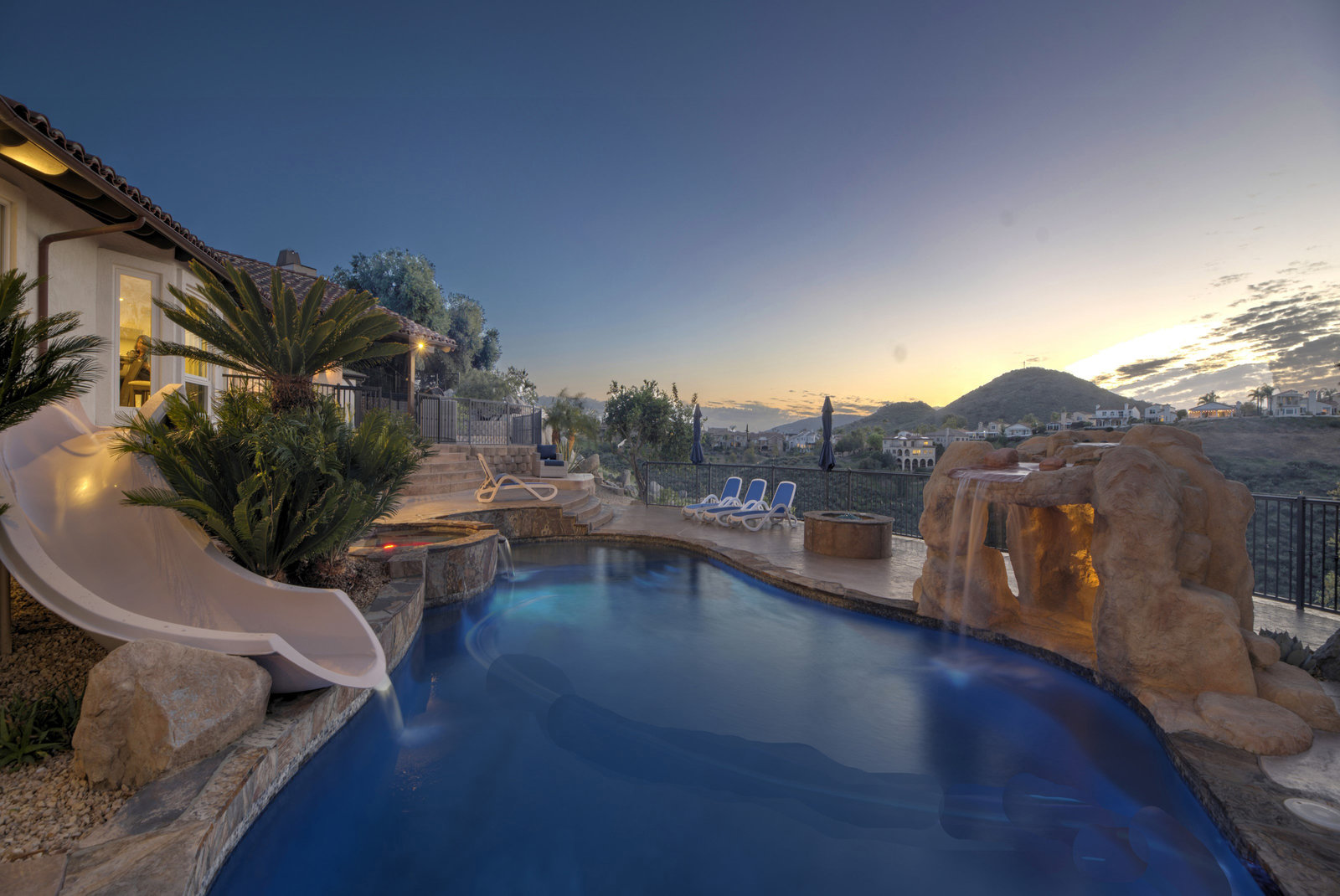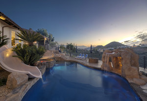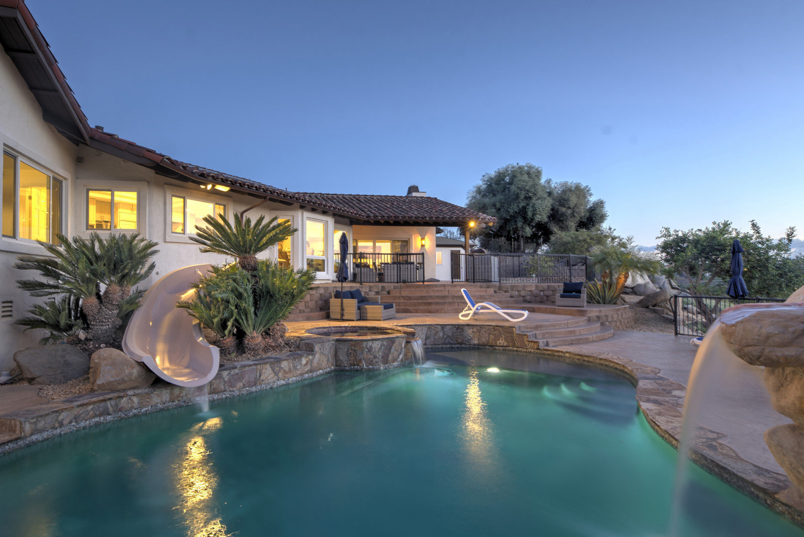 Welcome to this turnkey, mint, great feeling, custom beauty sited on a peaceful 1.16 acre lot in the highly coveted neighborhood of The Trails in Rancho Bernardo. Paver lined driveway, sleek garage, and a glass pivot front door. The floor plan allows all kinds of possibilities (including multi-generational living). Recently remodeled kitchen and bathrooms, newer HVAC system and ducting, owned solar, spectacular views, 3 car garage with epoxy flooring, newer flooring, custom closets, pool with slide, spa, outdoor surfboard shower and much more. No Mello-Roos and located in the highly acclaimed Poway Unified School District.