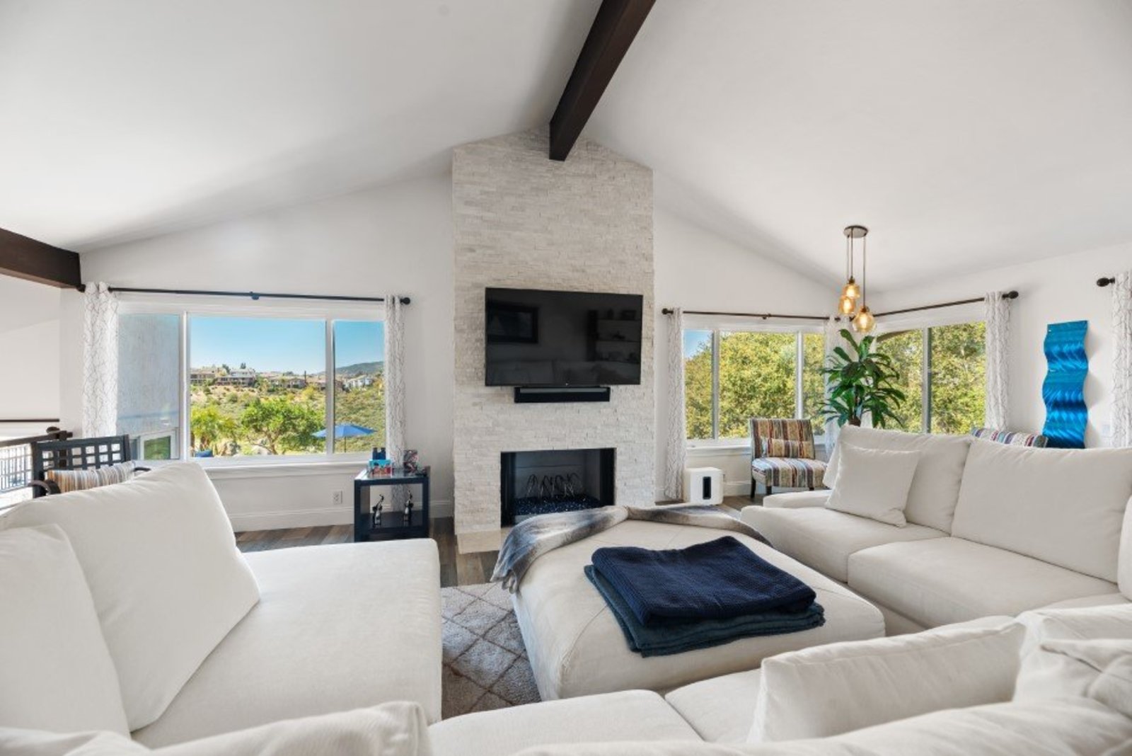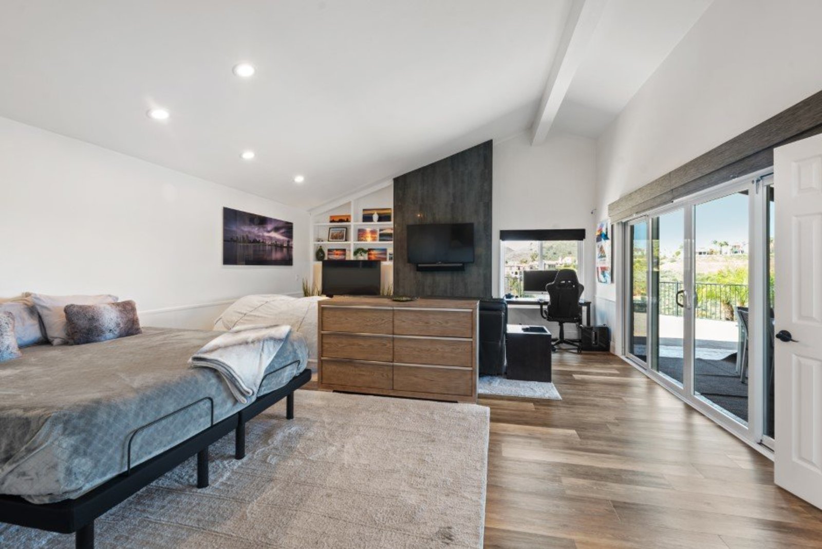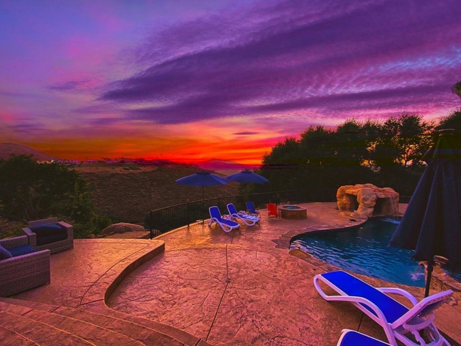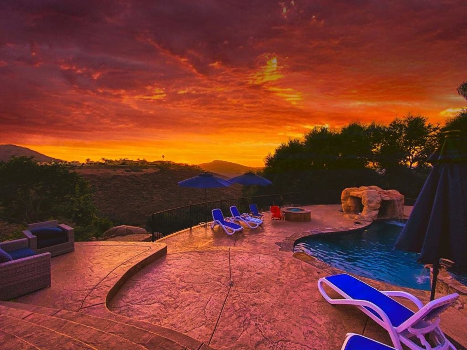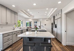 Pack your bags and get ready to move into this feel-good property which is tucked away in the coveted neighborhood of The Trails in Rancho Bernardo. Curbside appeal will have you wanting more even from the look of the highly attractive, numbered mail box and the front yard is meticulously maintained, yet relatively low maintenance. Highlights include a paver lined spacious driveway that accommodates plenty of guest parking, low voltage lighting on sensors to highlight the beautiful palm trees, a sleek looking see through garage and a security system with cameras to give you added piece of mind. Upon walking past the tranquil water feature and glass railing, you will enter through the glass "Pivot Door", which allows an abundance of natural light inside. As if you couldn’t already tell that the owner has put a lot of love and attention to detail into this home, even all the outlets throughout are super clean and streamlined, having zero screws visible. The main level features a powder room, bedroom, gorgeous remodeled kitchen with pantry, separate bar area, breakfast nook, family room/bonus room that is 23X18 (currently being used as a bedroom-ideal for extended family or can be a game room/workout area, large office-the possibilities are endless-a remodeled, full bathroom is within this area) This family room is NOT one of the official 5 bedrooms. Down a few stairs from the main level are three good sized bedrooms, an updated full bathroom with dual vanities, the laundry room, and a 24x14 common area. Up a few stairs from the main level, you will find a 27x18 living/family room, that has a spacious deck off of it. Near this area is the primary bedroom, which is generously sized and has an area in the corner which provides a host of options (massage table, workout equipment, office, nursery, sitting/reading/watching TV area). The primary bathroom has been remodeled in 2023 and just has a great feel to it, including a “secret” door to the walk-in closet. The 3-car garage is about as clean of a garage as you can possibly fathom with epoxy flooring, newer Lift Master components/motors. Out back, come enjoy the good life with canyon views, spectacular sunsets, all while using the BBQ, eating outside, or going down the slide into the refreshing pool (of course, this is after rinsing off under the outdoor shower that has a surfboard), or soaking it all in the spa. There is a shed/indoor/outdoor dog kennel in the backyard as well for those of you wanting to give your pooch a place to roam inside or out. The number of amenities/upgrades/features are simply too many to list and the only way to appreciate it all is to see it in person, but here are some to consider: owned solar for the home, Tesla charger with installed electric, 2 Tesla wall batteries, whole house fan, upgraded irrigation system (has rain sensors), smart home capabilities (ie, Google Hubs), pool automation, security system with cameras and sensor lights, newer flooring, neutral/tasteful paint colors, newer HVAC system including ducting. No Mello-Roos and located in the highly acclaimed Poway Unified School District. The Trails of Rancho Bernardo is a highly sought-after neighborhood in the 92128 zip code and consists of approximately 259 custom homes, all on minimum 1 acre lots. Come make this turnkey, meticulously maintained property your next home!