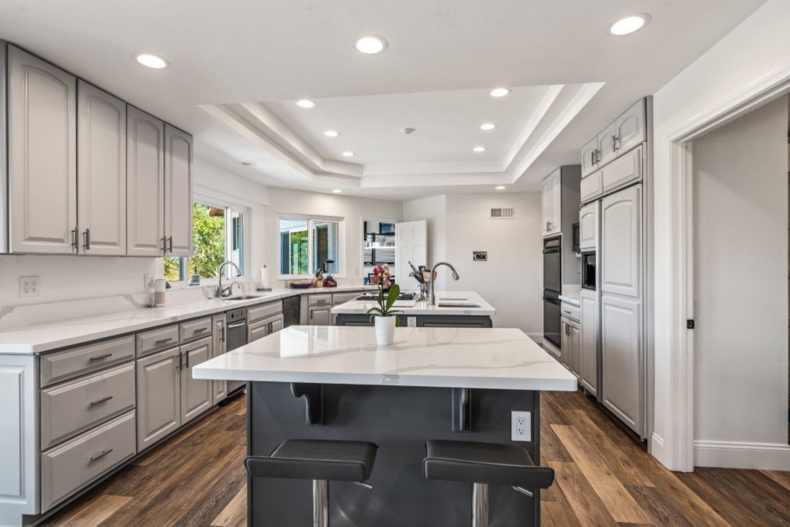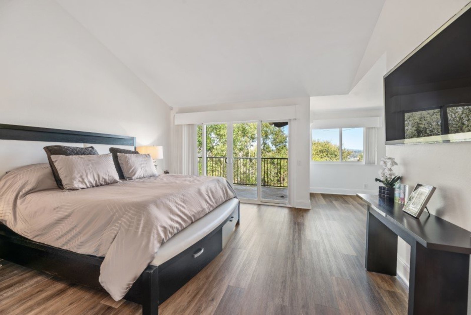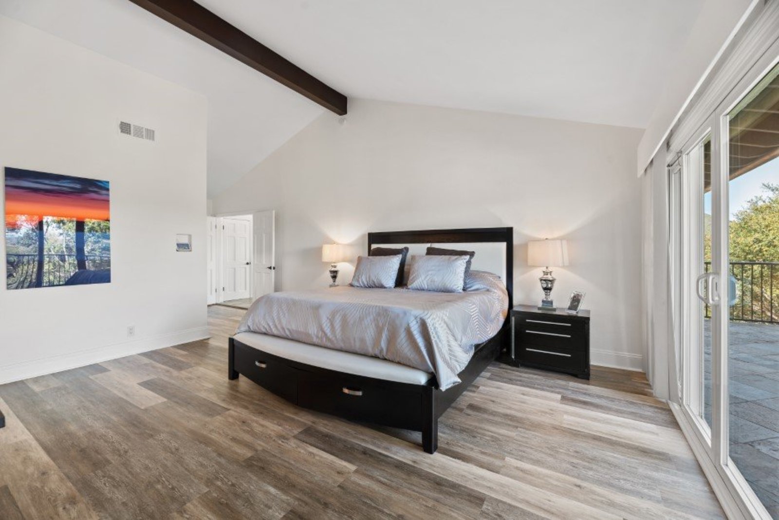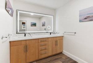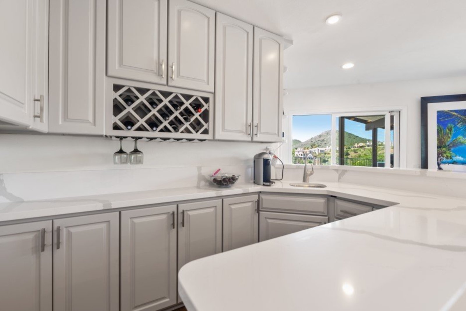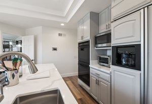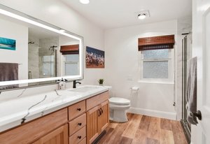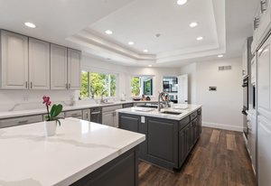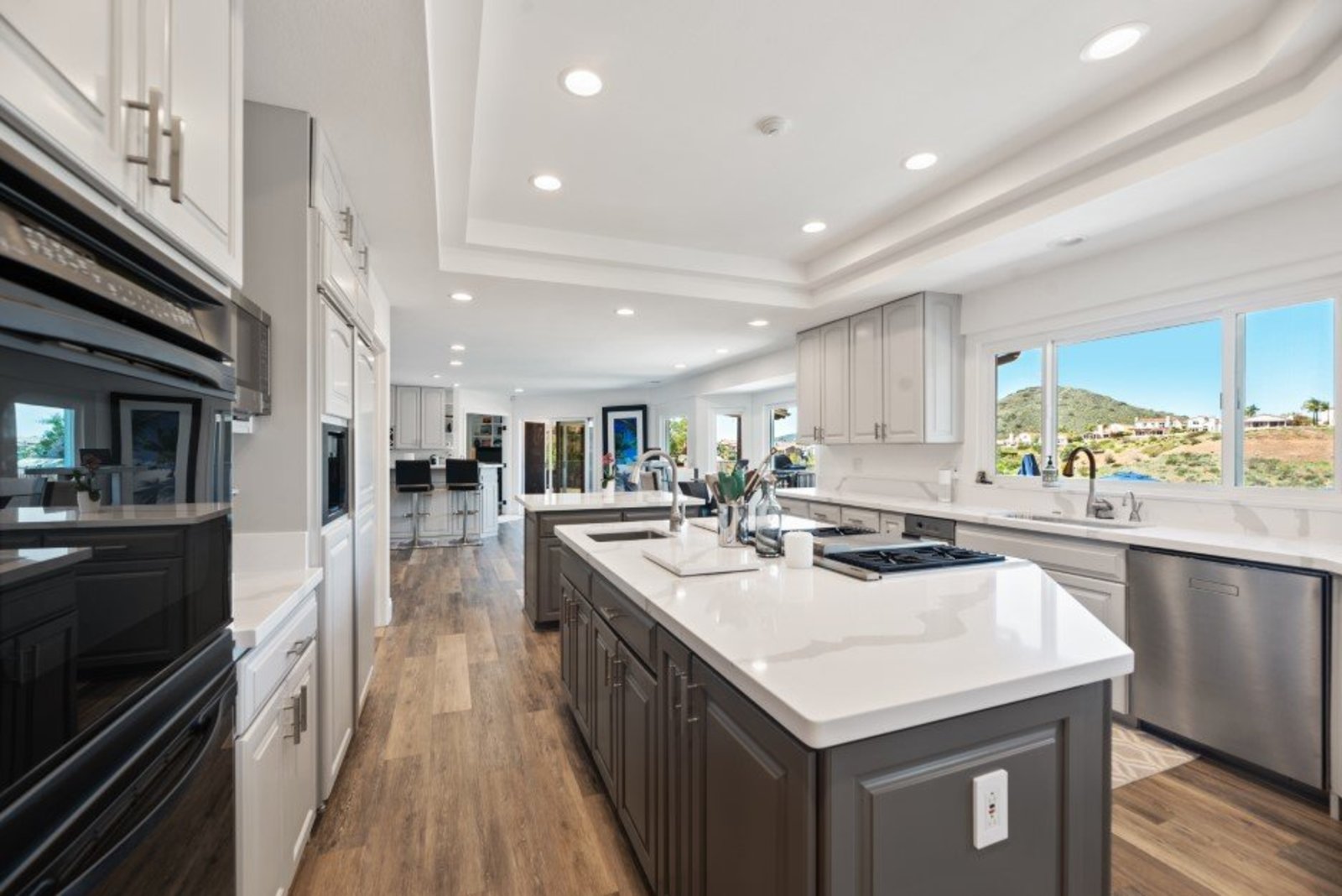 Pack your bags and get ready to move into this feel-good property which is tucked away in the coveted neighborhood of The Trails in Rancho Bernardo. Curbside appeal will have you wanting more even from the look of the highly attractive, numbered mail box and the front yard is meticulously maintained, yet relatively low maintenance. Highlights include a paver lined spacious driveway that accommodates plenty of guest parking, low voltage lighting on sensors to highlight the beautiful palm trees, a sleek looking see through garage and a security system with cameras to give you added piece of mind. Upon walking past the tranquil water feature and glass railing, you will enter through the glass "Pivot Door", which allows an abundance of natural light inside. As if you couldn’t already tell that the owner has put a lot of love and attention to detail into this home, even all the outlets throughout are super clean and streamlined, having zero screws visible. The main level features a powder room, bedroom, gorgeous remodeled kitchen with pantry, separate bar area, breakfast nook, family room/bonus room that is 23X18 (currently being used as a bedroom-ideal for extended family or can be a game room/workout area, large office-the possibilities are endless-a remodeled, full bathroom is within this area) This family room is NOT one of the official 5 bedrooms. Down a few stairs from the main level are three good sized bedrooms, an updated full bathroom with dual vanities, the laundry room, and a 24x14 common area. Up a few stairs from the main level, you will find a 27x18 living/family room, that has a spacious deck off of it. Near this area is the primary bedroom, which is generously sized and has an area in the corner which provides a host of options (massage table, workout equipment, office, nursery, sitting/reading/watching TV area). The primary bathroom has been remodeled in 2023 and just has a great feel to it, including a “secret” door to the walk-in closet. The 3-car garage is about as clean of a garage as you can possibly fathom with epoxy flooring, newer Lift Master components/motors. Out back, come enjoy the good life with canyon views, spectacular sunsets, all while using the BBQ, eating outside, or going down the slide into the refreshing pool (of course, this is after rinsing off under the outdoor shower that has a surfboard), or soaking it all in the spa. There is a shed/indoor/outdoor dog kennel in the backyard as well for those of you wanting to give your pooch a place to roam inside or out. The number of amenities/upgrades/features are simply too many to list and the only way to appreciate it all is to see it in person, but here are some to consider: owned solar for the home, Tesla charger with installed electric, 2 Tesla wall batteries, whole house fan, upgraded irrigation system (has rain sensors), smart home capabilities (ie, Google Hubs), pool automation, security system with cameras and sensor lights, newer flooring, neutral/tasteful paint colors, newer HVAC system including ducting. No Mello-Roos and located in the highly acclaimed Poway Unified School District. The Trails of Rancho Bernardo is a highly sought-after neighborhood in the 92128 zip code and consists of approximately 259 custom homes, all on minimum 1 acre lots. Come make this turnkey, meticulously maintained property your next home!