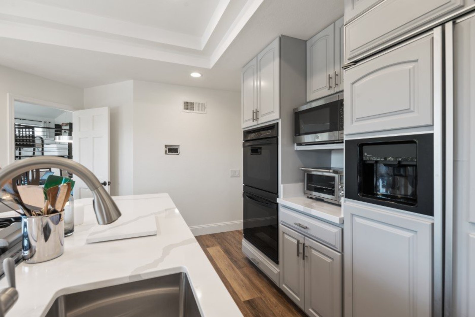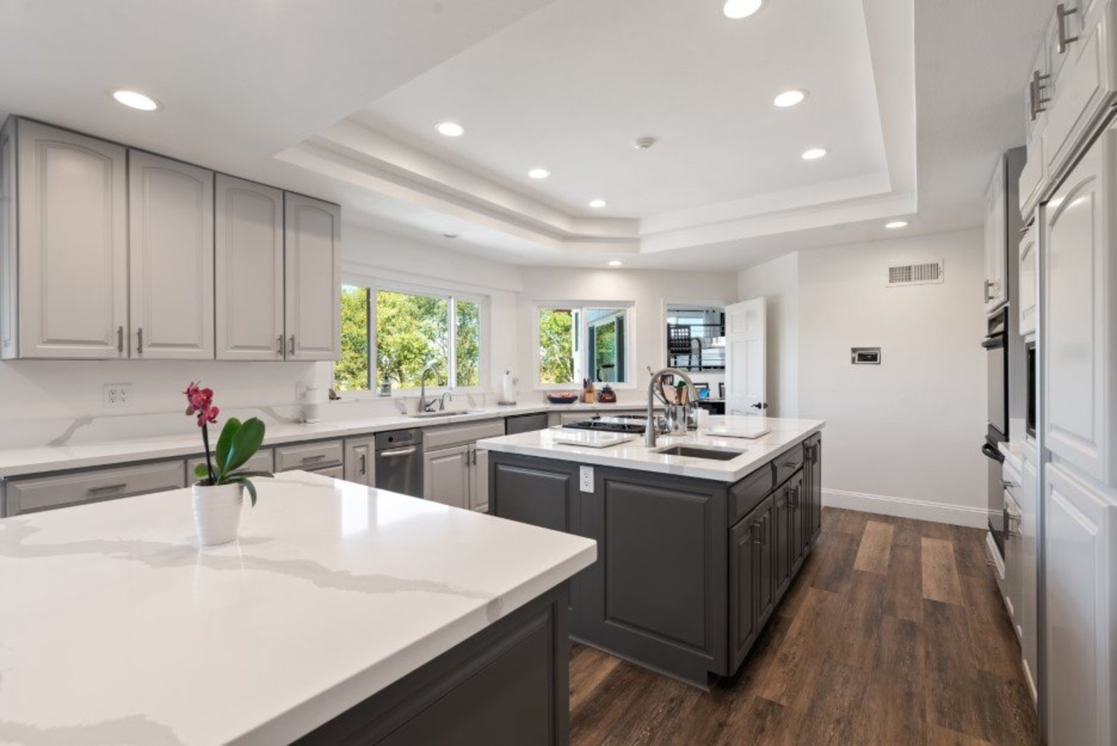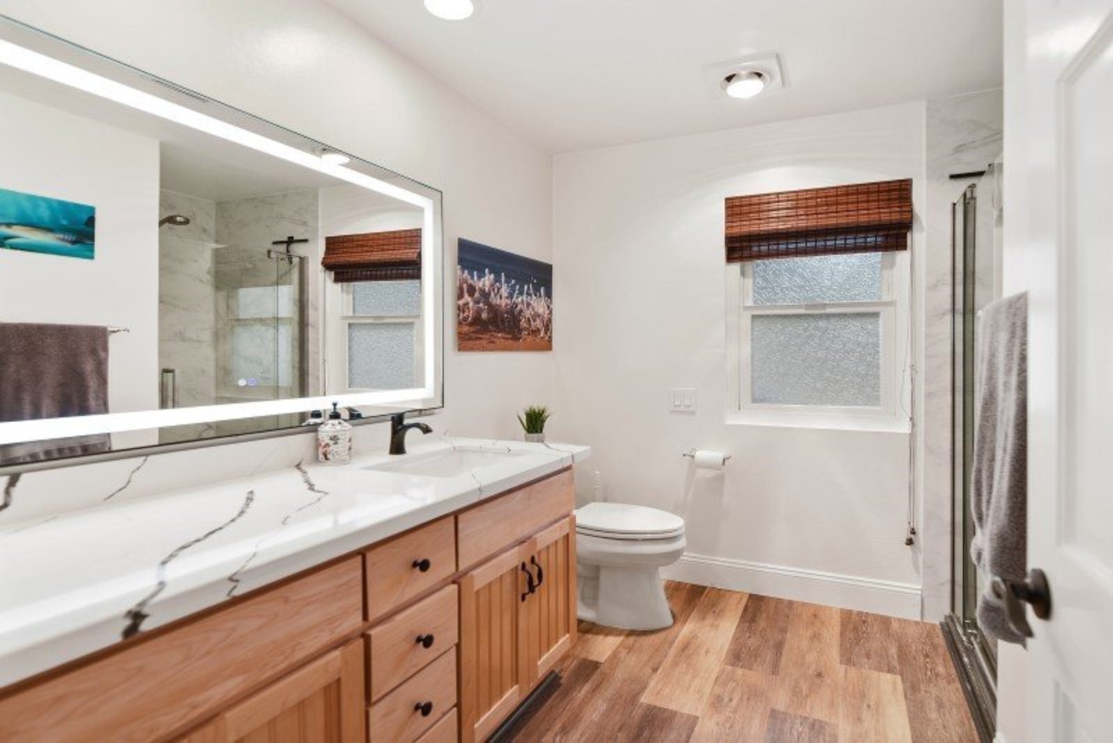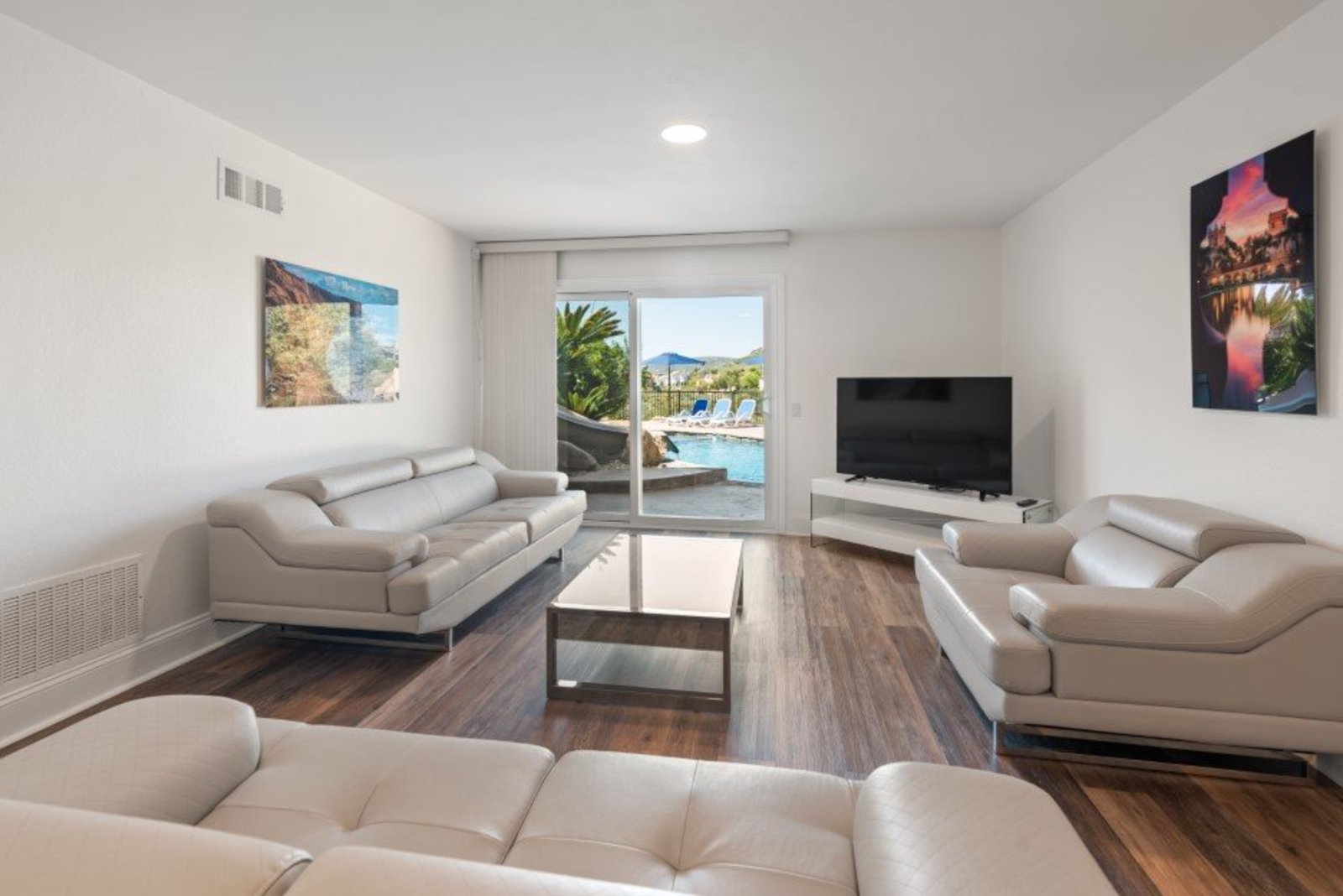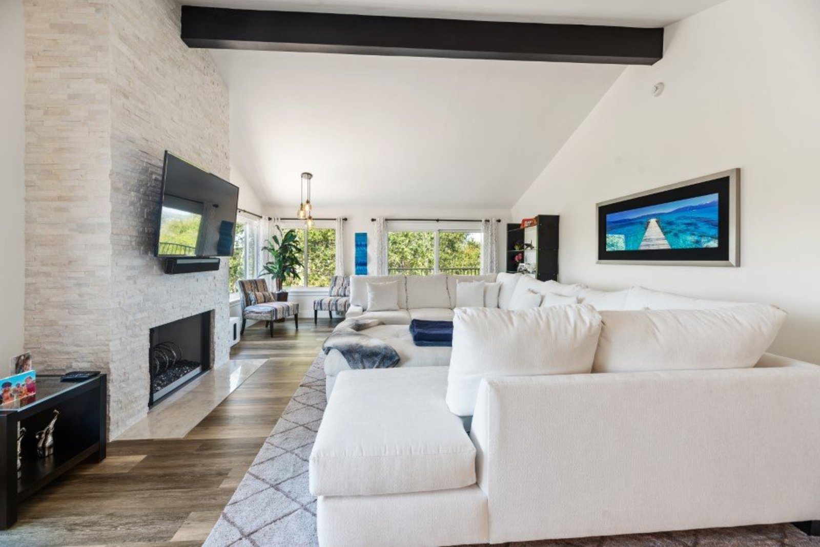 Pack your bags and get ready to move into this feel-good property which is tucked away in the coveted neighborhood of The Trails in Rancho Bernardo. Curbside appeal will have you wanting more even from the look of the highly attractive, numbered mail box and the front yard is meticulously maintained, yet relatively low maintenance. Highlights include a paver lined spacious driveway that accommodates plenty of guest parking, low voltage lighting on sensors to highlight the beautiful palm trees, a sleek looking see through garage and a security system with cameras to give you added piece of mind. Upon walking past the tranquil water feature and glass railing, you will enter through the glass "Pivot Door", which allows an abundance of natural light inside. As if you couldn’t already tell that the owner has put a lot of love and attention to detail into this home, even all the outlets throughout are super clean and streamlined, having zero screws visible. The main level features a powder room, bedroom, gorgeous remodeled kitchen with pantry, separate bar area, breakfast nook, family room/bonus room that is 23X18 (currently being used as a bedroom-ideal for extended family or can be a game room/workout area, large office-the possibilities are endless-a remodeled, full bathroom is within this area) This family room is NOT one of the official 5 bedrooms. Down a few stairs from the main level are three good sized bedrooms, an updated full bathroom with dual vanities, the laundry room, and a 24x14 common area. Up a few stairs from the main level, you will find a 27x18 living/family room, that has a spacious deck off of it. Near this area is the primary bedroom, which is generously sized and has an area in the corner which provides a host of options (massage table, workout equipment, office, nursery, sitting/reading/watching TV area). The primary bathroom has been remodeled in 2023 and just has a great feel to it, including a “secret” door to the walk-in closet. The 3-car garage is about as clean of a garage as you can possibly fathom with epoxy flooring, newer Lift Master components/motors. Out back, come enjoy the good life with canyon views, spectacular sunsets, all while using the BBQ, eating outside, or going down the slide into the refreshing pool (of course, this is after rinsing off under the outdoor shower that has a surfboard), or soaking it all in the spa. There is a shed/indoor/outdoor dog kennel in the backyard as well for those of you wanting to give your pooch a place to roam inside or out. The number of amenities/upgrades/features are simply too many to list and the only way to appreciate it all is to see it in person, but here are some to consider: owned solar for the home, Tesla charger with installed electric, 2 Tesla wall batteries, whole house fan, upgraded irrigation system (has rain sensors), smart home capabilities (ie, Google Hubs), pool automation, security system with cameras and sensor lights, newer flooring, neutral/tasteful paint colors, newer HVAC system including ducting. No Mello-Roos and located in the highly acclaimed Poway Unified School District. The Trails of Rancho Bernardo is a highly sought-after neighborhood in the 92128 zip code and consists of approximately 259 custom homes, all on minimum 1 acre lots. Come make this turnkey, meticulously maintained property your next home!