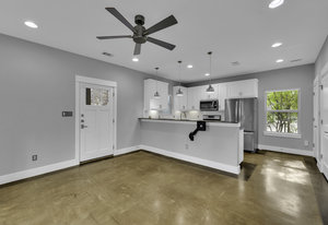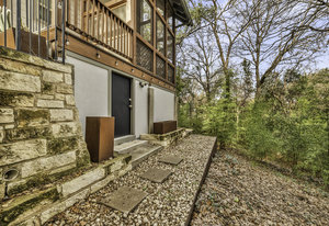 Step outside to enjoy the inviting screened-in porch, a perfect space for relaxing and entertaining while being surrounded by nature's beauty. The thoughtfully updated kitchen is a culinary delight, featuring fresh white cabinets, elegant white subway tile backsplash, and sleek stainless steel appliances. The home boasts two inviting bedrooms and a full bath upstairs, with an additional half bath for convenience on the main level. Ample storage solutions have been creatively integrated beneath the house, perfect for holiday decorations or bike storage.
