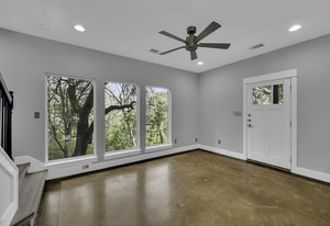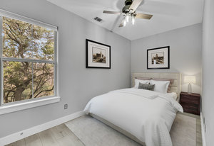 Discover a serene retreat nestled in the coveted Travis Heights neighborhood—an exquisite standalone home that offers unparalleled privacy and tranquility. This unique property, reminiscent of a treehouse, is designed with expansive floor-to-ceiling windows in the spacious living room, allowing an abundance of natural light to illuminate the space while offering stunning views of majestic oak trees.