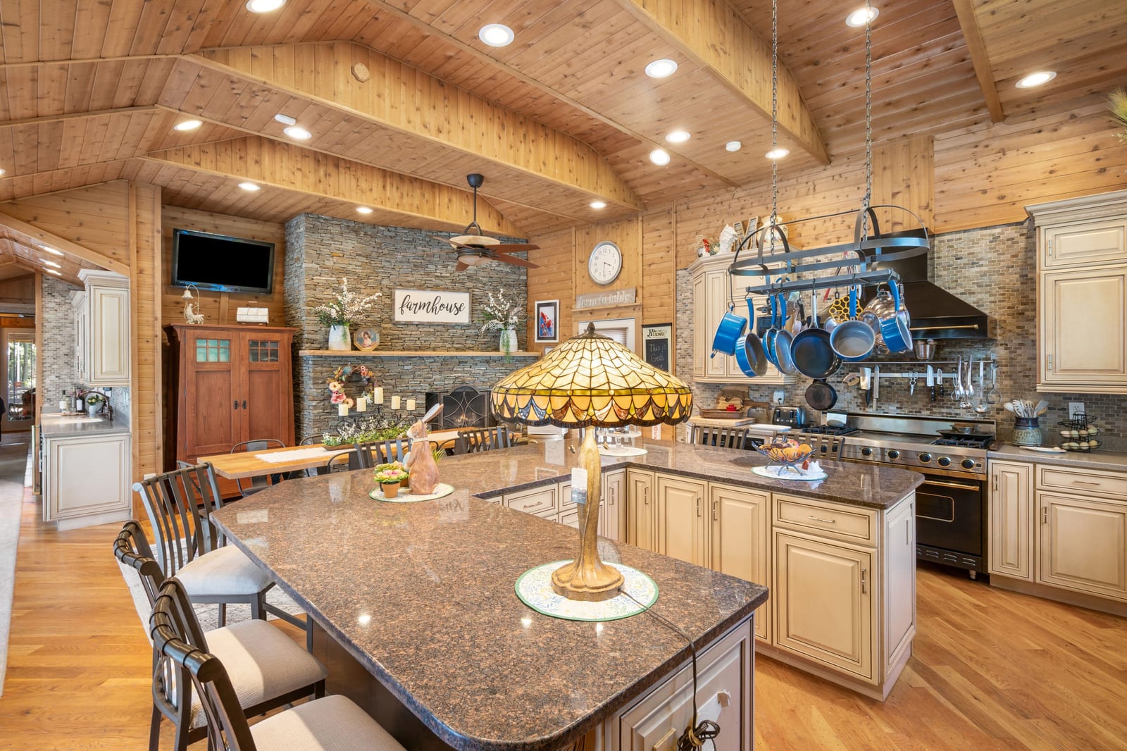 Built in 1870 and reimagined for the way people live today, 1307 Oakridge Farm Hwy is one of those rare properties that makes you stop mid-sentence when you walk through the door. Vaulted cedar ceilings. Stone fireplaces. A Viking gourmet kitchen built for feeding people you love — and fresh eggs from your own chickens to cook in it every morning.