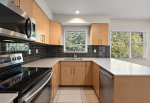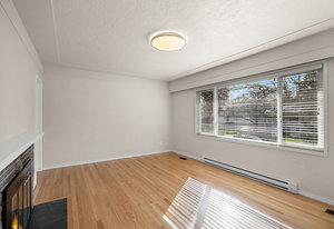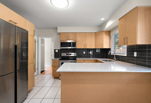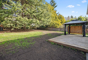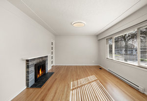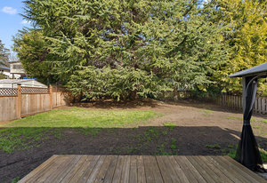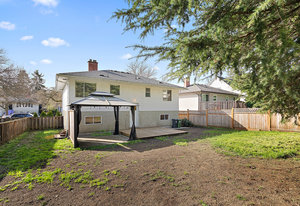 Upstairs you'll find beautifully refinished Oakwood flooring & a cozy living room with a wood-burning fireplace. Modern kitchen with quartz countertops and tastefully updated bathroom. Large flat backyard is low-maintenance fully fenced with a large evergreen tree for year-round privacy, a deck, and gazebo.