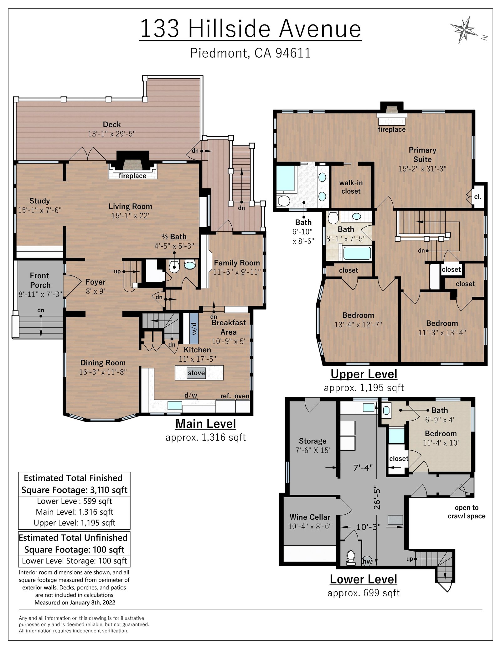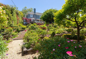 Admired by passersby since it was constructed in 1907, 133 Hillside is truly quintessential Piedmont in every way. Steeped in rich history, this spectacular shingle style home’s architectural details are as stunning inside as they are out. Greeted by a grand foyer, one can’t help but notice the old-world craftsmanship, high ceilings and diamond-paned windows which grace the home’s formal dining room, study and expansive living room. French doors open to a sprawling sunlit terrace overlooking the extrodinary 10,000+ sq. ft. rose-covered grounds. The heart of the home is the chefs eat-in kitchen with an adjoining family room which opens to the gardens as well. The second-floor features three beautiful light-filled bedrooms, two full baths which include a sumptuous primary suite with fireplace, marble bath and filtered views of the bay. The lower level offers wine storage, laundry area, workshop and a charming garden suite, ideal for visiting friends, family or an au pair. Sited on one of Piedmont’s most prized blocks and close to coveted K-12 schools, parks, playfields and Mulberry’s Market.