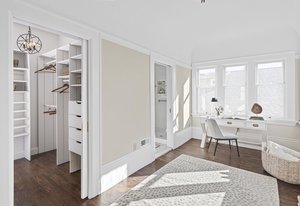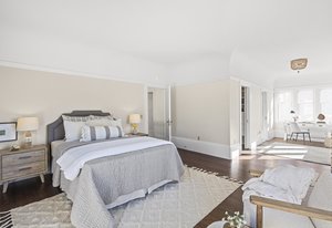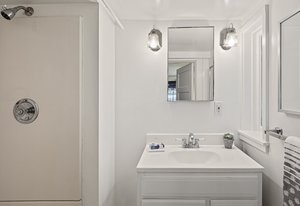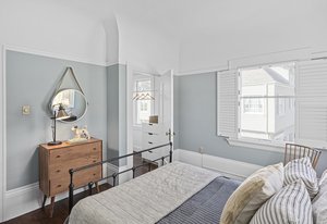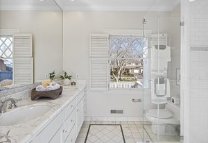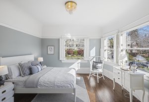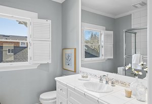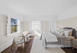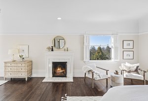 Sumptuous & spacious primary sweet with charming fireplace, walk-in closet, marble clad bath and filtered views of the bay.