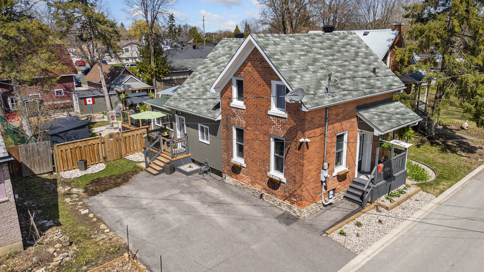 Welcome to 133 Nelson Street East! This charming red brick-century home in the heart of Carleton Place has been thoughtfully updated and freshly painted throughout. From the board and batten siding to the crown moulding and ornate window and door trims, this home radiates with character. Upon entering, you will fall in love with the custom wood closet with built-in storage. The eat-in kitchen features stone countertops, a new gas range and fridge, a chimney-style hood fan, and a breakfast bar. The bright dining room comes with built-in bench seating. Brand new washer/dryer in the laundry room. Off the large living room flanked with windows, the main hallway comes complete with an office nook near the spectacular wood staircase. A main floor bonus room can be used as an additional den or a bedroom and includes a new gas fireplace with sliding doors to a recently upgraded deck in the landscaped backyard. Up the stairs, you will find two bedrooms with gorgeous, vaulted ceilings and beams, and a full bathroom. There is an additional three-piece bathroom on the main floor. The backyard comes with three raised garden beds, ample storage with two sheds plus a fire pit to enjoy smores in the warmer seasons. The home is turn-key, some notable updates include the heat pump in the primary bedroom, a new patio door, and 9 new windows. From here, you're just a short walk from the historic shopping district of Bridge Street with bakeries, cafes, restaurants, and pubs. Book your showing today!
