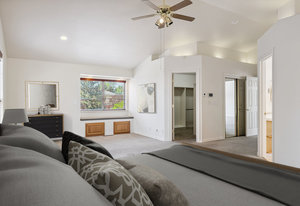 The kitchen is a true chef's dream — featuring solid hickory cabinetry, granite counters, stainless steel appliances, a five-burner range, 3 ovens, 2 microwaves, and radiant-heated travertine floors that extend into the dining and foyer areas. 3 The primary suite and 2 additional bedrooms are conveniently located on the main level. Another sizeable bedroom and an enormous bonus loft space round out the second level's versatile areas for work, play, hobbies, rest, and relaxation. A whole-house central vacuum adds ease to everyday living.