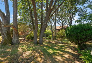 Mature Garry Oak tree canopy and unique rock outcroppings providing privacy and natural beauty