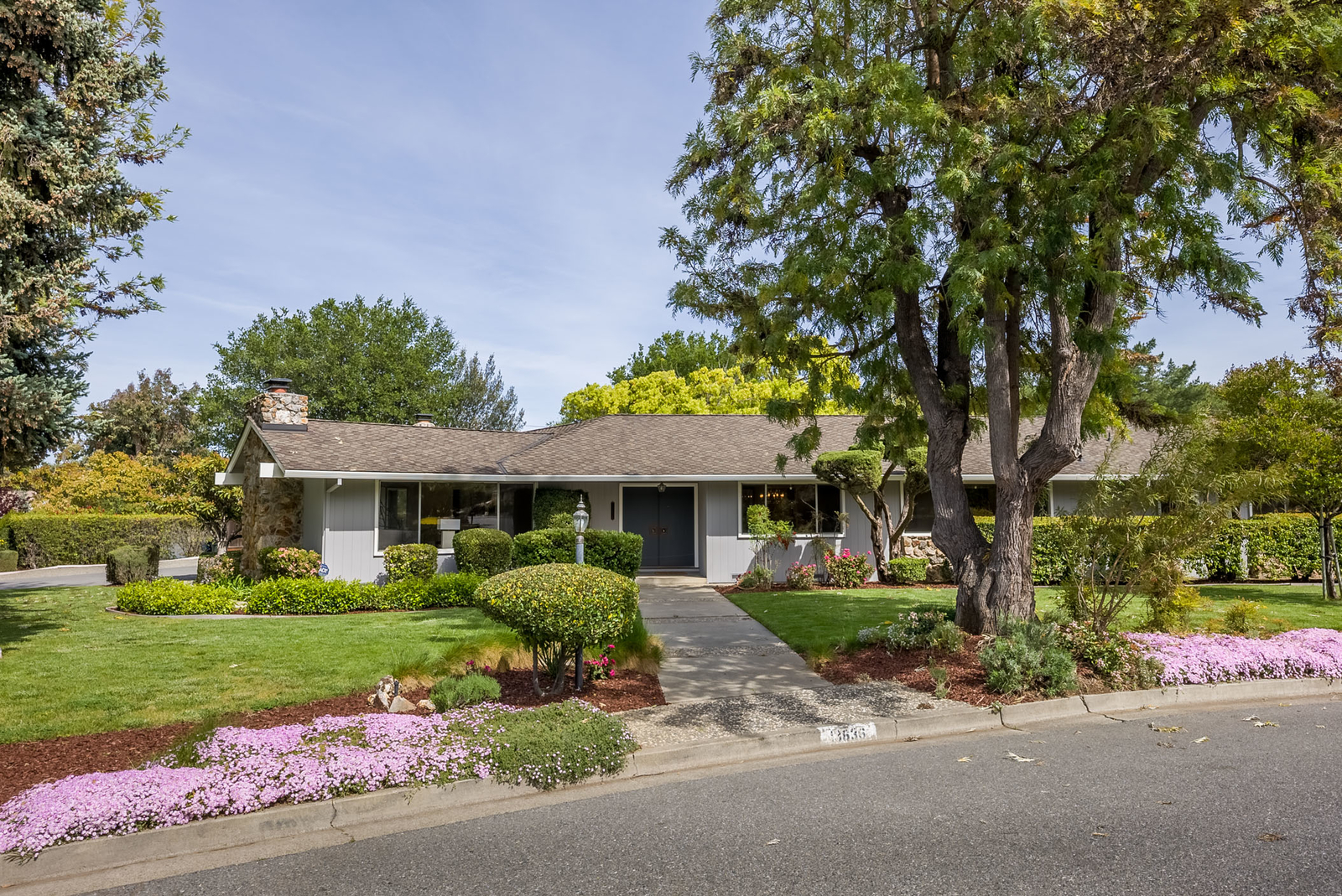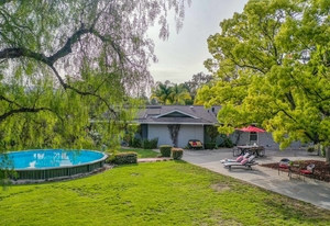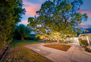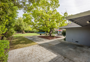 Unique to this custom home is the very large parcel of 24,695 +/- offering so much potential! A host of mature trees frame the large grass area and spacious patio. On the side yard is a garden area which enjoys a variety of fruit trees including persimmon and apple trees. At the side of the oversized three car garage is another spacious paved storage area.