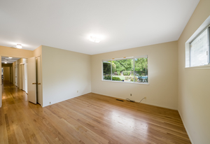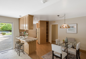 The beautiful views of the rear yard are showcased through the large picture windows in the kitchen and family room. A separate en-suite bedroom off the family room can be used as a guest room or an office.