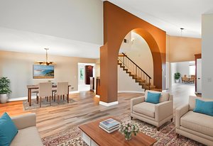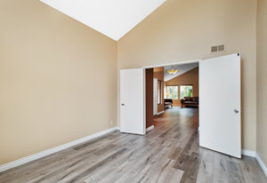 Welcome to 13 Seville, an upgraded 4 bedroom, 2.5 bath home with a spacious den (optional 5th bedroom) in Irvine’s desirable Northwood Crestwood Estates. Featuring new interior paint, new flooring, modern fixtures, remodeled bathrooms, and a sleek kitchen, this home offers bright, open living with vaulted ceilings and a dramatic entry. A main-level bedroom doubles as a home office or guest room, while upstairs you'll find three additional bedrooms and a flexible bonus room with a bar. The primary suite impresses with vaulted ceilings, dual closets, and a double vanity. Enjoy a private backyard ideal for entertaining, along with a rare 3-car garage. Located near Hicks Canyon Trail, parks, shopping, and highly acclaimed schools including Northwood High School, Sierra Vista Middle School, and Santiago Hills Elementary.