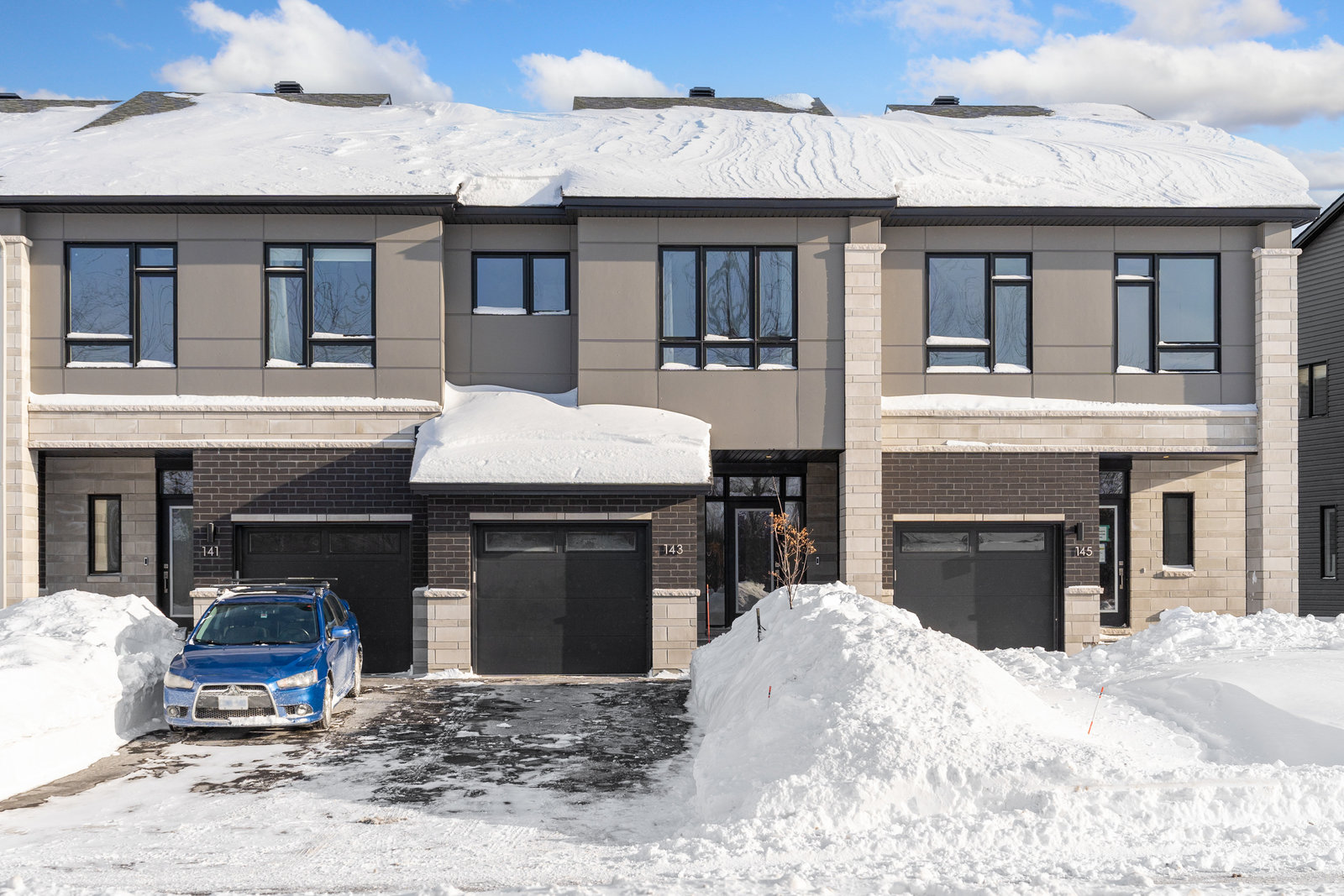 Welcome to 143 Bristol Crescent in the growing community of Kemptville, Ontario. This striking 2024 built three-bedroom Urbandale townhome is stunning and turnkey. Upon arriving, you will be impressed by the spacious tiled entry and bright open concept living space. The modern kitchen features an upgraded chimney hood fan, quartz countertops, a breakfast bar with seating for four, and best of all - a walk-in pantry! The living room highlights are gorgeous, engineered hardwood floors and a cozy gas fireplace for the colder months. Up the stairs, you will find a generously sized primary suite, including a four-piece ensuite bathroom with a soaker tub and glass shower, and a walk-in closet for ample storage. Two more good-sized bedrooms, a full bathroom, and a laundry room complete the upstairs. The finished basement provides additional living space with plenty of room for additional storage. This home also comes with a central vac system and a Wi-Fi garage door opener. From here, you can enjoy the charm of small-town living without sacrificing any conveniences or amenities like big box stores, cafes, and restaurants. Plus, this area has some of the best golf in the region. All this, and only 35 minutes from Downtown Ottawa. Book your showing today!