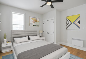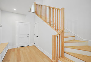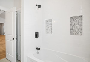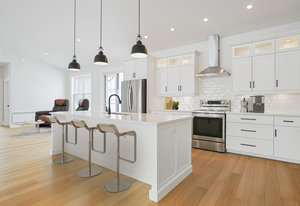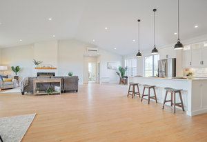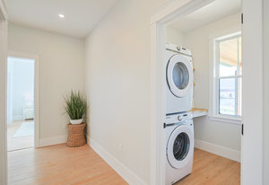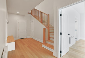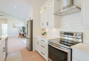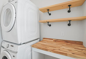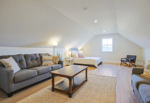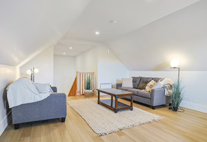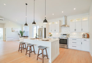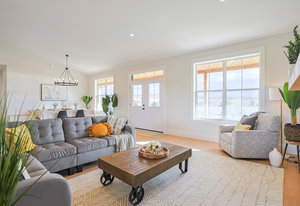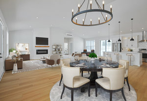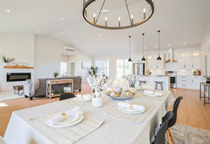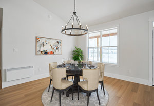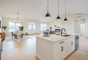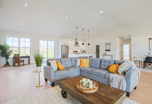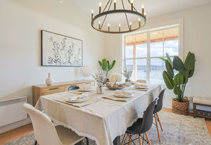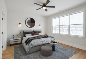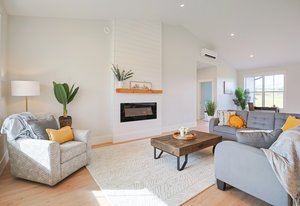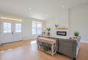 Vaulted ceilings in the living room create an airy and inviting atmosphere, accentuating the sense of space and natural light. Enjoy the modern convenience of a Bluetooth-enabled electric fireplace in the living room, setting the mood for cozy gatherings. This residence exudes quality, with custom finishes throughout, including a beautifully appointed kitchen featuring a large island and a Butler’s pantry. The recently installed white subway tile backsplash adds a touch of timeless charm. Built-in storage lockers off the garage offer practical solutions for keeping your space organized and clutter-free.