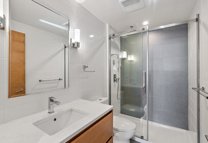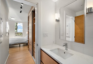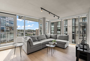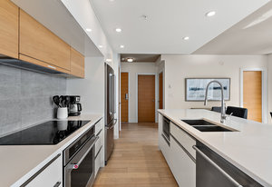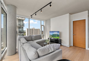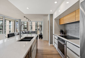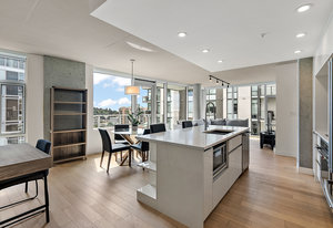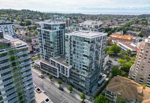 An impressive and well built steel and concrete high-rise in the heart of downtown Victoria. Pet friendly without any weight limits! A well-laid out floorplan one down from the top floor includes, in-suite laundry, two bedrooms and two bathrooms, open-concept kitchen, living, dining room and sweeping views with ocean glimpses from various locations. No details have been spared in the design of this modern residence. Floor-to-ceilings windows and a southeast-facing layout allow the sun to drench the space in natural light. A chef’s inspired kitchen features quartz countertops complete with large island, KitchenAid appliances, soft-close drawers, and no shortage of cupboard space. Custom ...