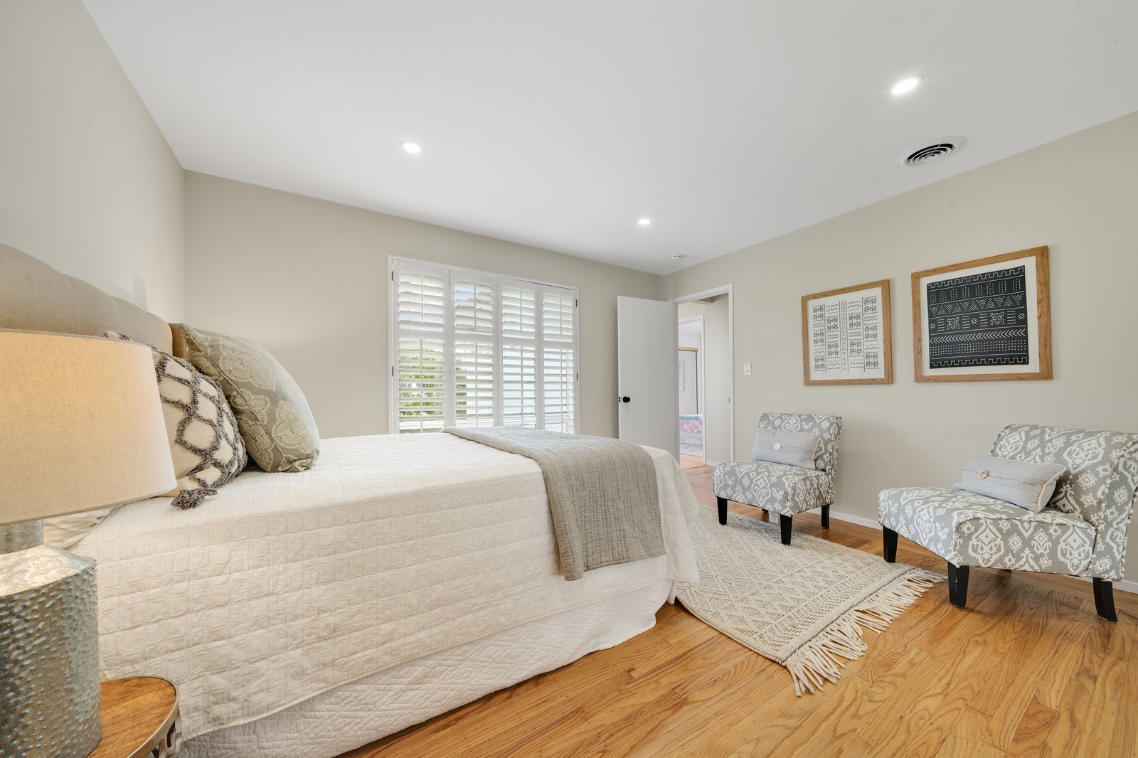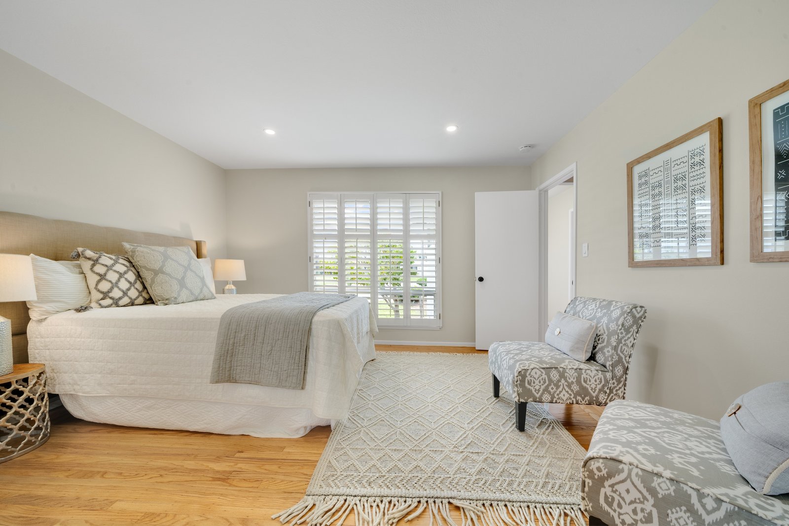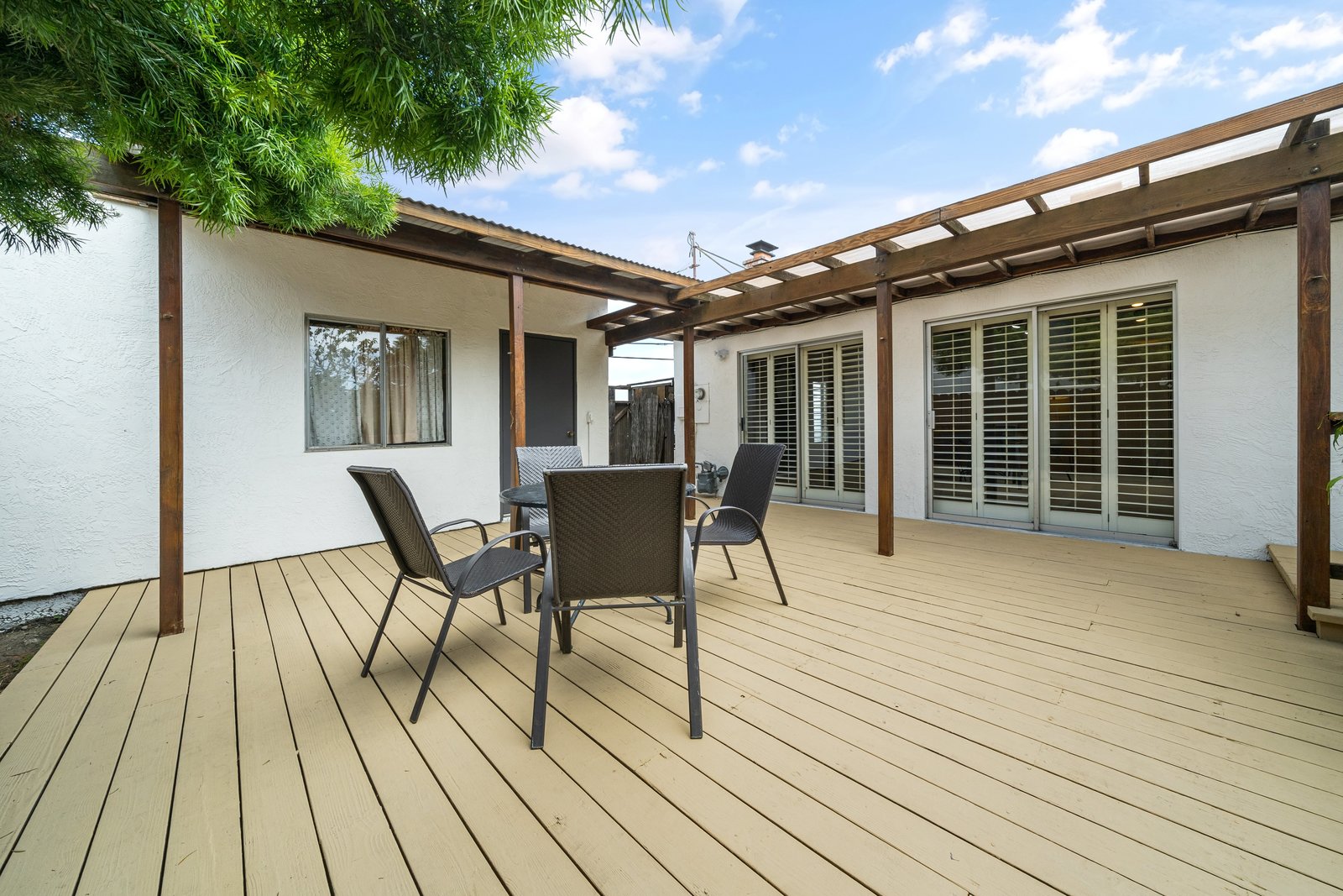 Spacious single story 4 bedroom / 2 bath home located on a large corner lot in the San Lorenzo Village Community. Updated kitchen with new marble pattern quartz counters, Bosch and GE stainless steel appliances, high flow vent hood with touchless technology features. Expansive family room with open beam ceiling, fireplace, and plentiful storage. Fresh paint and newly refinished hardwood floors throughout. Back yard with both a deck and patio area offers plenty of space to relax, entertain, and garden. Mature landscaping includes producing peach tree, various fruit tress and picturesque Japanese Maples.