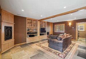 One of the standout features is the versatile bonus room—complete with heated tile floors, a gas fireplace, built-in maple shelving, a Marvel beverage fridge, and separate outdoor access. The adjacent laundry room includes heated floors, a sink, and a dishwasher, making this space ideal for guests, hobbies, or entertaining.