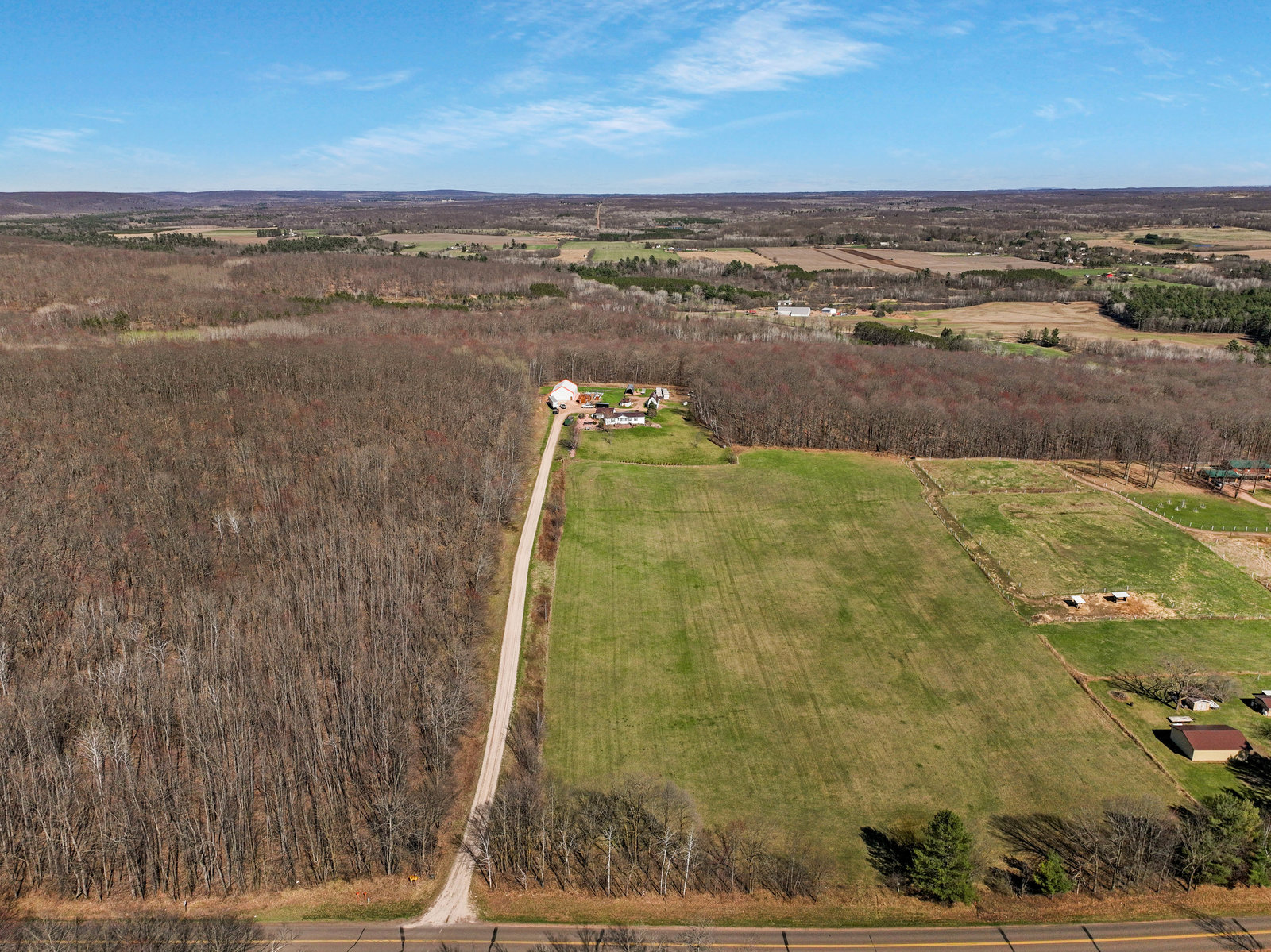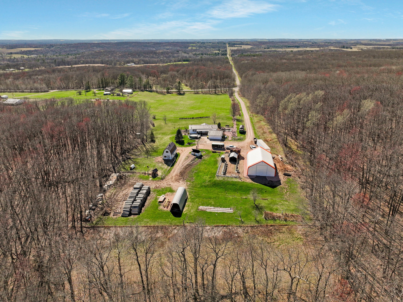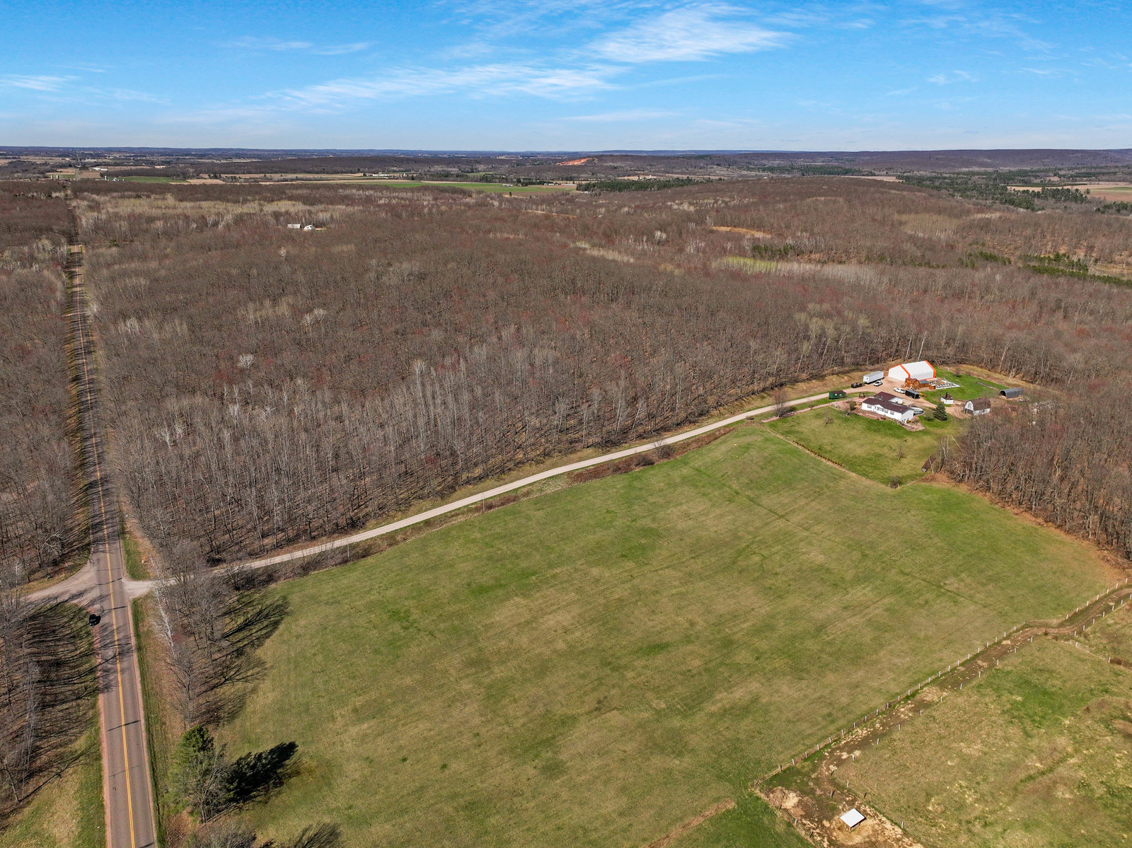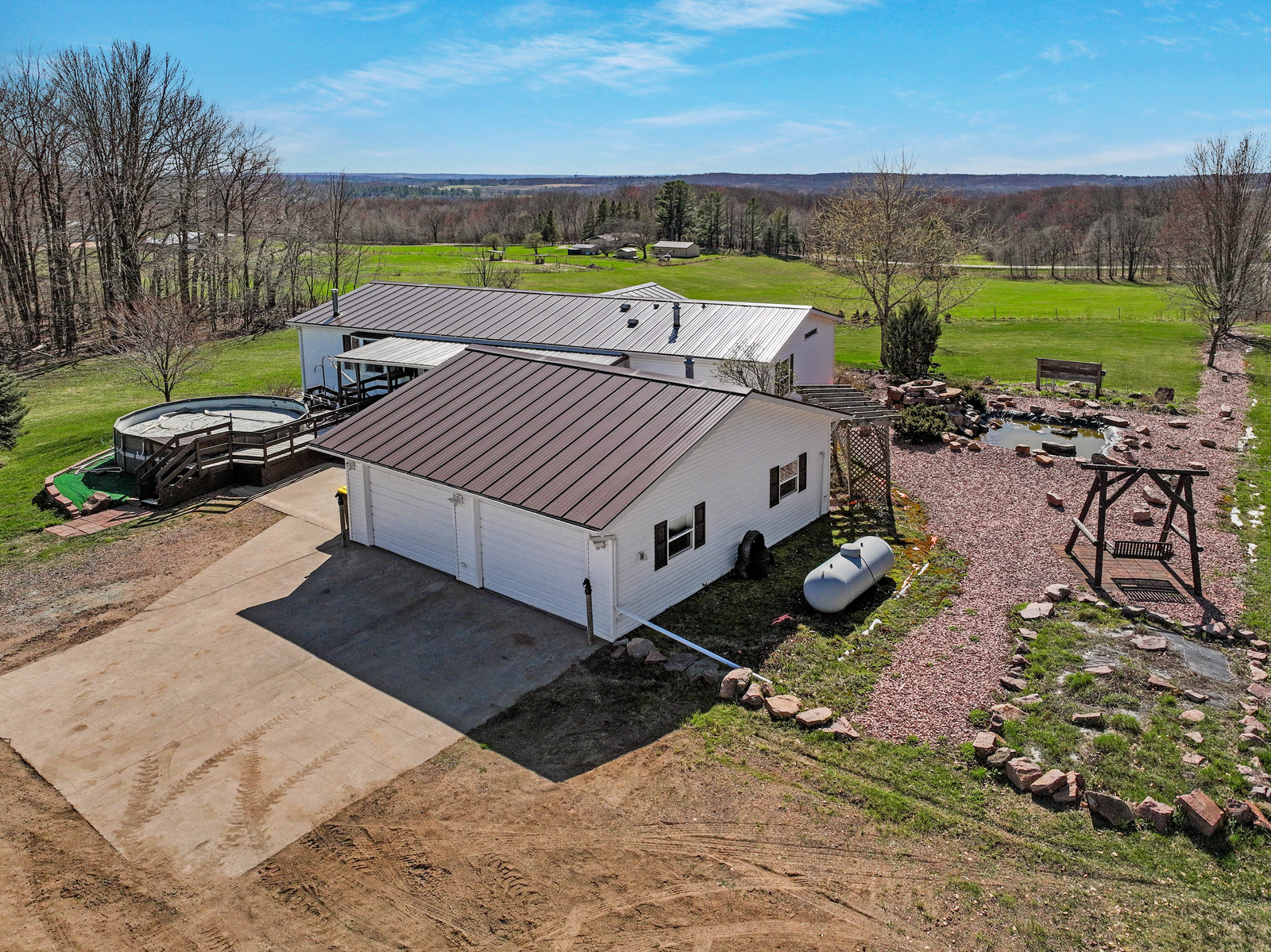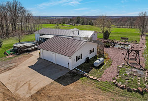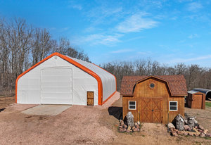Here's your chance to own this Charming Country Retreat with Impressive Outbuildings in Cameron, WI! This beautifully maintained 4-bed, 3-bath home, built in 2003, offers space, comfort, and exceptional functionality on a stunning country setting. Featuring a fully finished walk-out basement and a standing seam metal roof on both the home and detached garage (2024), this property is move-in ready and built to last. The heated and insulated 2-car detached garage provides convenience year-round, while the impressive 16x32 insulated barn (built in 2014) is equipped with in-floor heat and a loft, perfect for hobbies, a workshop, or additional storage. Additional structures include a 12x16 storage shed, and a massive 40x60 fabric shed (built in 2024) with a concrete floor and electric. Efficiently heated with a 2016 TLB outdoor wood stove (serving both the house and barn), the home also features a forced air and central air. Situated on 4.5 acres and located within 4 min of nearby towns.