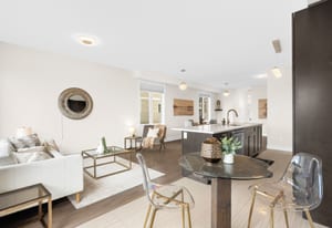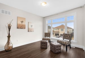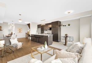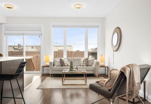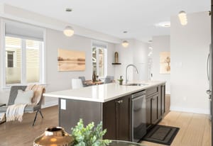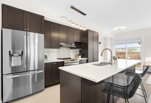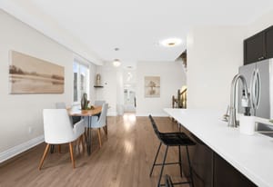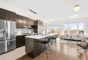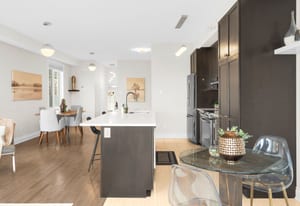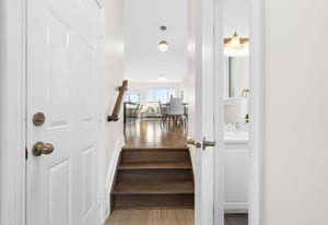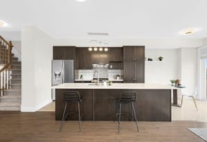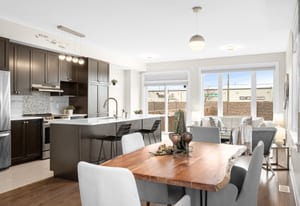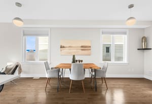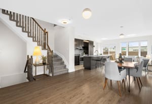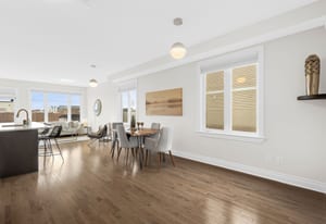 Step inside to a bright and stylish main floor featuring hardwood throughout, tile in key areas, custom light fixtures, custom blinds, and central A/C. The modern kitchen impresses with quartz countertops, upgraded cabinetry, and stainless steel appliances, flowing naturally into a comfortable and functional living space.