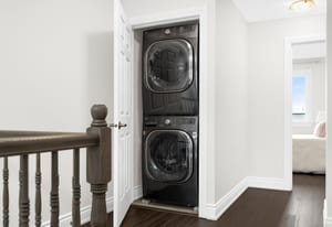 Upstairs you will find three generously sized bedrooms plus a spacious family room loft that can easily be converted to a fourth bedroom as per the builder's original plans. The second floor also features updated vinyl flooring, convenient second floor laundry, and a full bathroom with quartz finishes that carry the same quality and style found throughout the home.